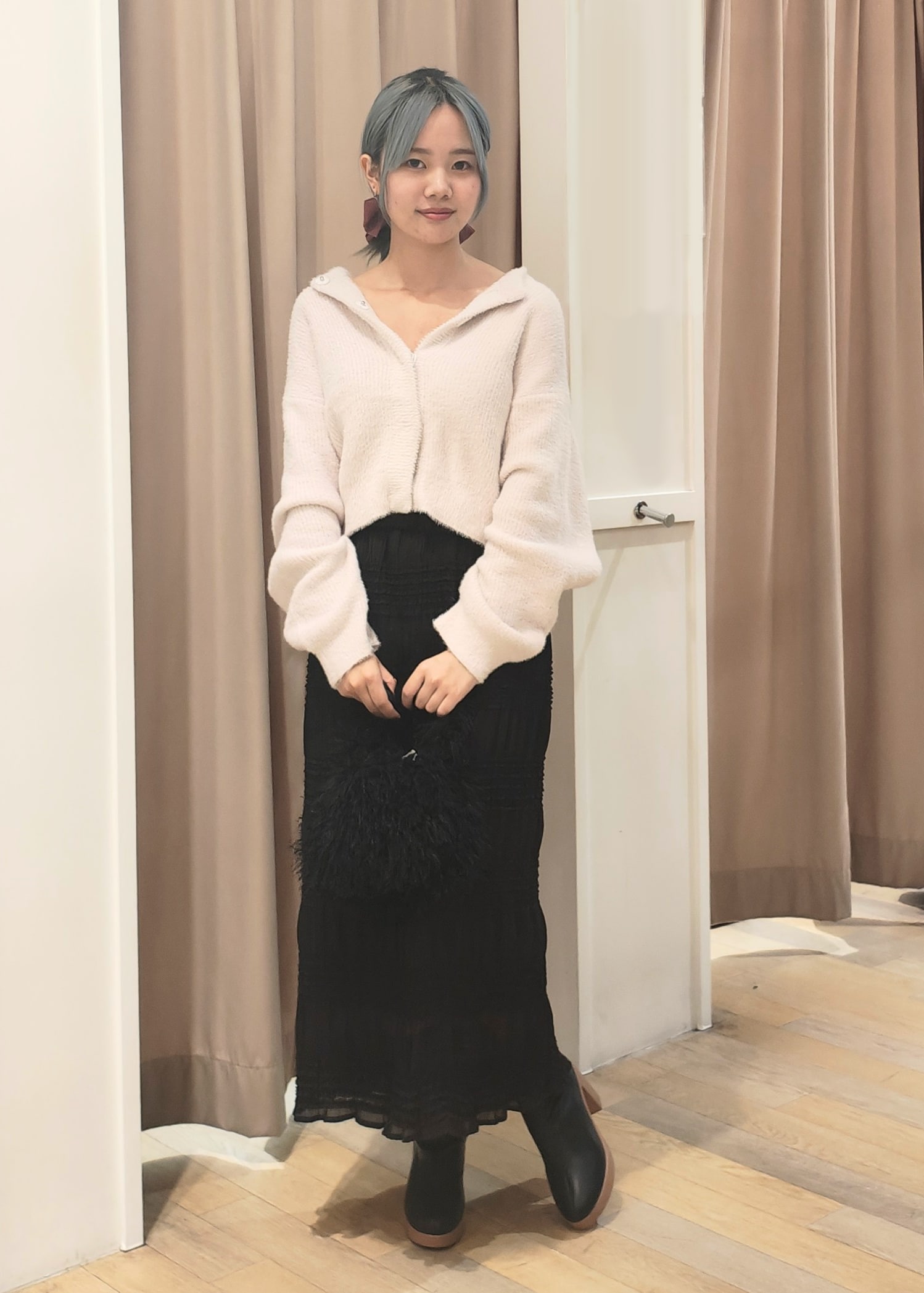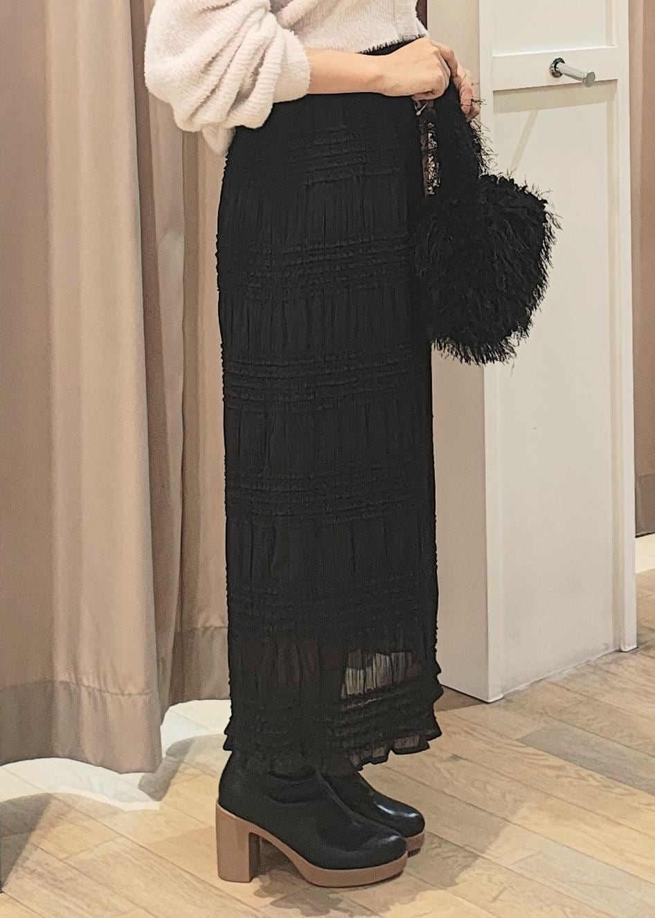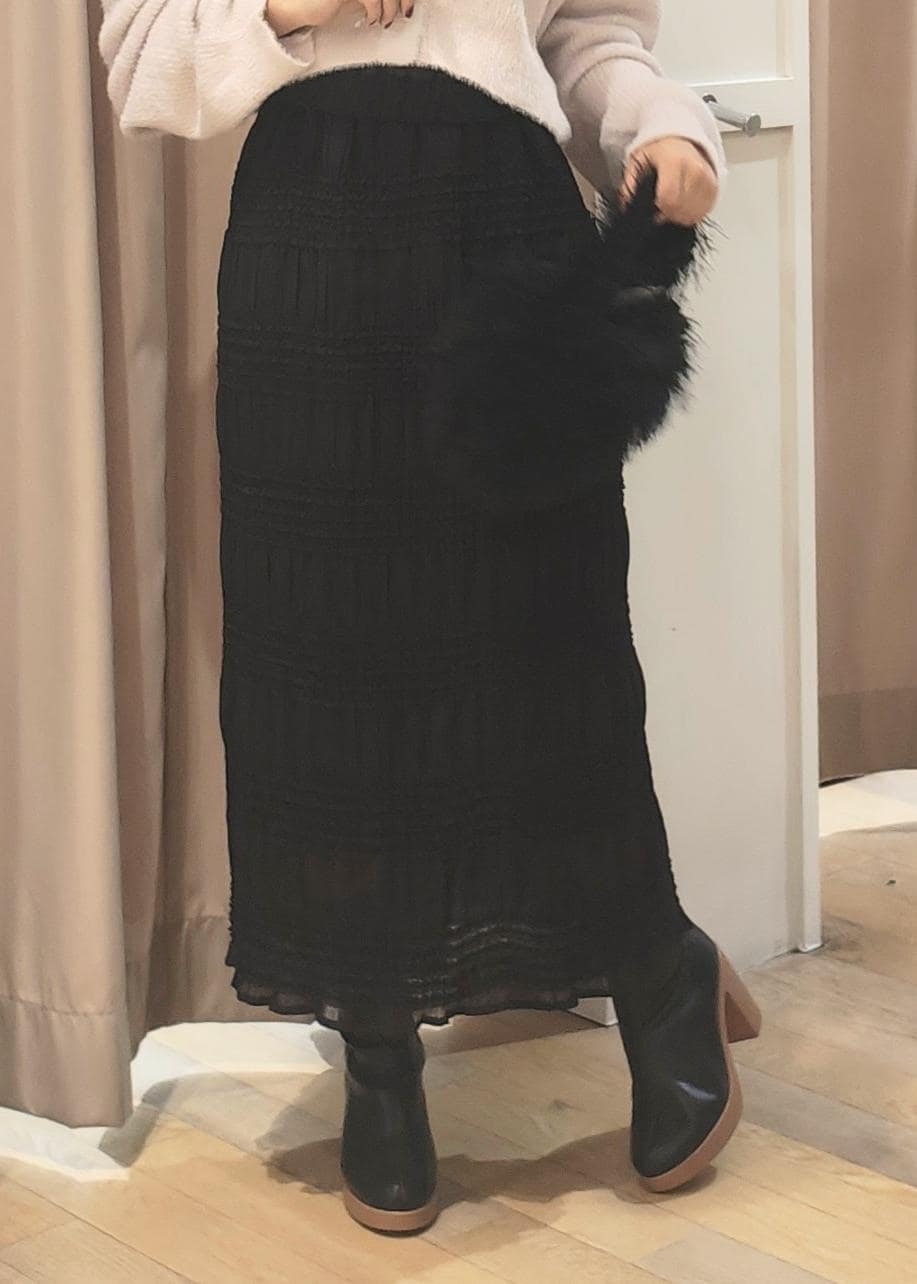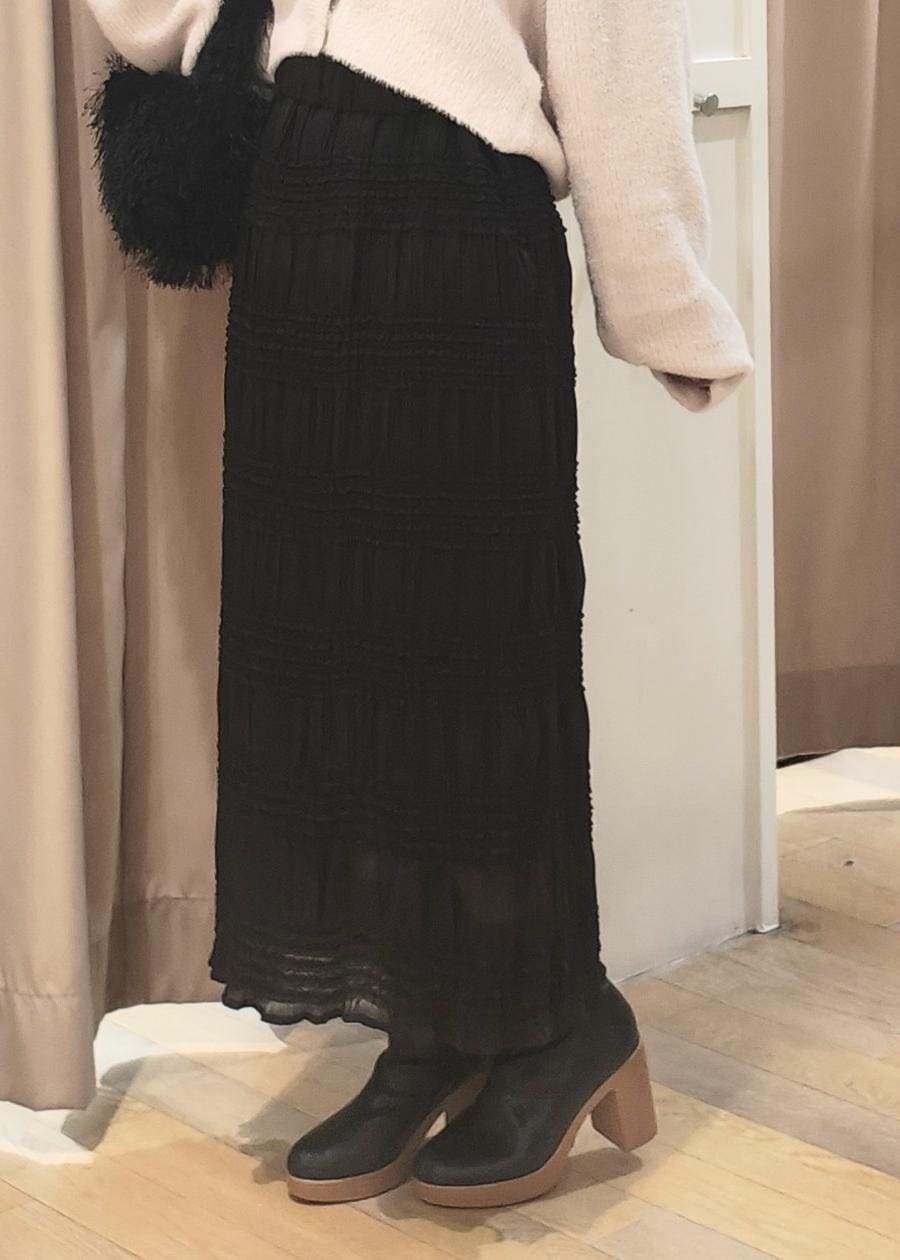 シアースカートからチラ見えするブーツが大人っぽく見せてくれます◎