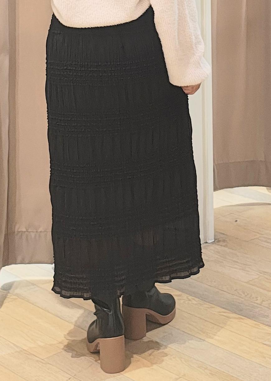 ROPÉ PICNICフリルギャザーロングスカートチャコール / 38¥6,490レビュー裾が透けて見えるので重たい印象になりにくいです!ウエストがゴムなので、低身長の私は1回折で履いたりしてます♪