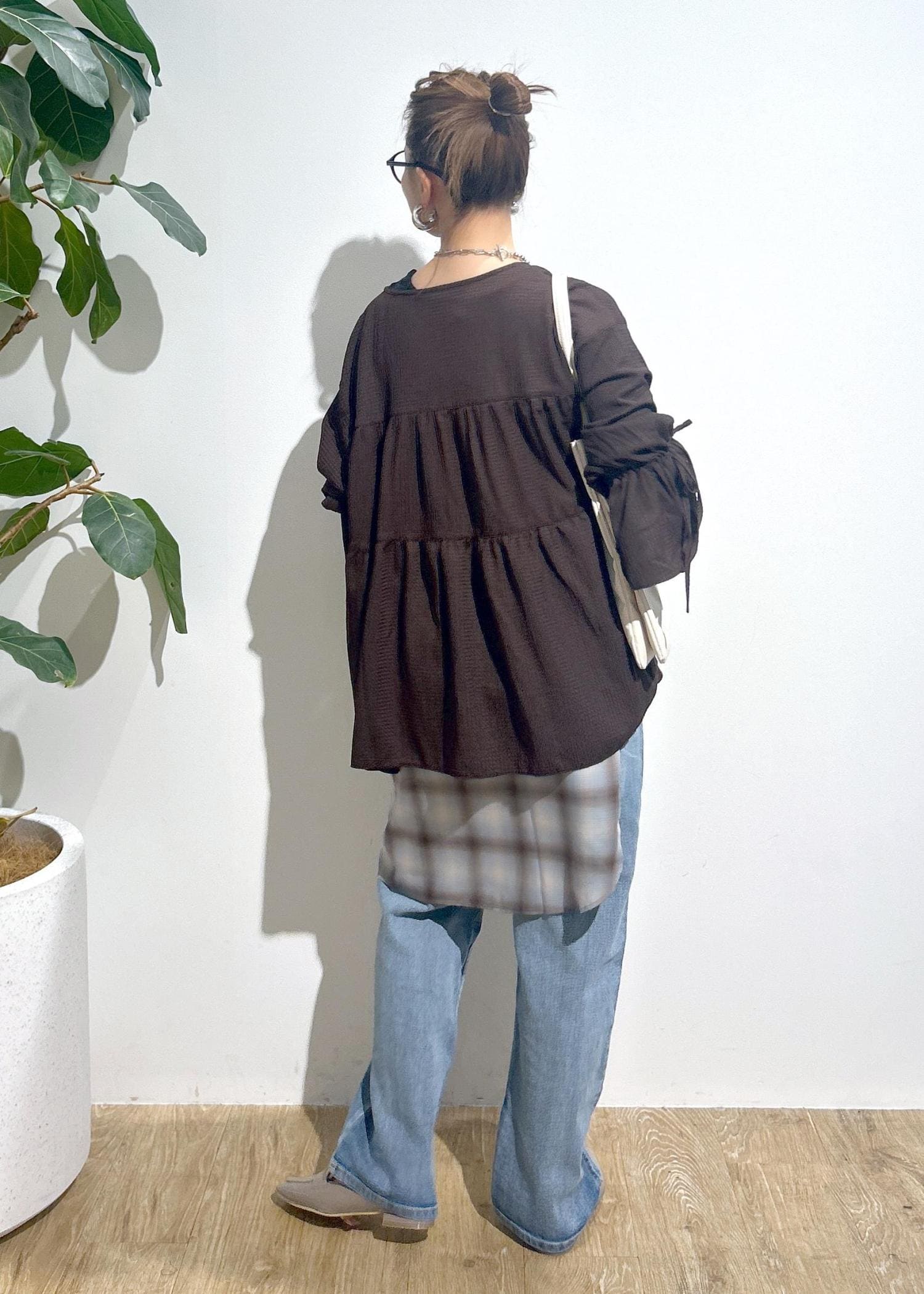 今季トレンドはブラウン!!ティアードブラウス×デニム