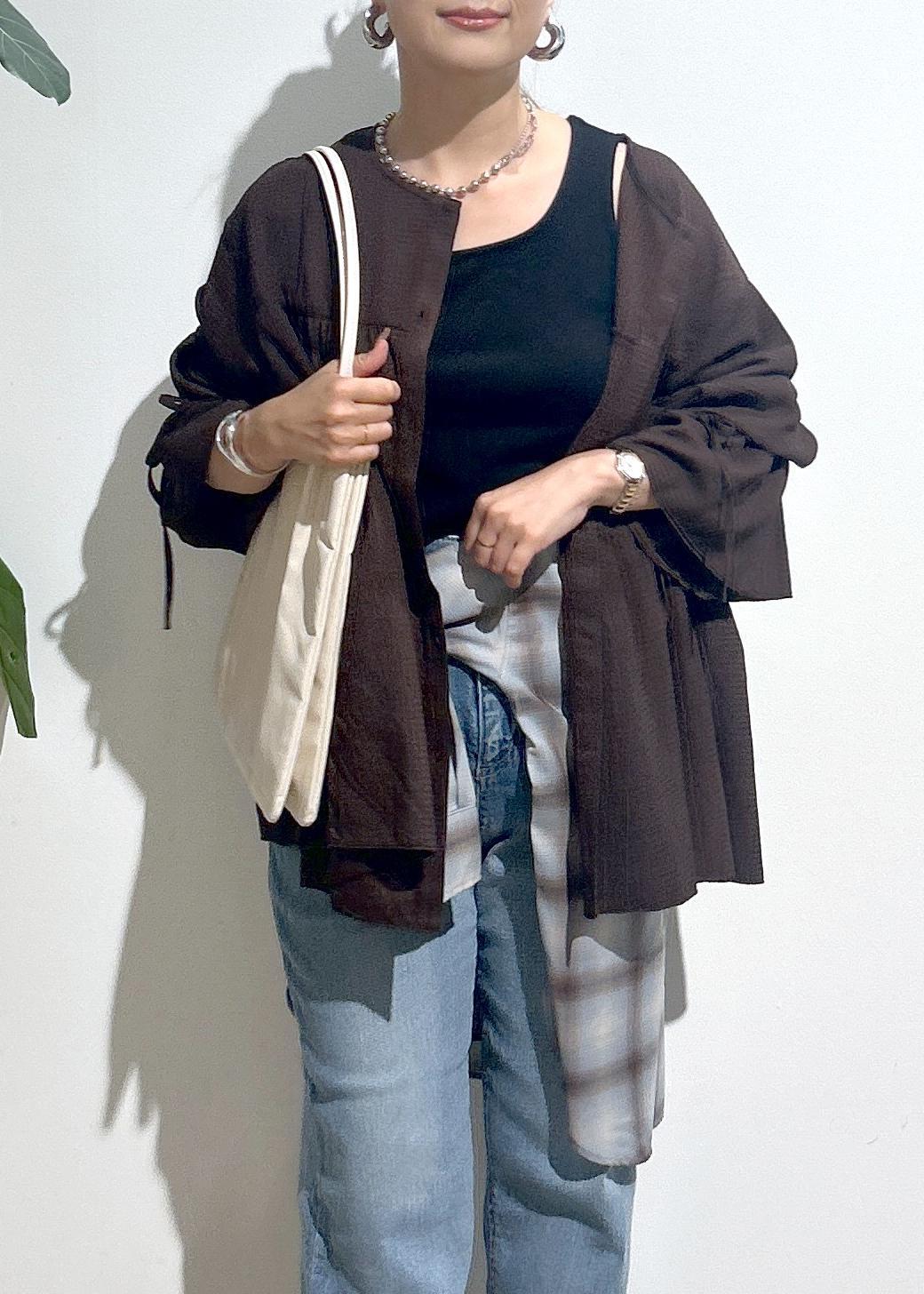 ROPÉ PICNIC【羽織にもなる】シアーワッシャーブラウスカーディガンダークブラウン / F¥3,993レビューデザイン性のあるティアードブラウス。袖のボリュームがたっぷりとありPOINTです!!