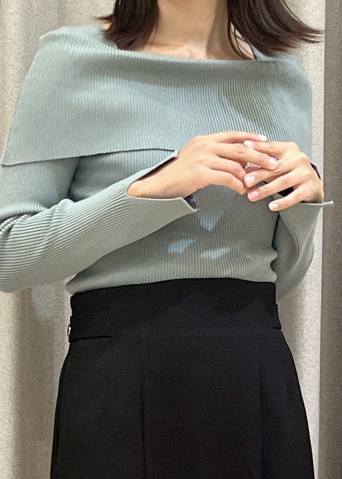 VISオフショルダーモチモチリブニットグリーン系 / F¥5,489レビューデザインがオフショル風で1枚で決まります。肩マチ付きなので大人でも着やすいです。すっきりと見えるのでオフィスシーンにも◎ヒップに少しかかる着丈です。