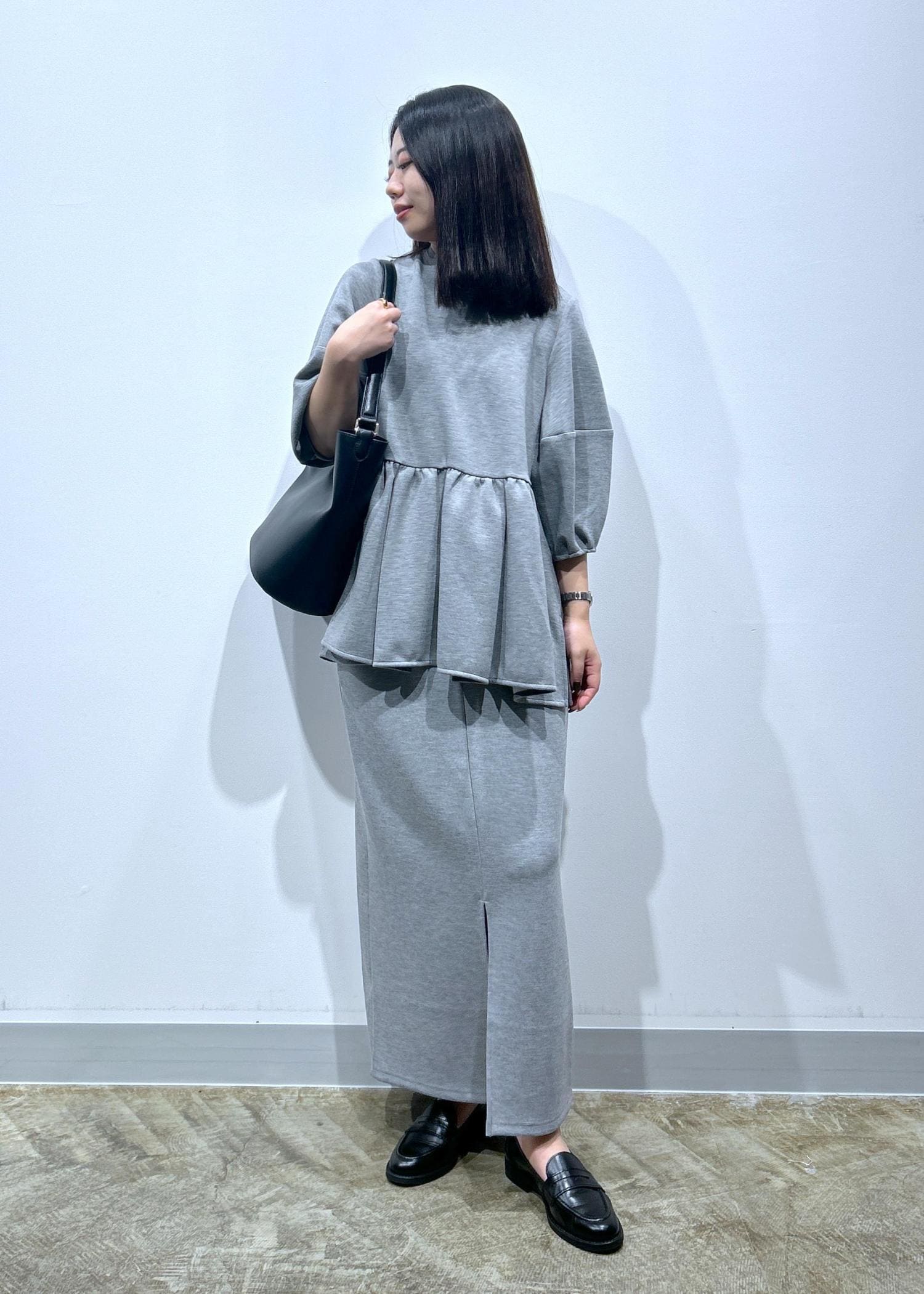 LE CERCLE par ropé【セットアップ対応】フォルムペプラムプルオーバーグレー / F¥2,596レビューヒップが隠れる丈、袖は肘と手首の真ん中くらいの長さです!