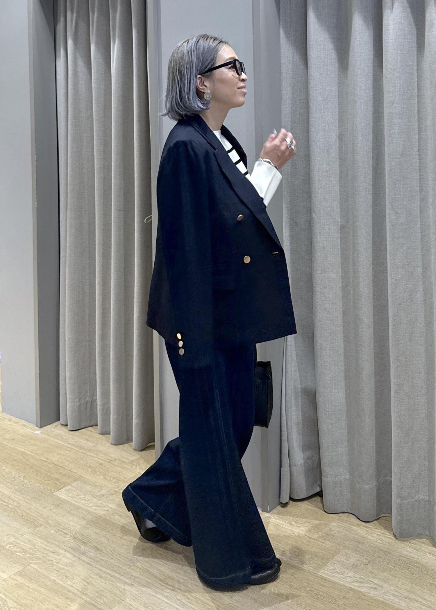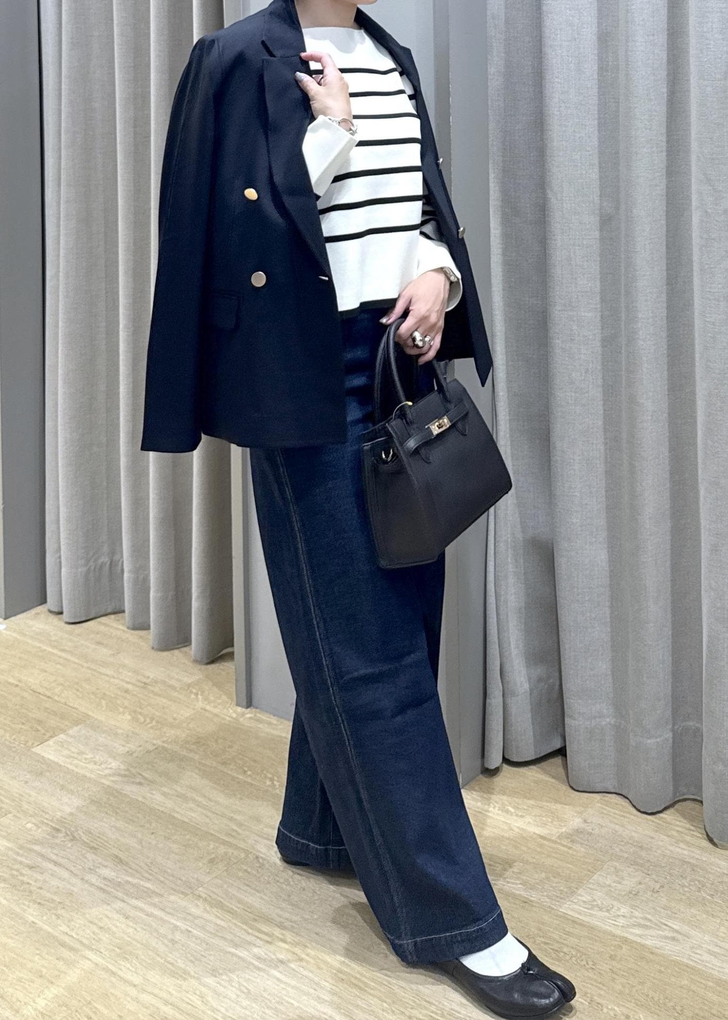 ネイビーのジャケットには、ボーダーのインナーがピッタリ!