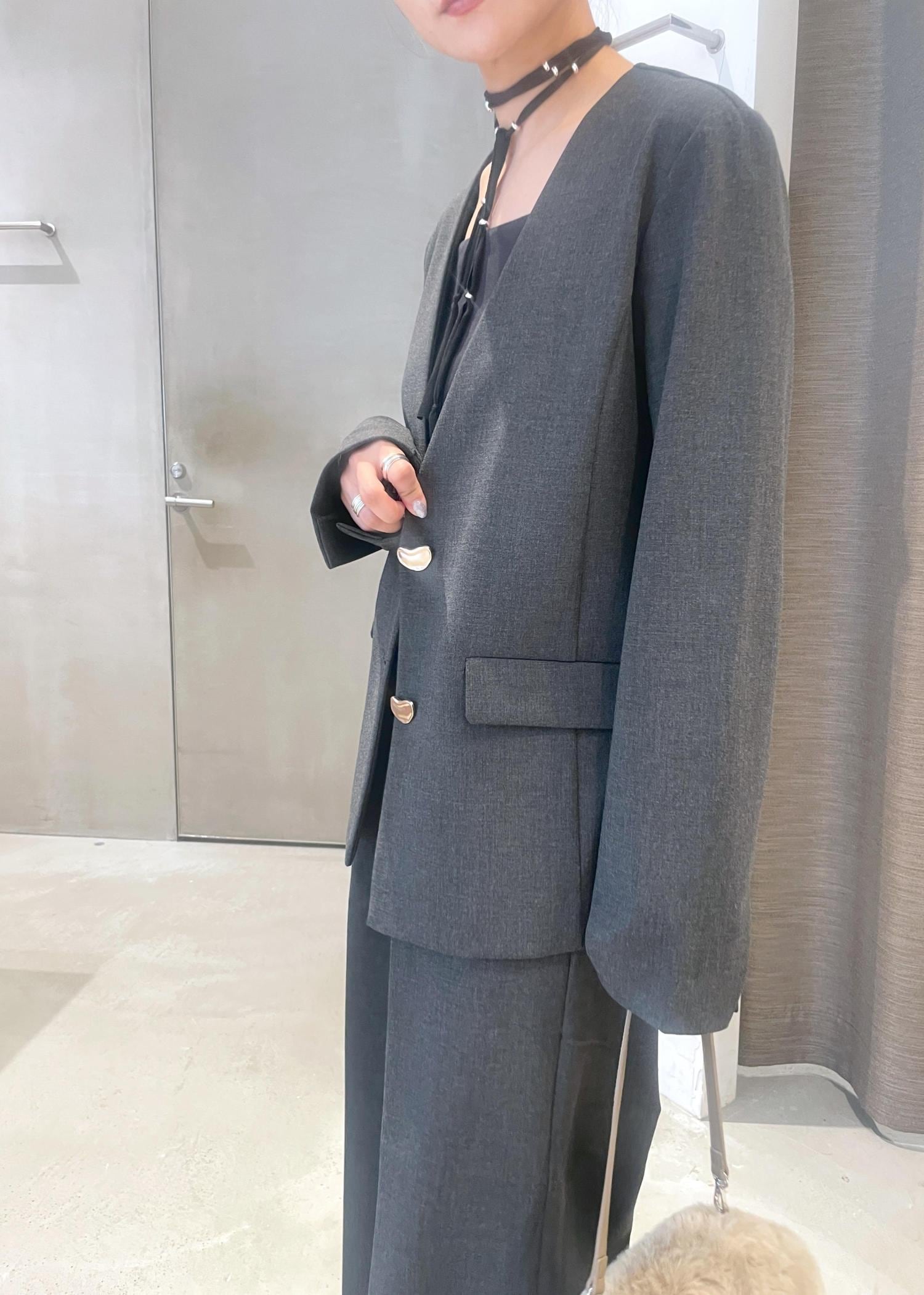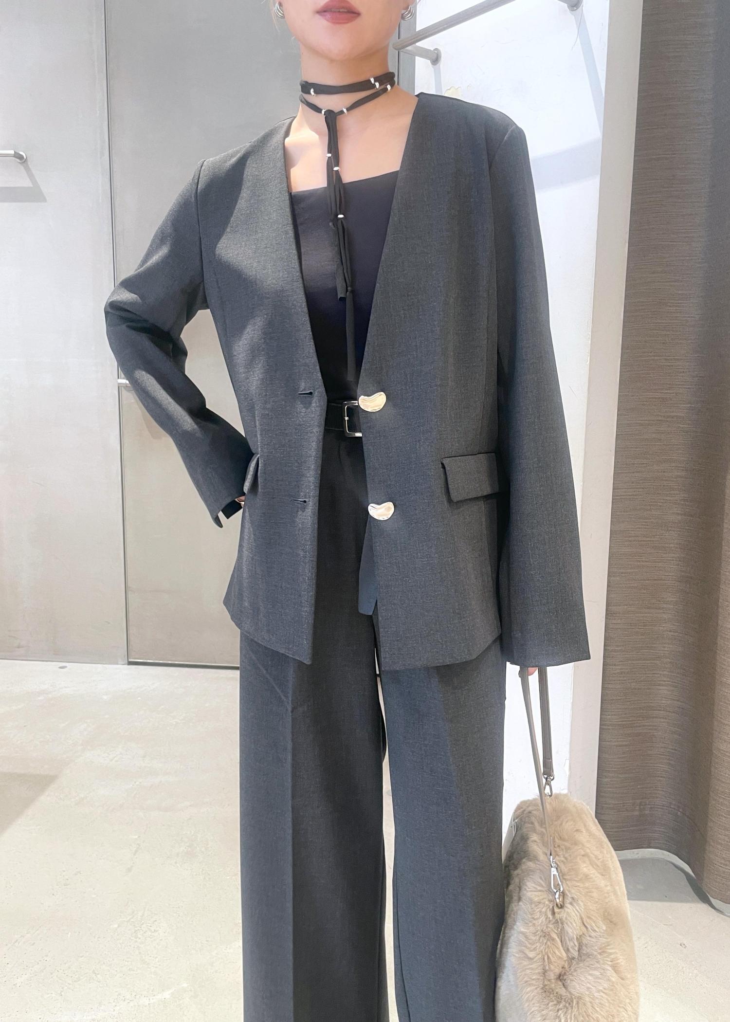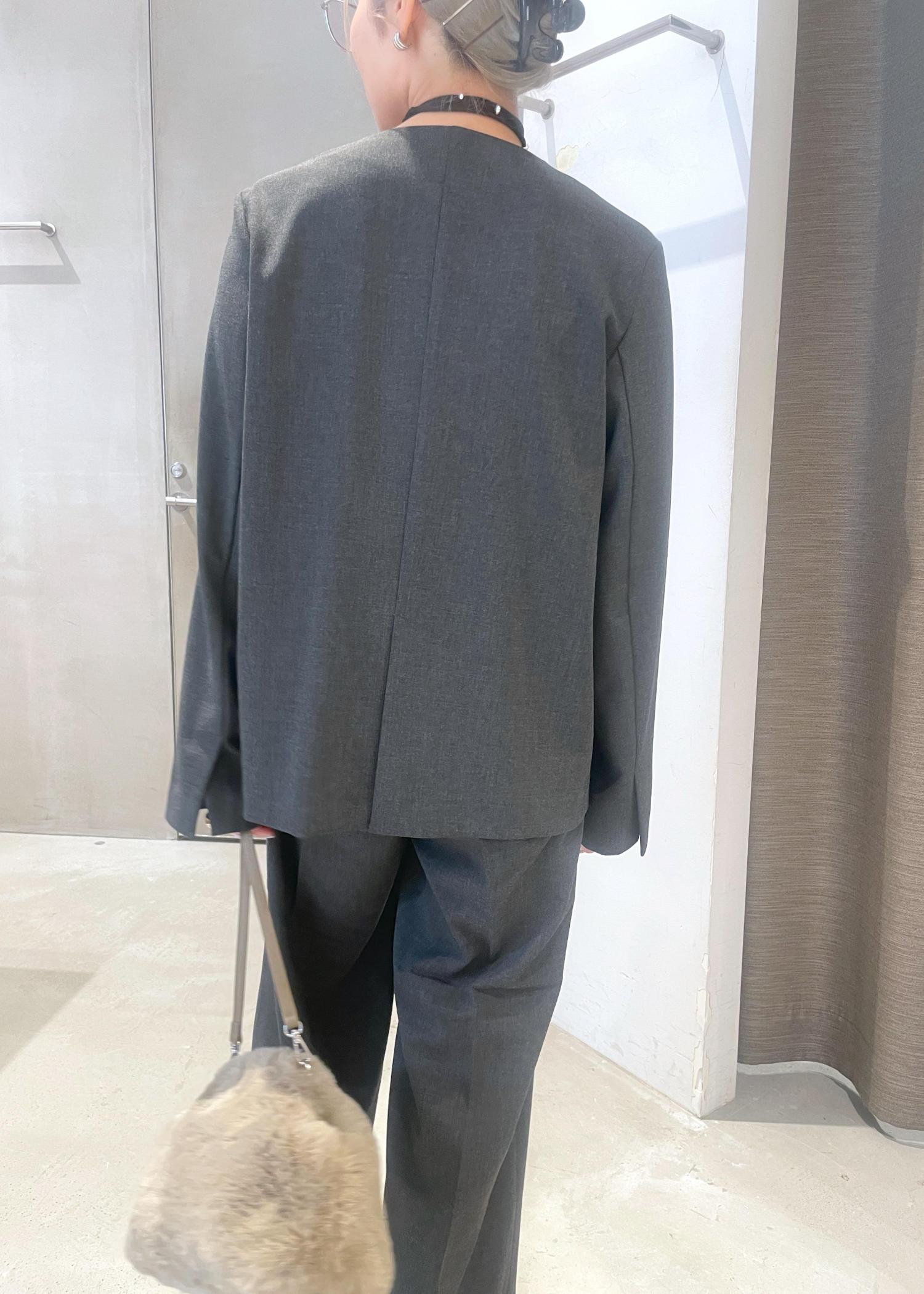 オーバル釦ノーカラージャケット/セットアップ対応