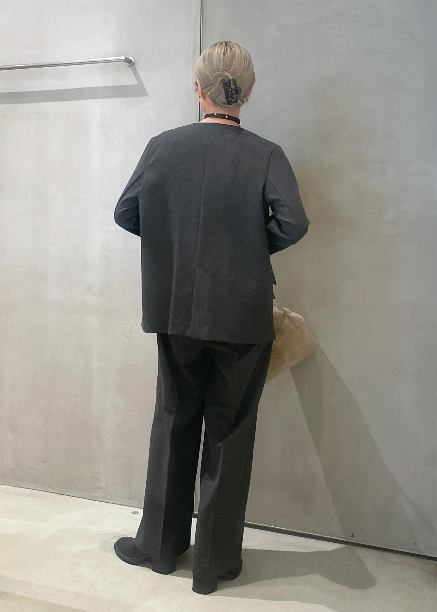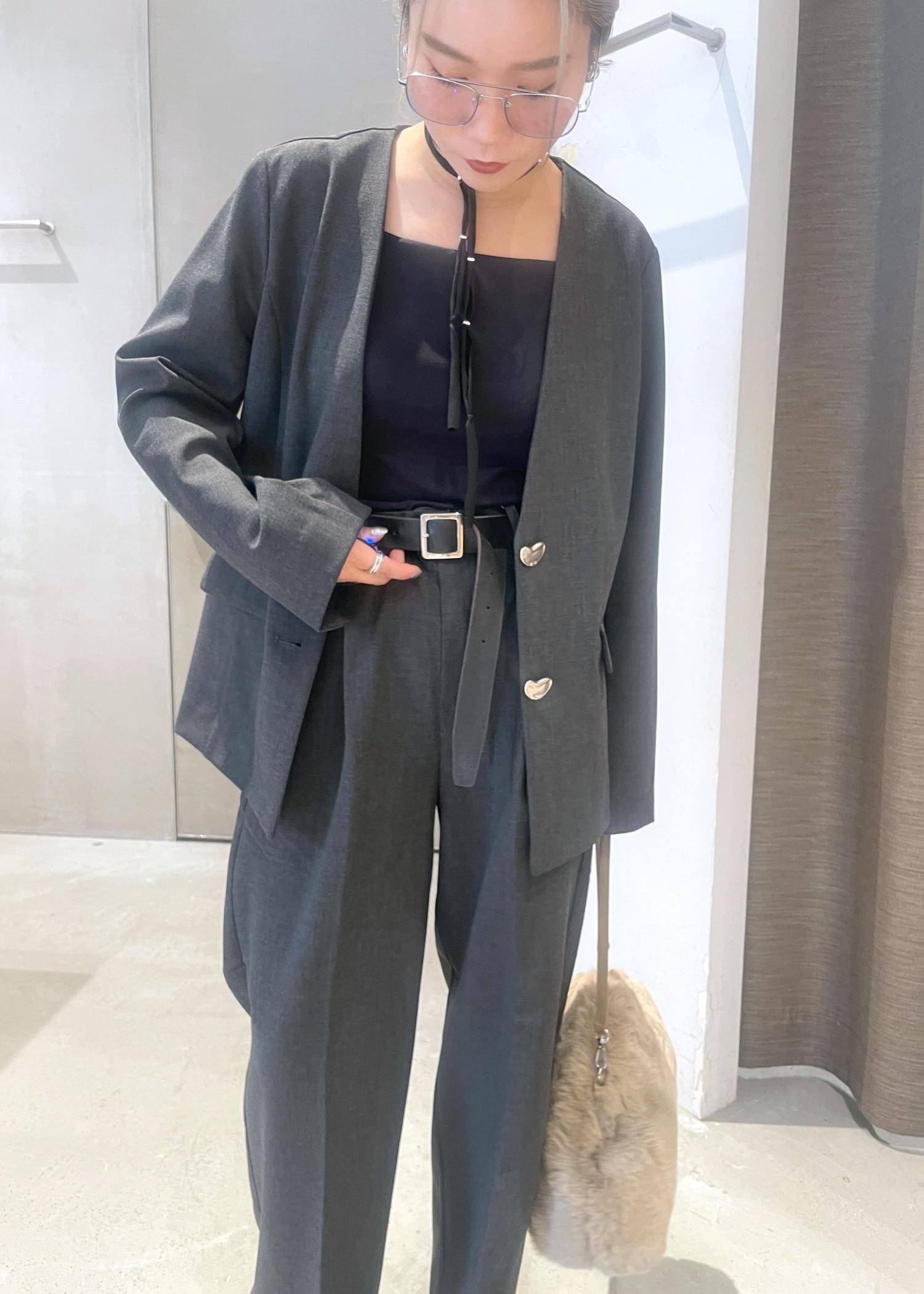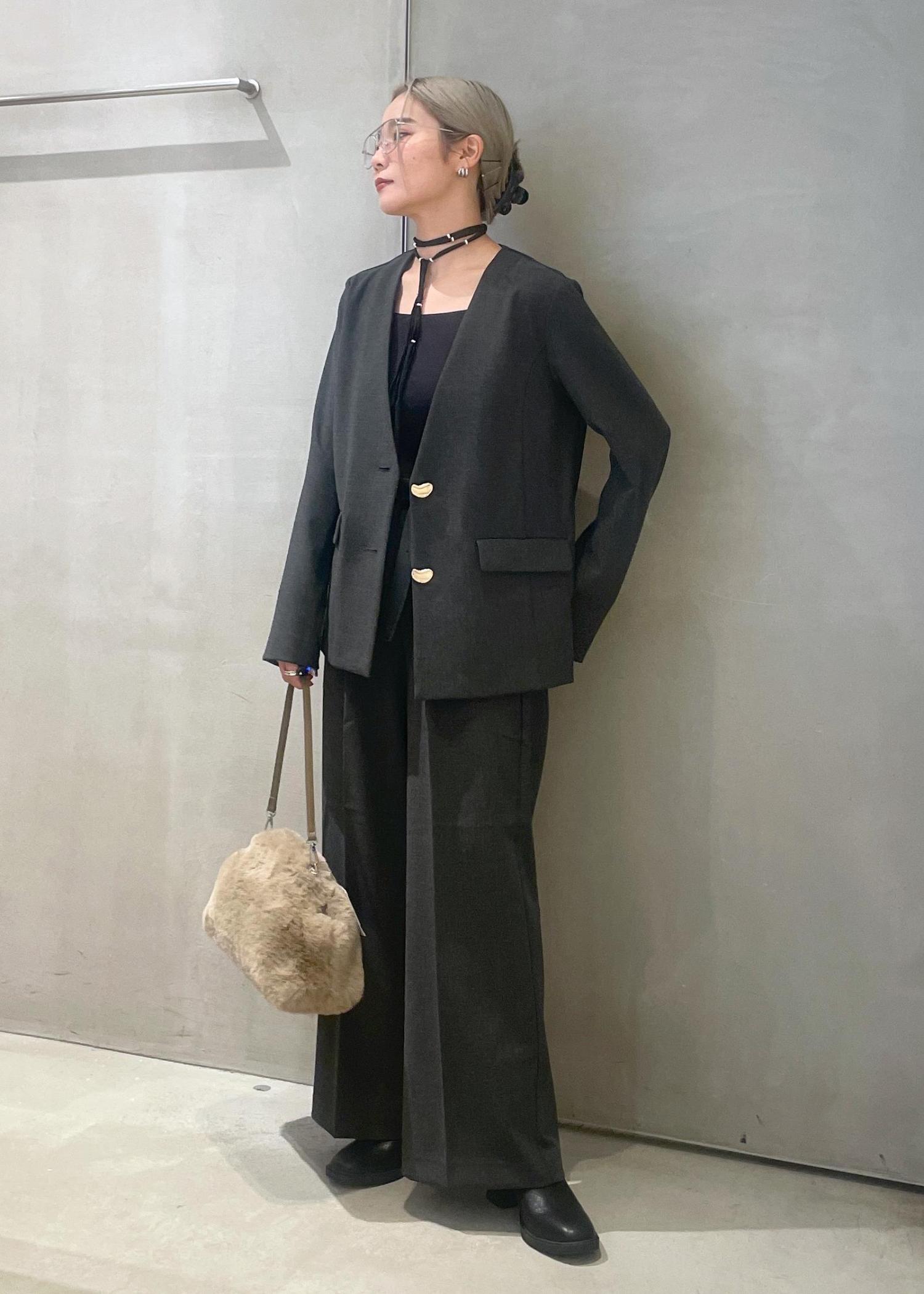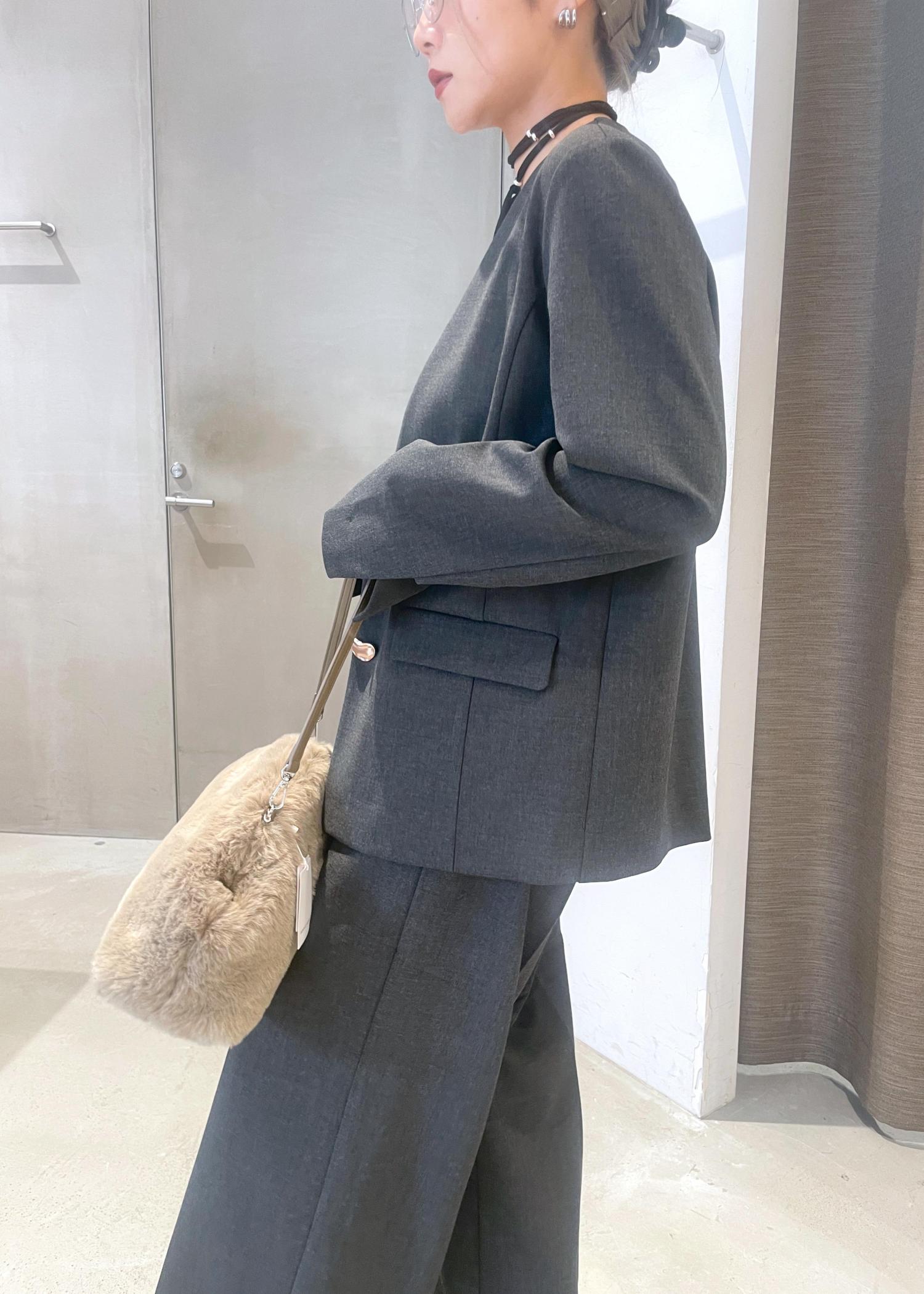 オーバル釦ノーカラージャケット/セットアップ対応