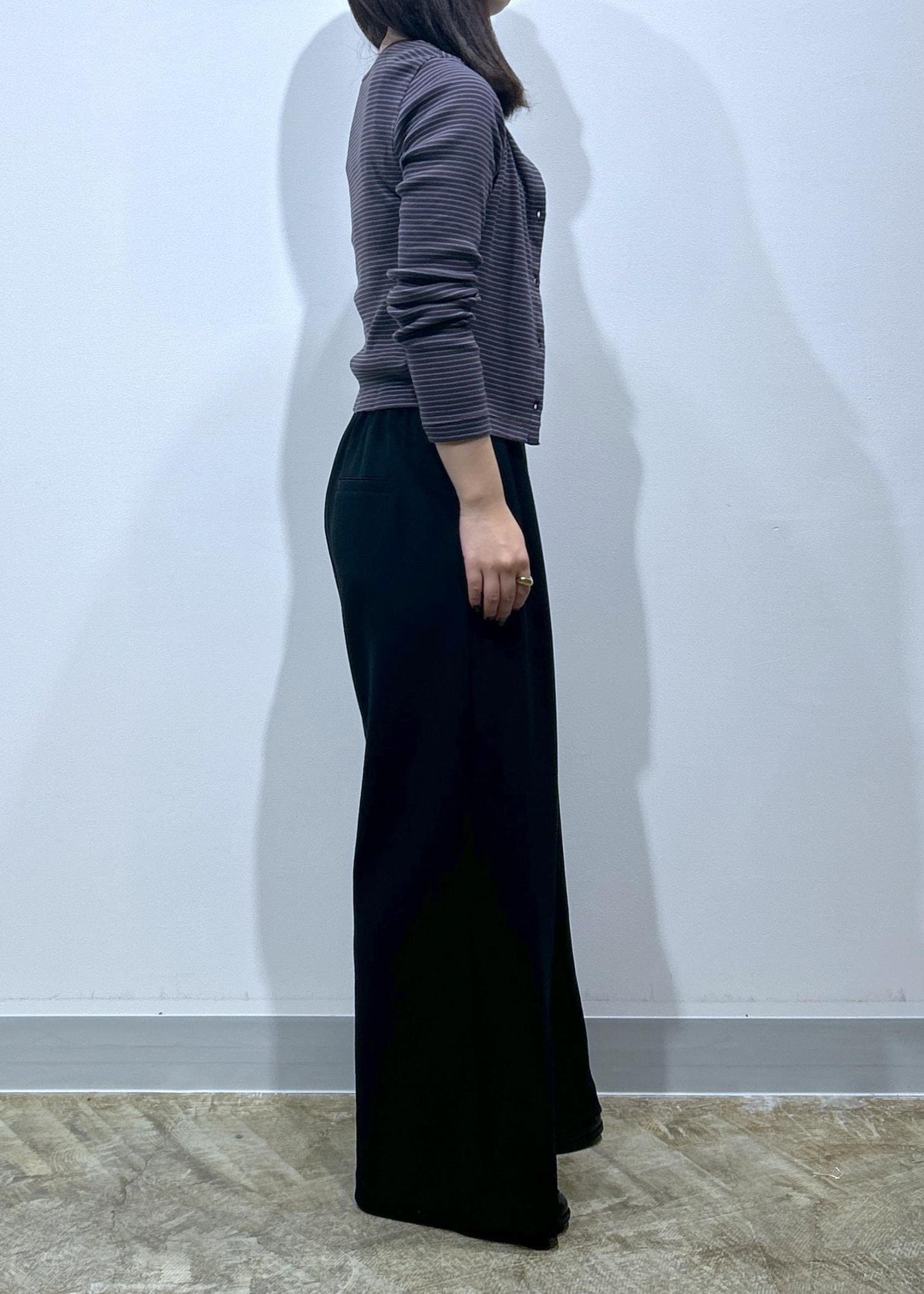 カーディガンは、腰にかかるくらいの短い丈感なので