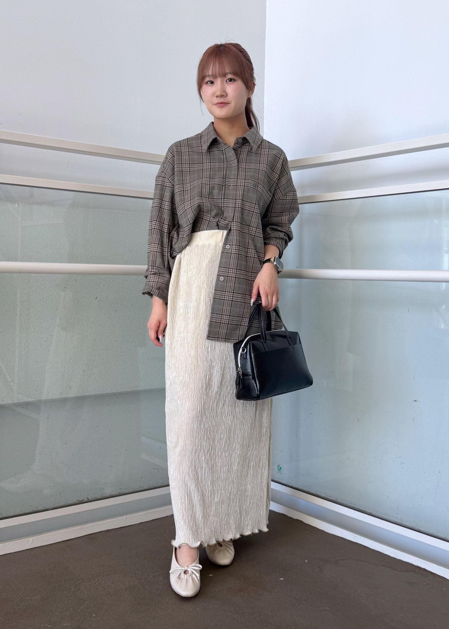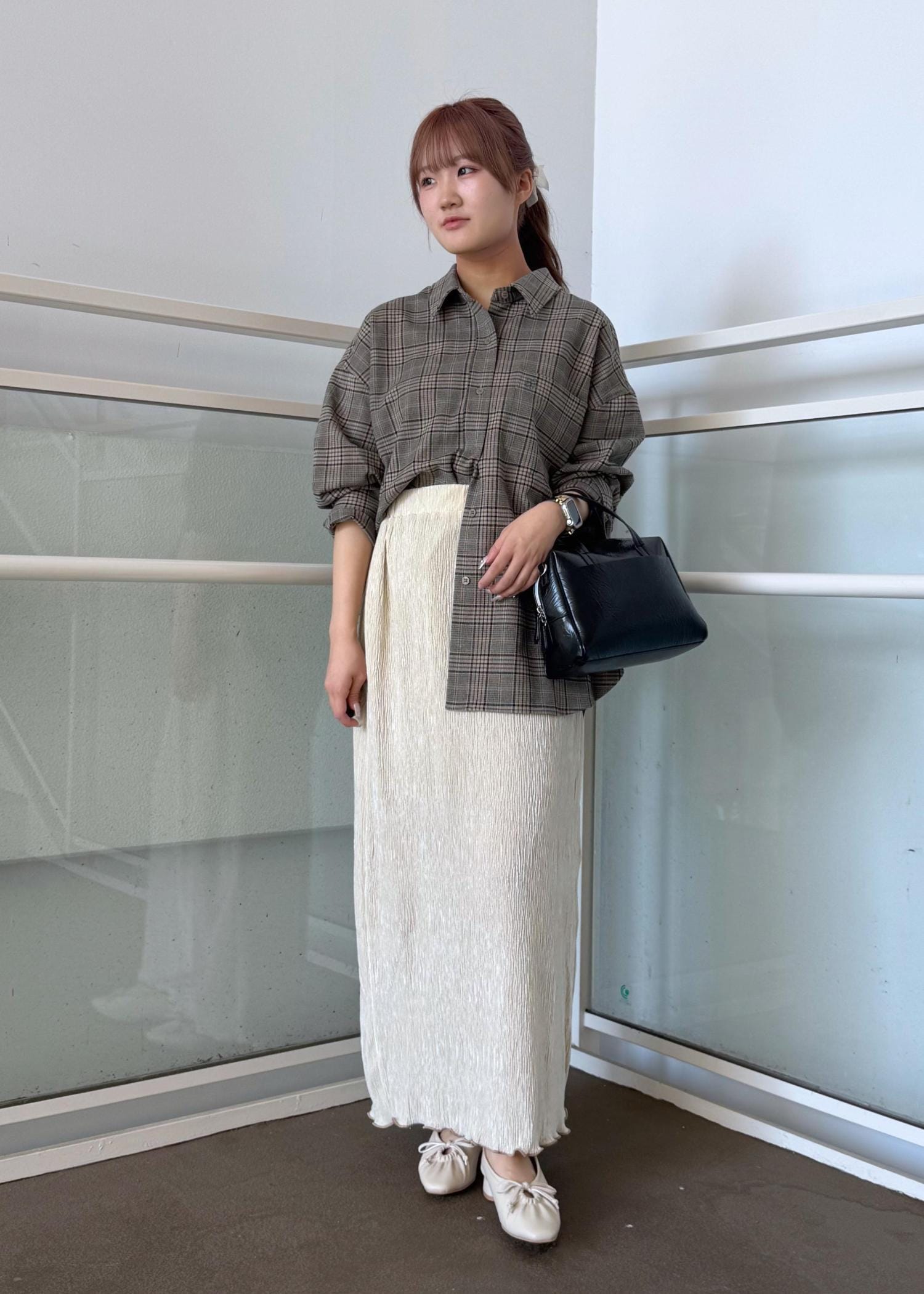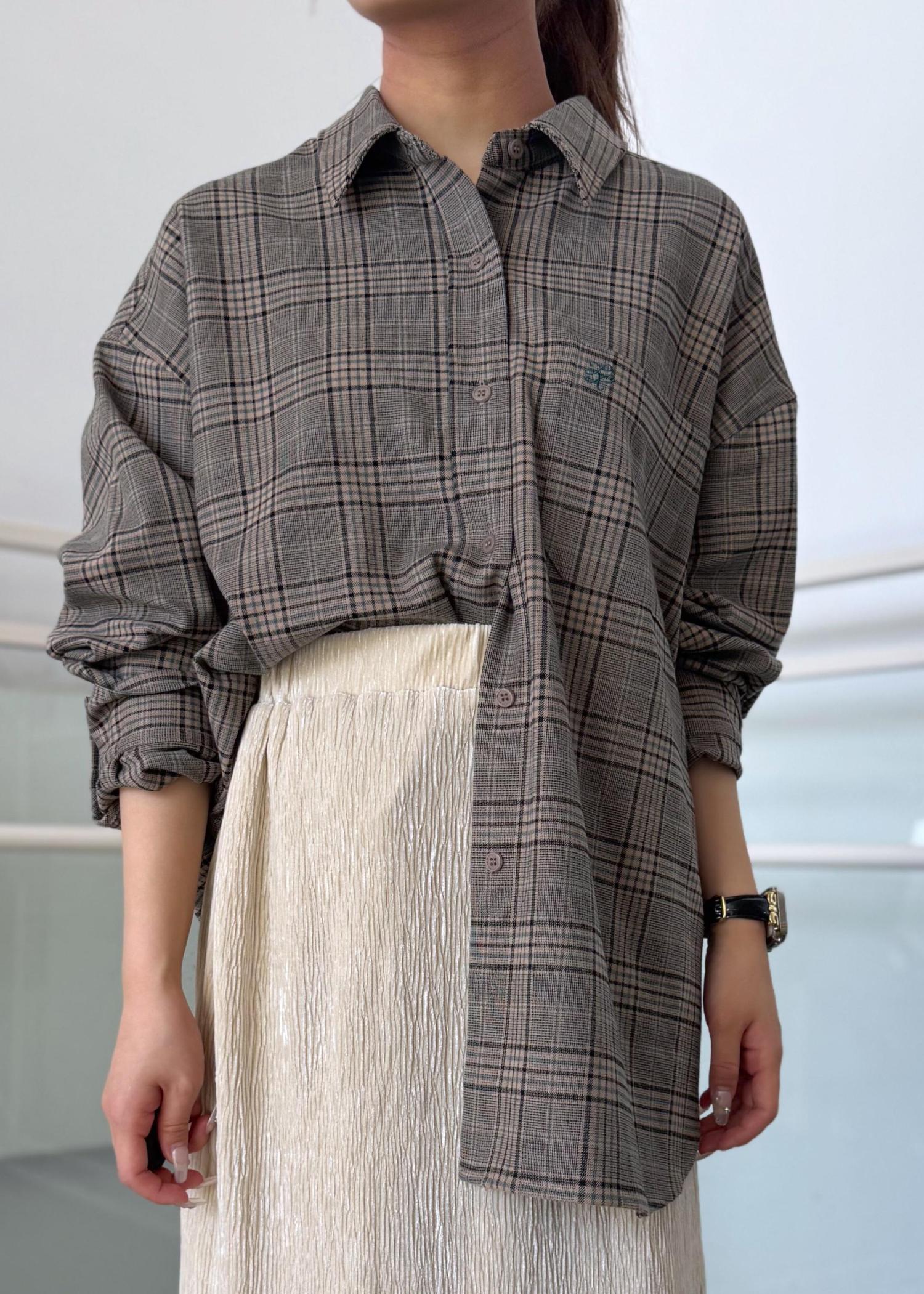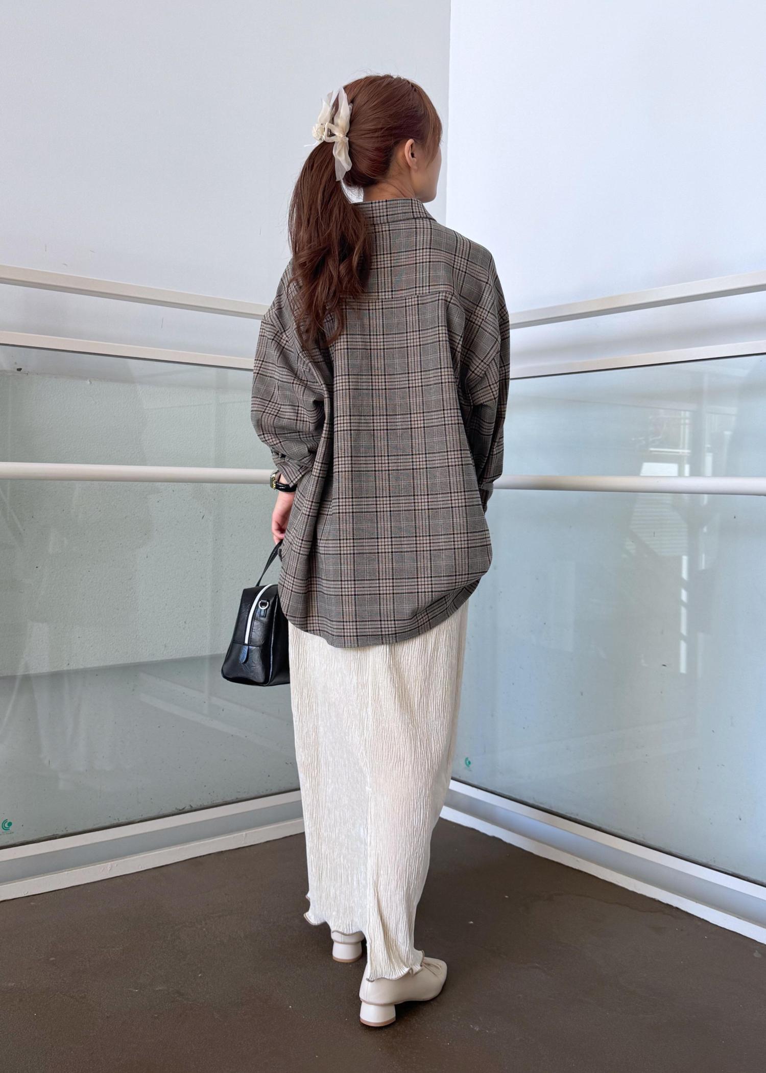 チェックネルシャツのスカートコーデ