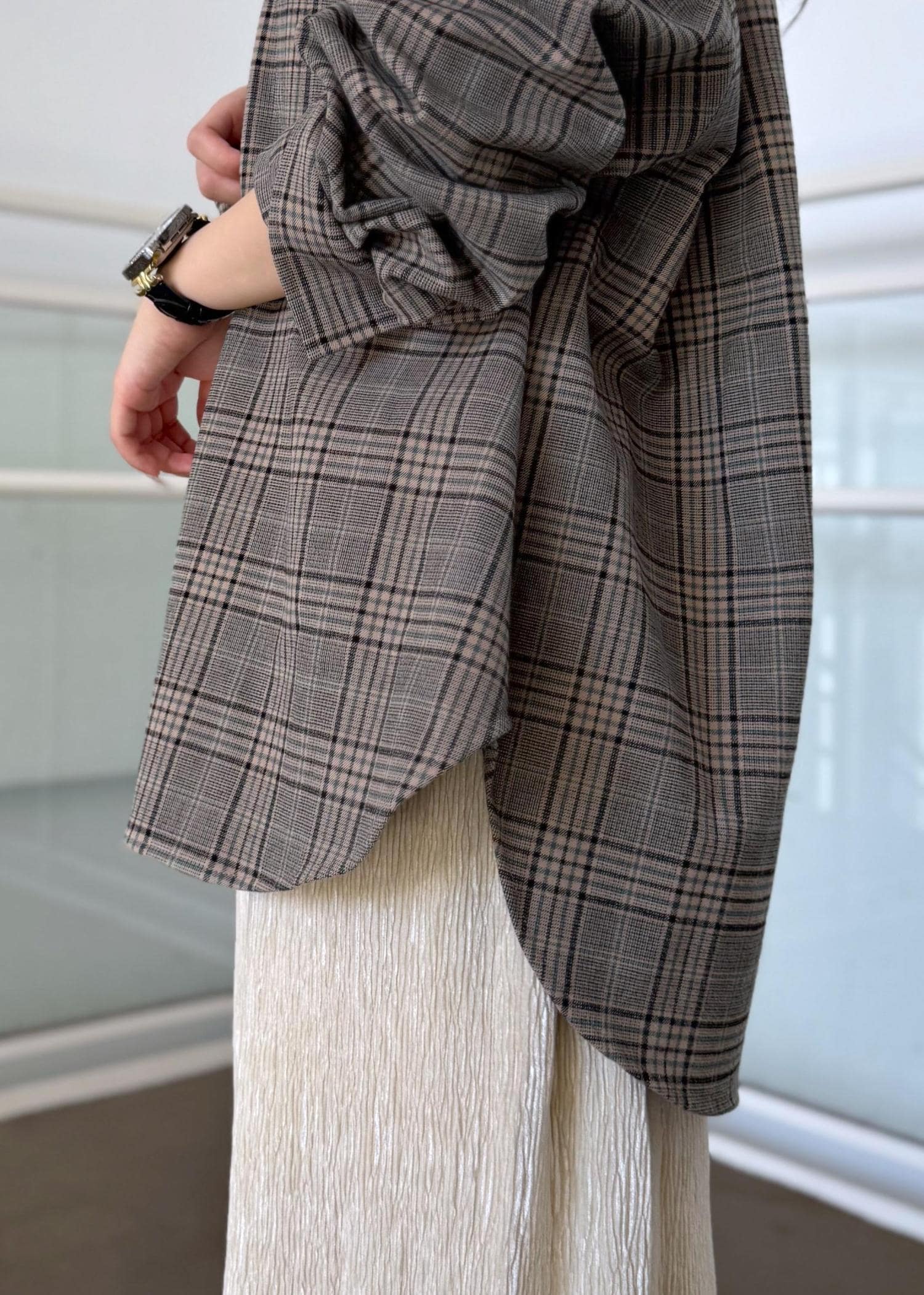 ROPÉ PICNICチェックネルシャツ/リンクコーデベージュ / F¥5,995レビューかなりオーバーサイズで、お尻がしっかりと隠れる丈感です。