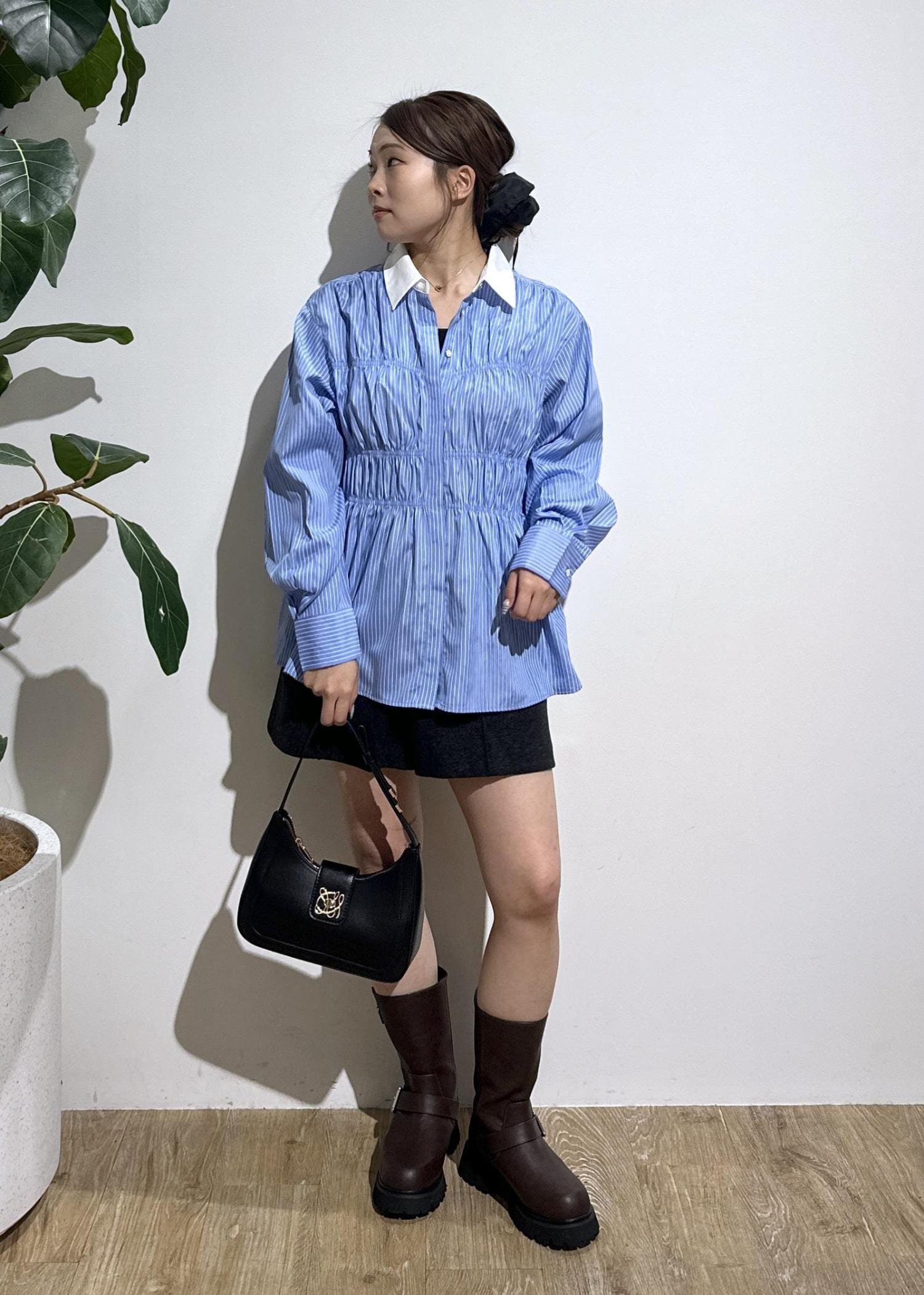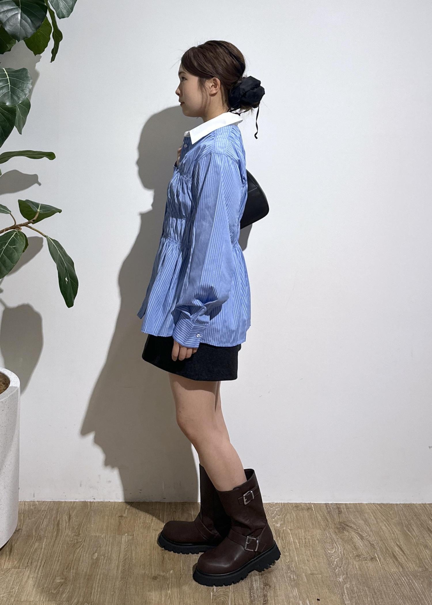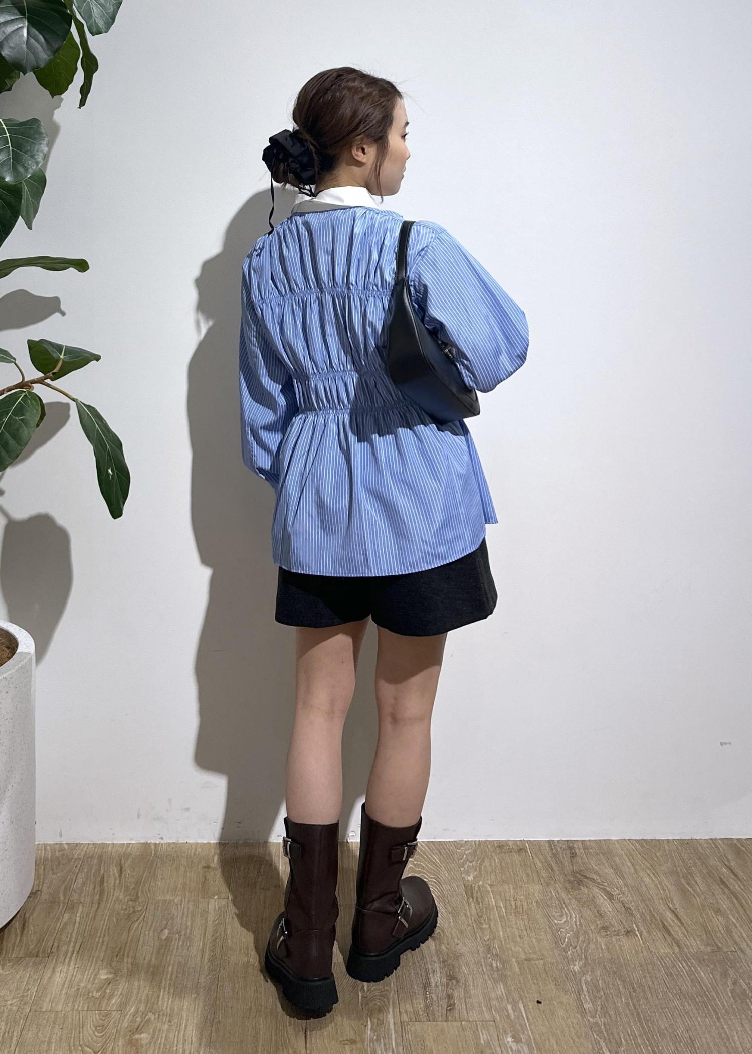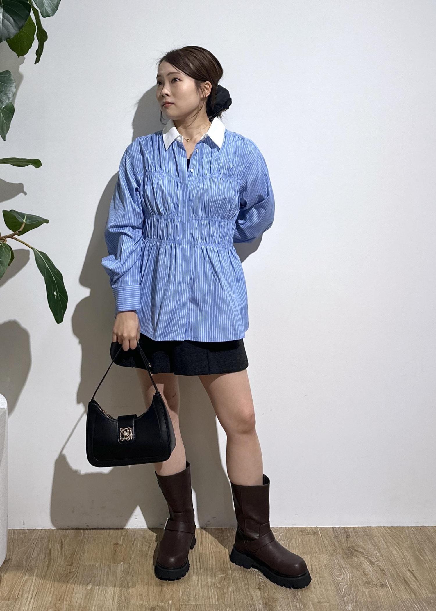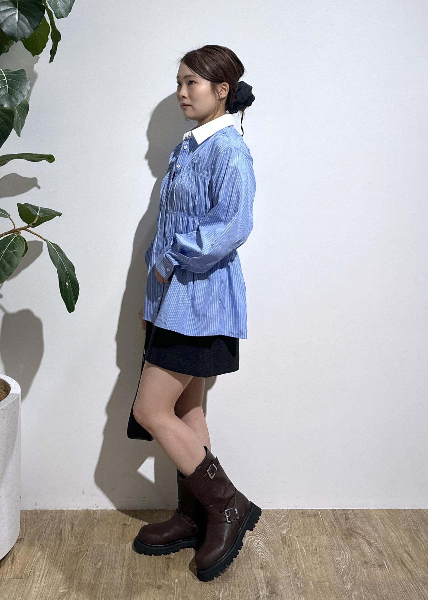 シャーリングデザインシャツ