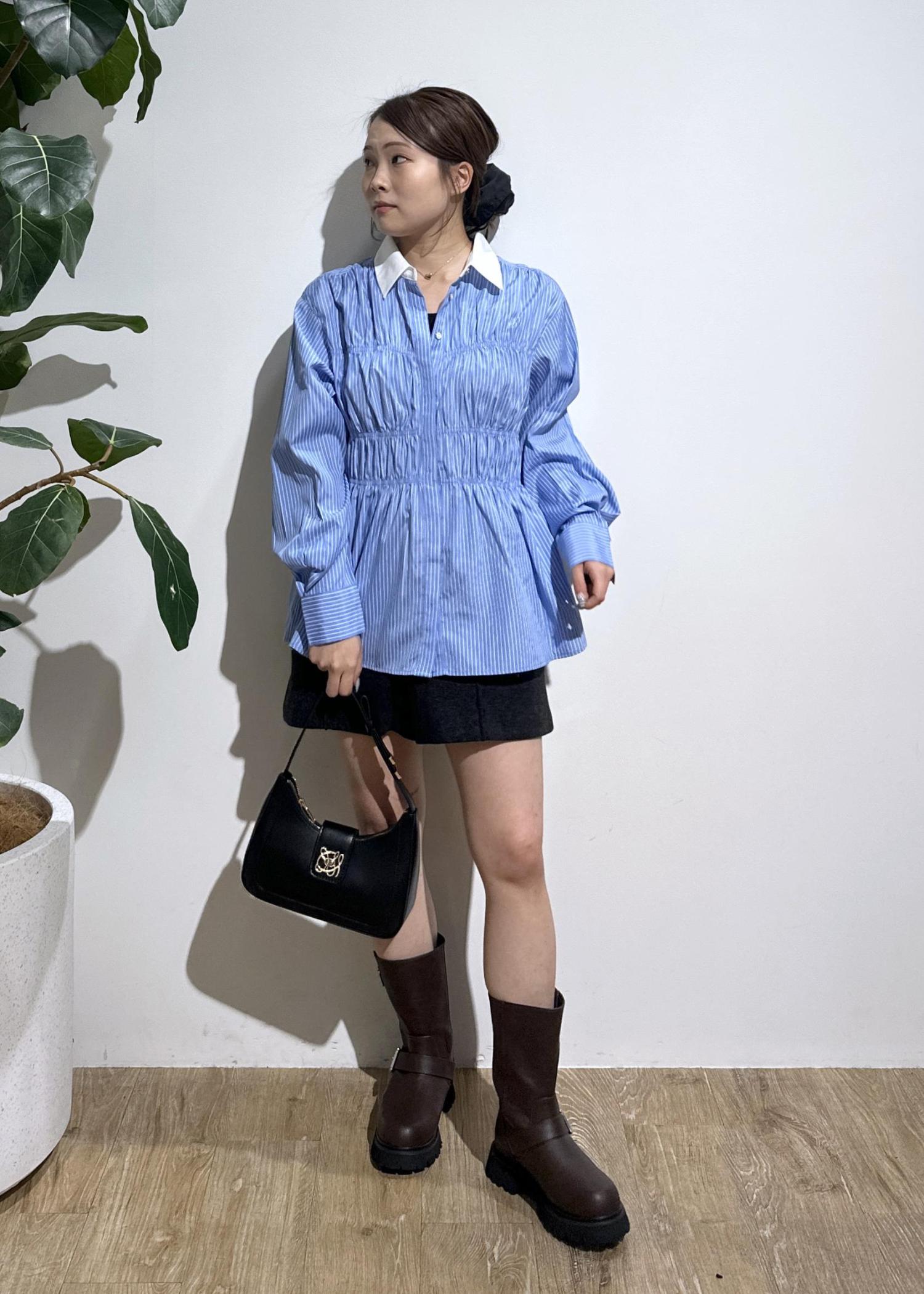 1枚でも映えるシャッですが、ビスチェ合わせやボタンを開けた羽織のコーデもおすすめです。