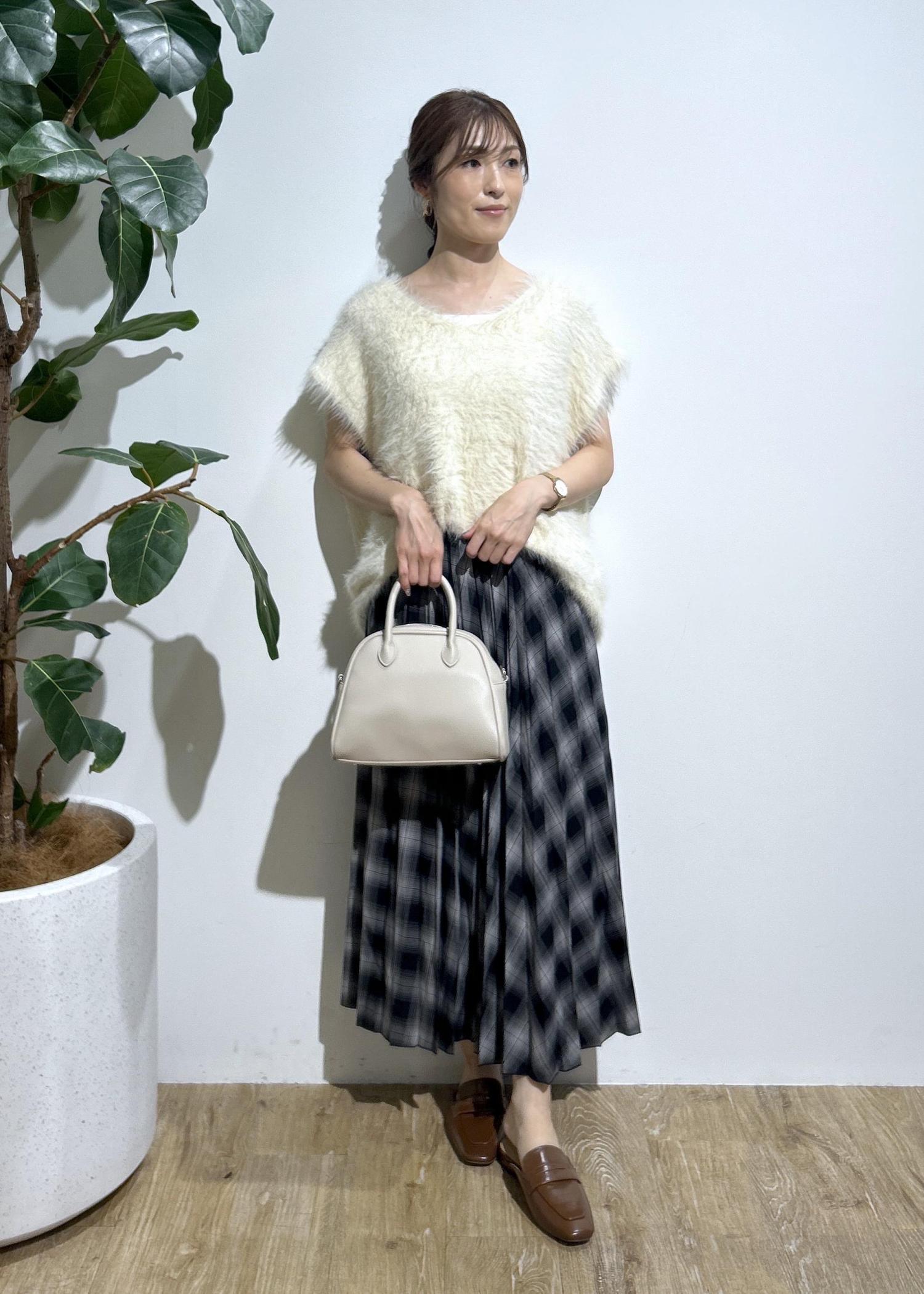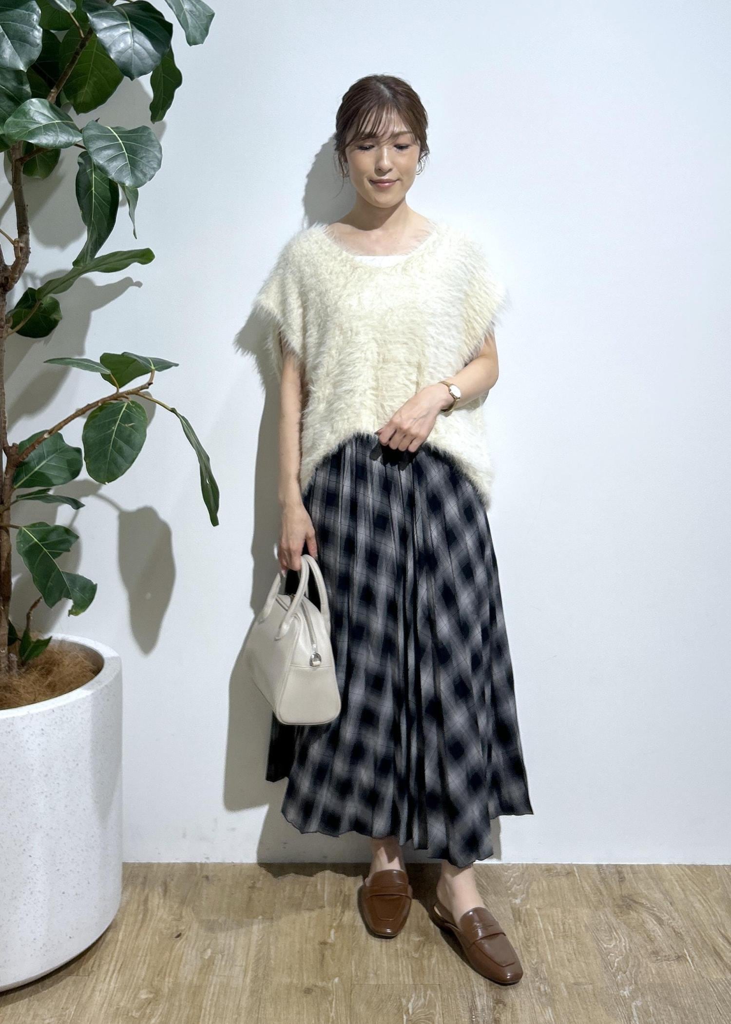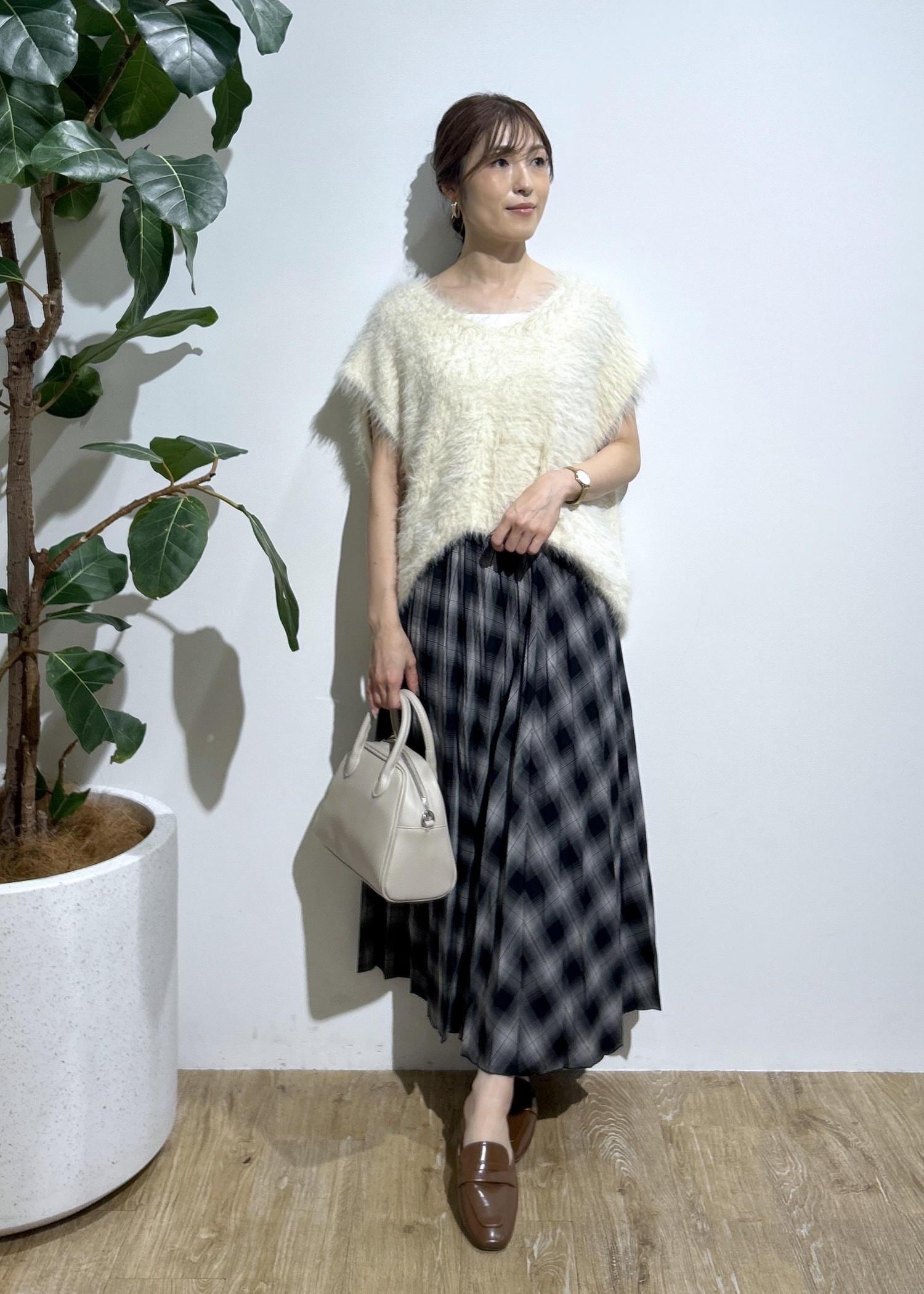 チェックスカート×ファーベストの秋にオススメなコーディネートです。