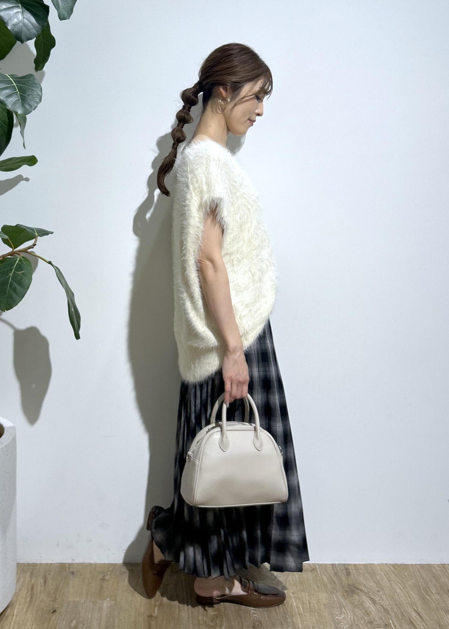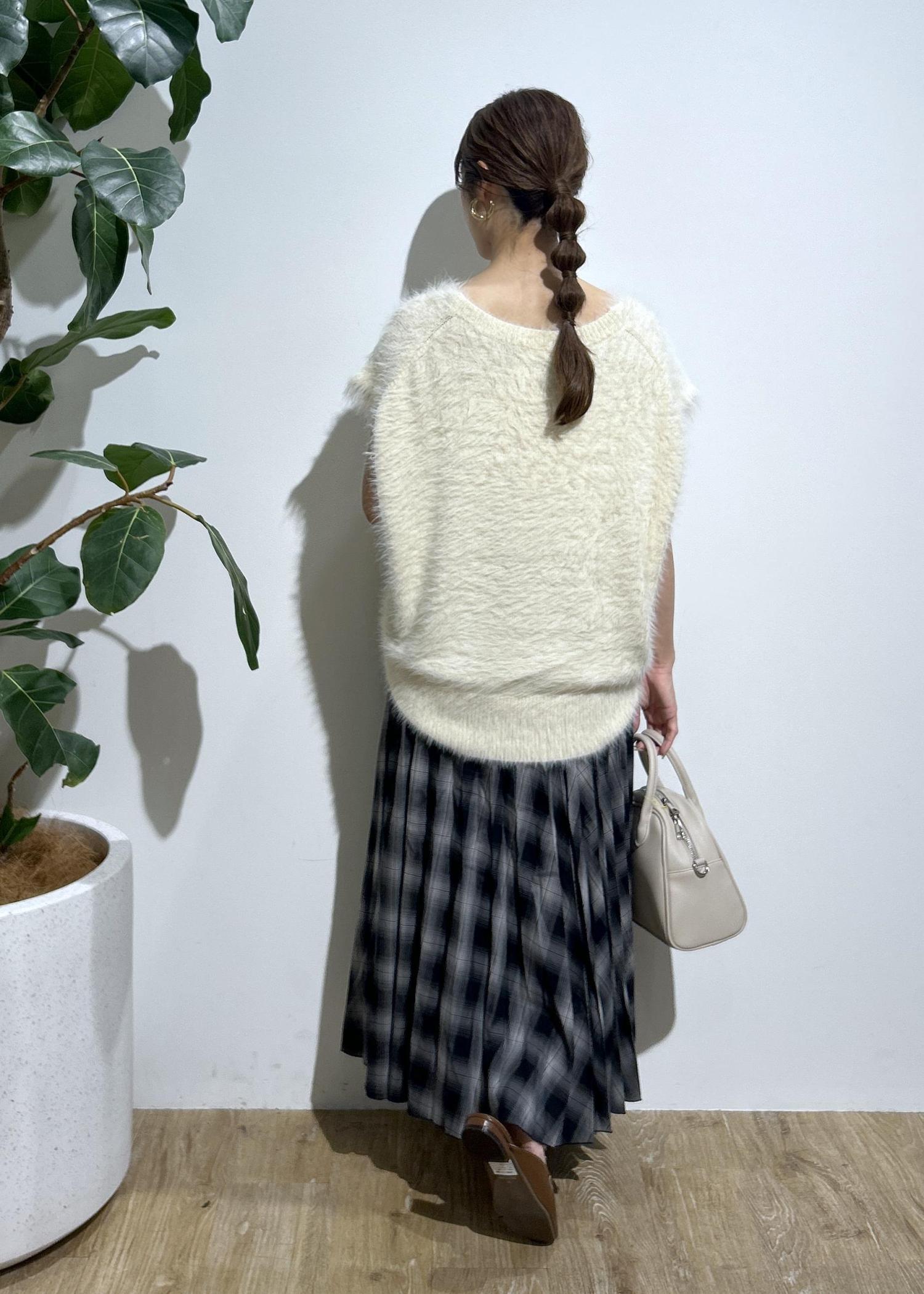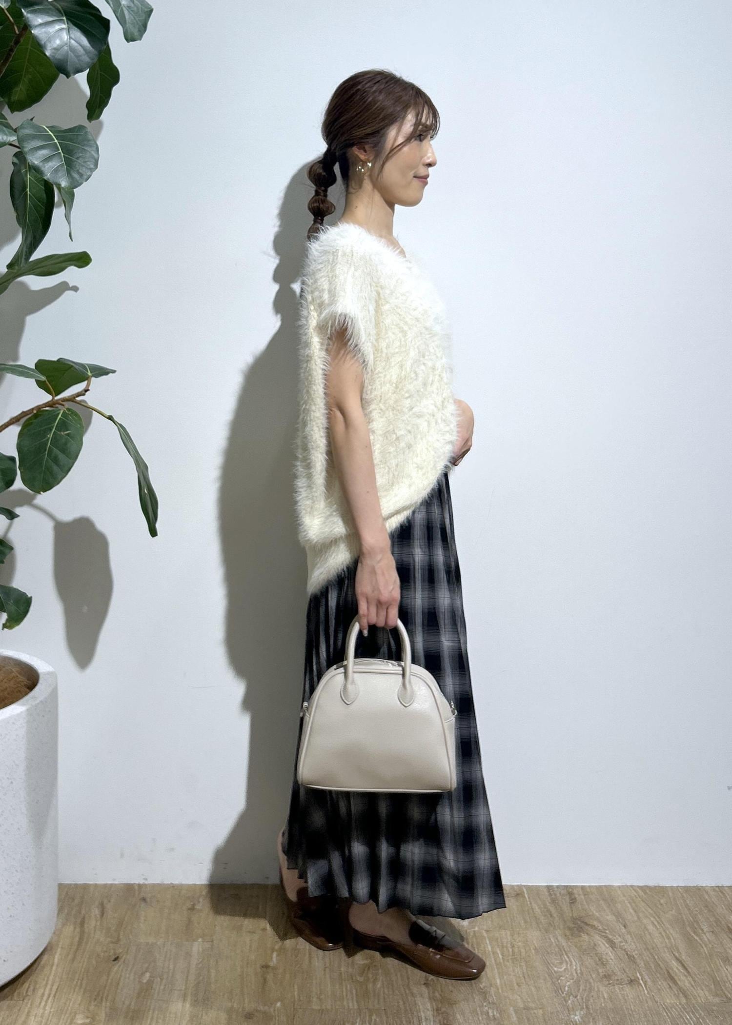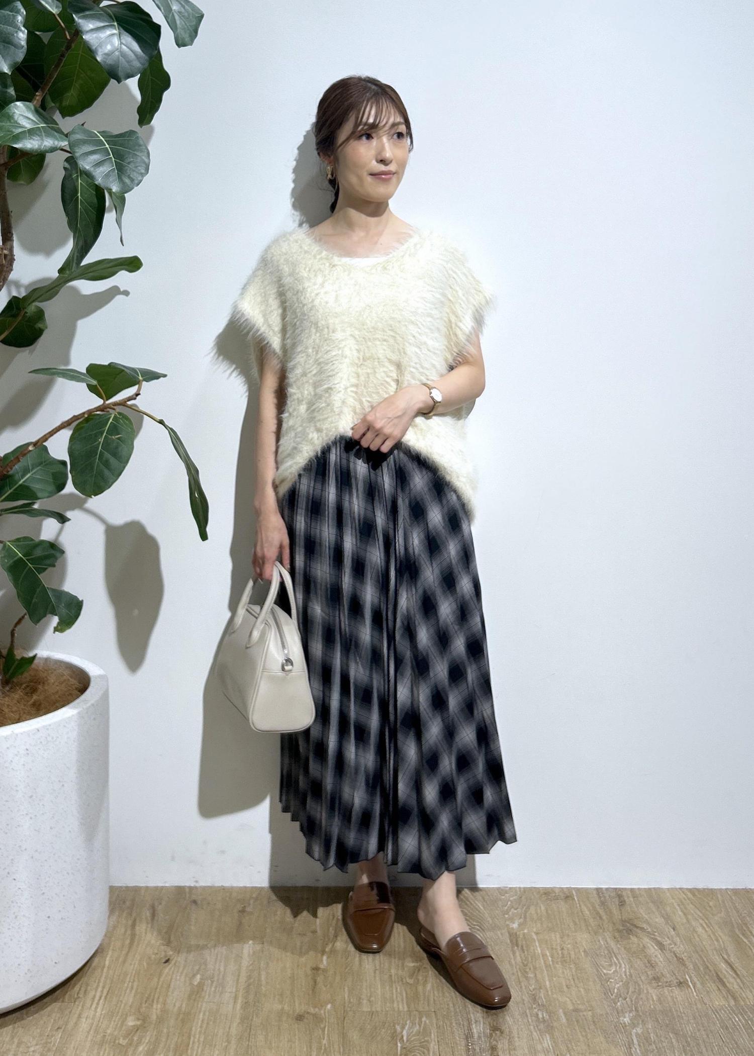 チェックスカート×ファーベストの秋にオススメなコーディネートです。