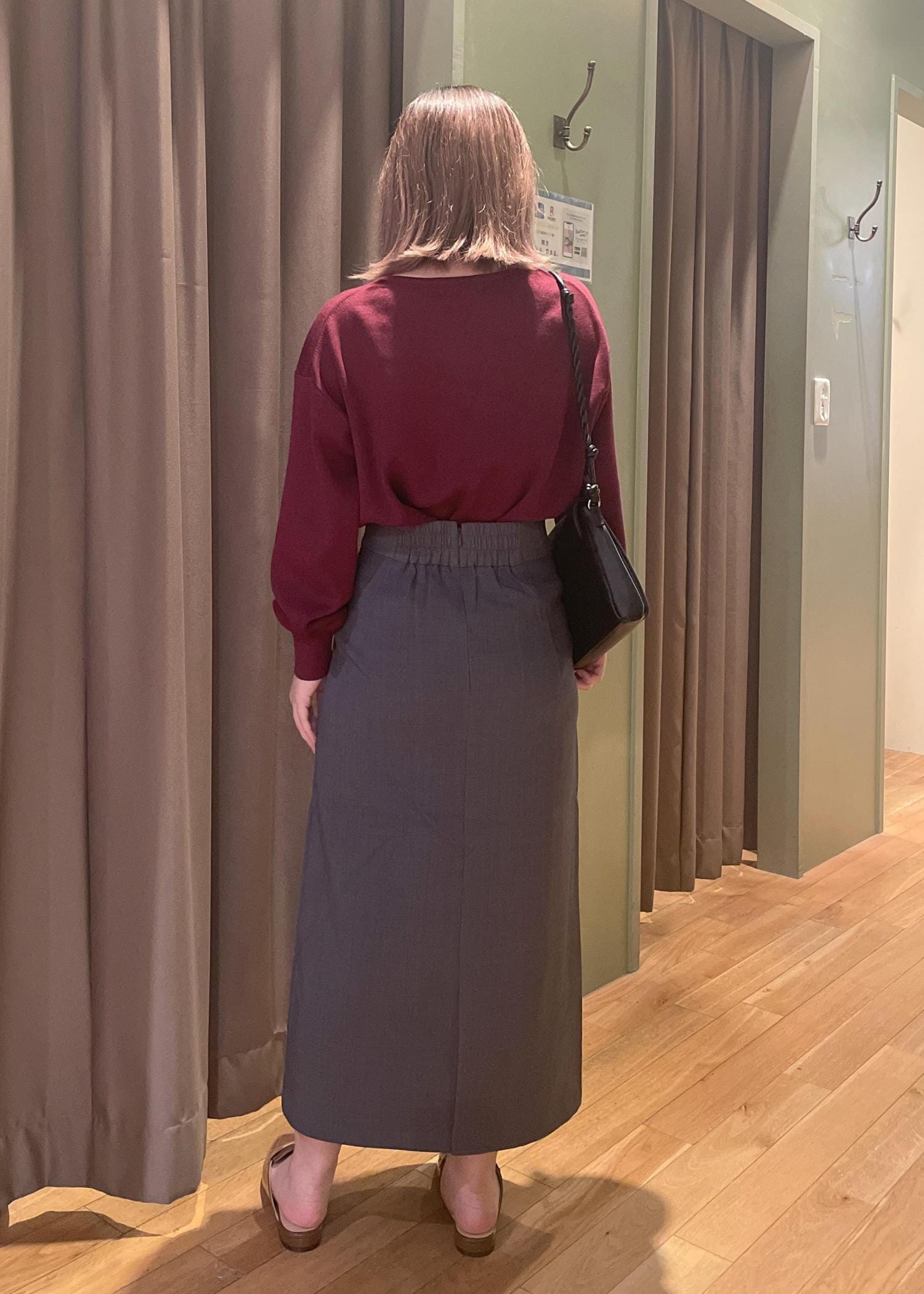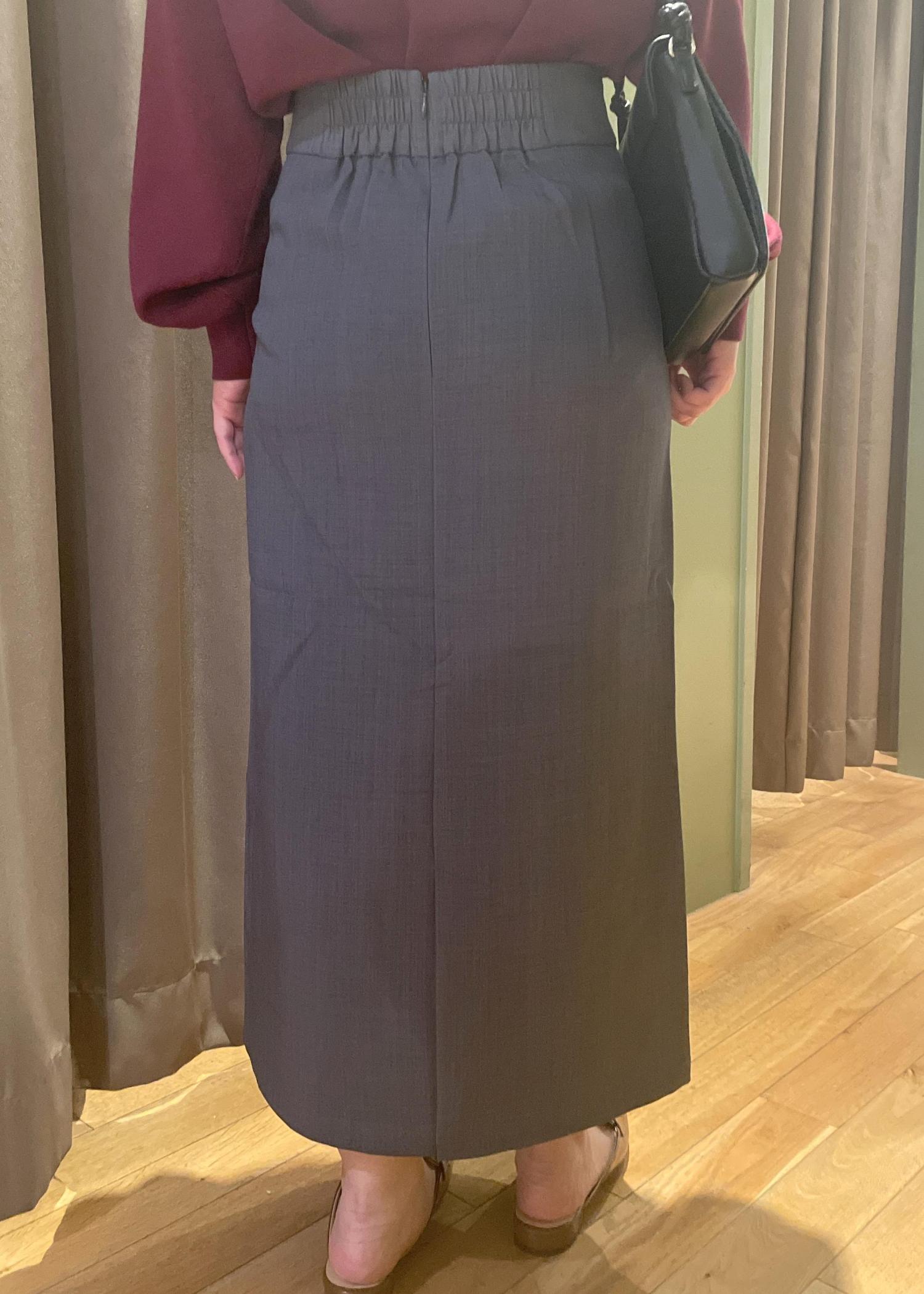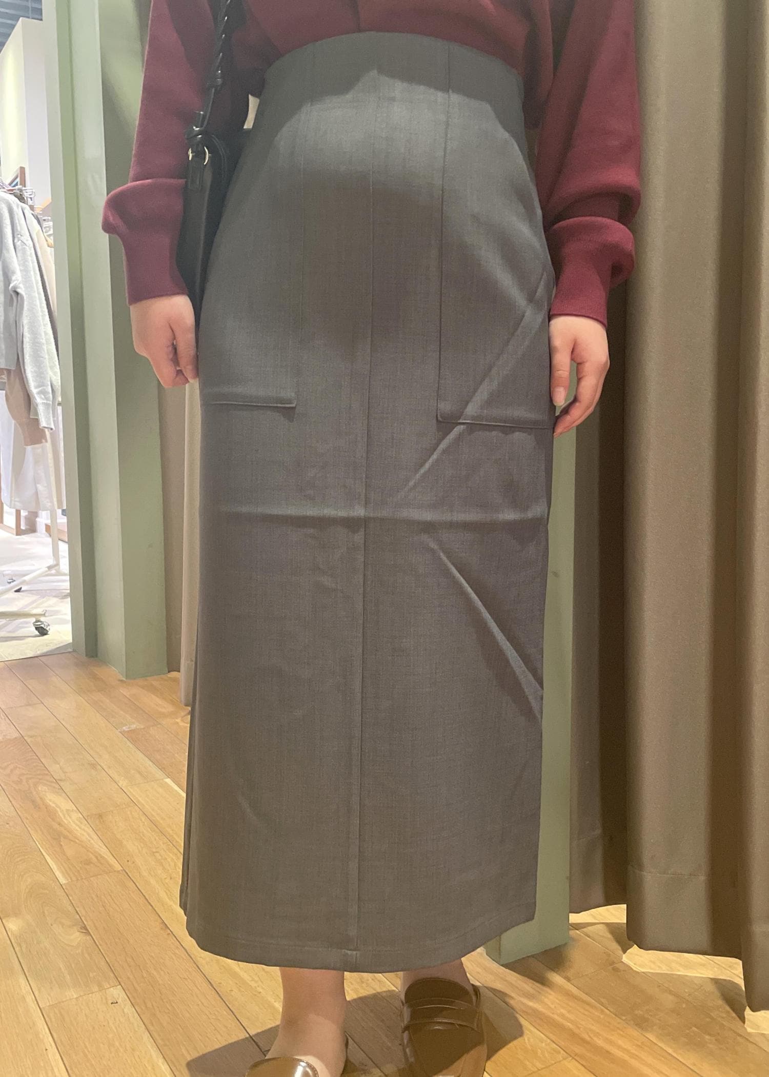 ボトムスの【フロントポケットアイラインスカート】はシンプルで着回し力の高い大人のナロースカートになっています!