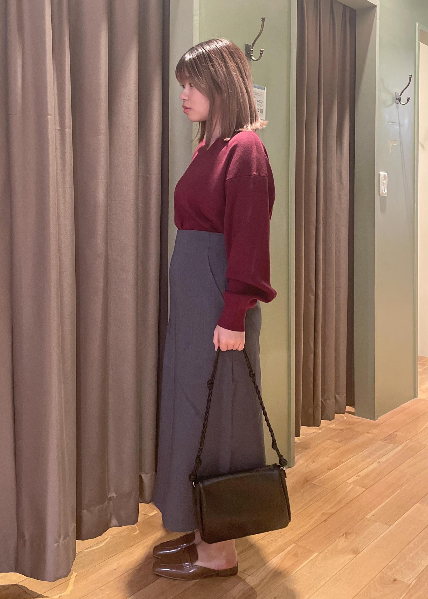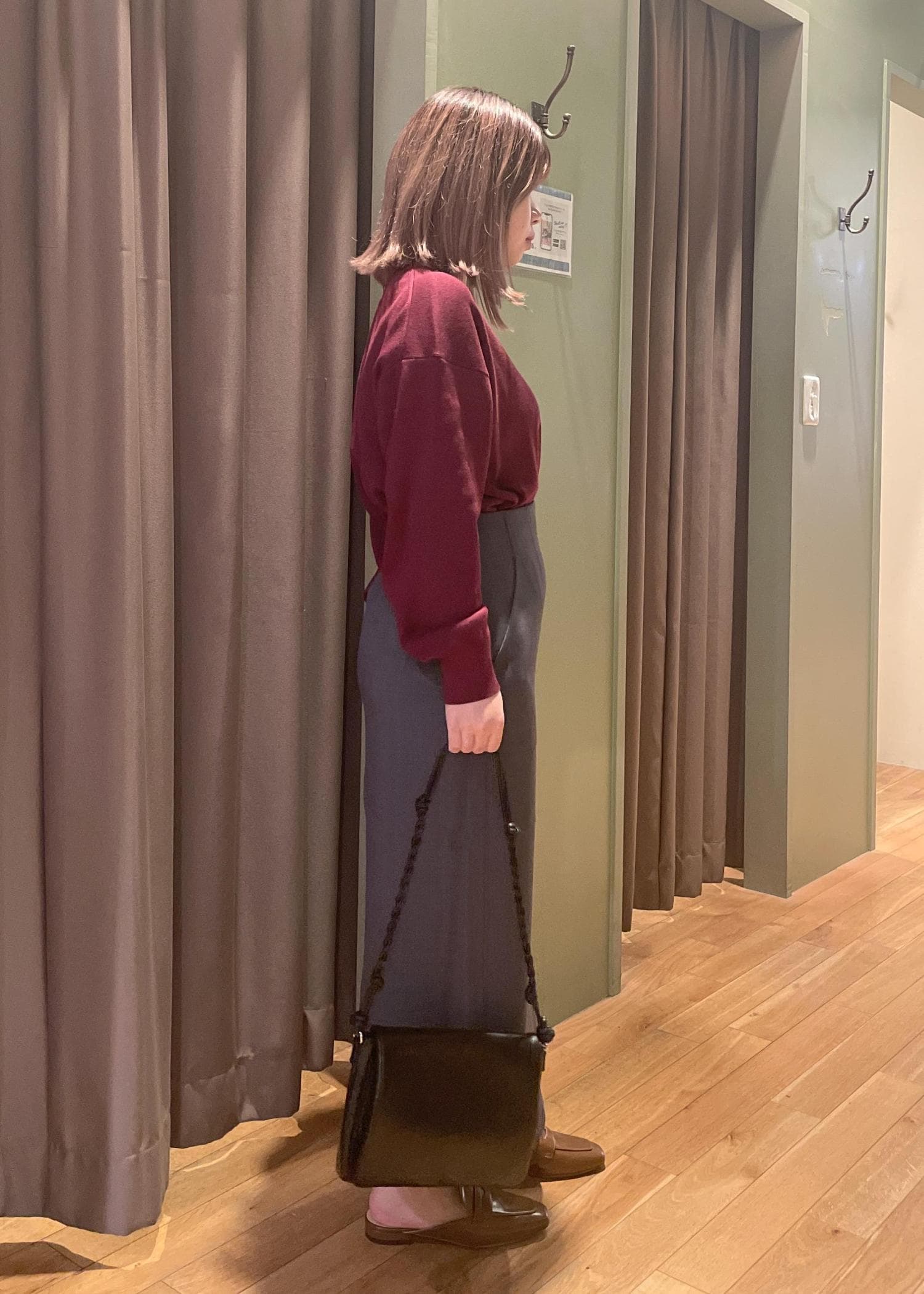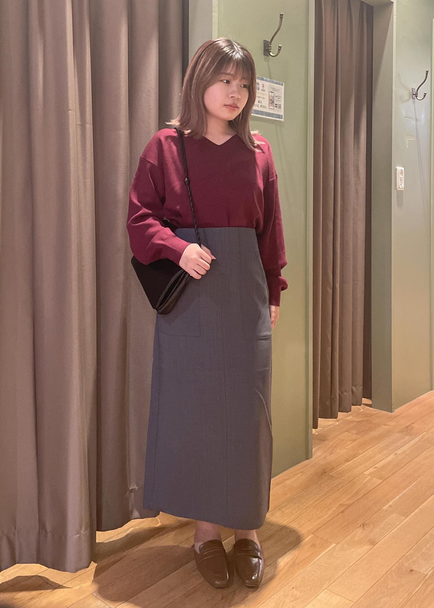 ボトムスの【フロントポケットアイラインスカート】はシンプルで着回し力の高い大人のナロースカートになっています!