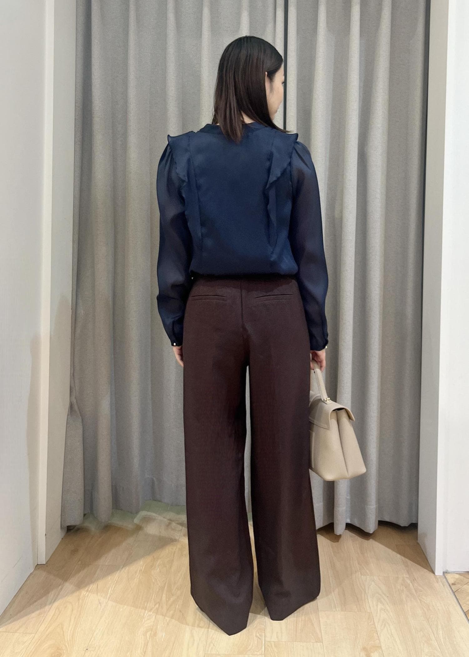 透け感ブラウス×ワイドパンツで上品さと快適さを両立◎