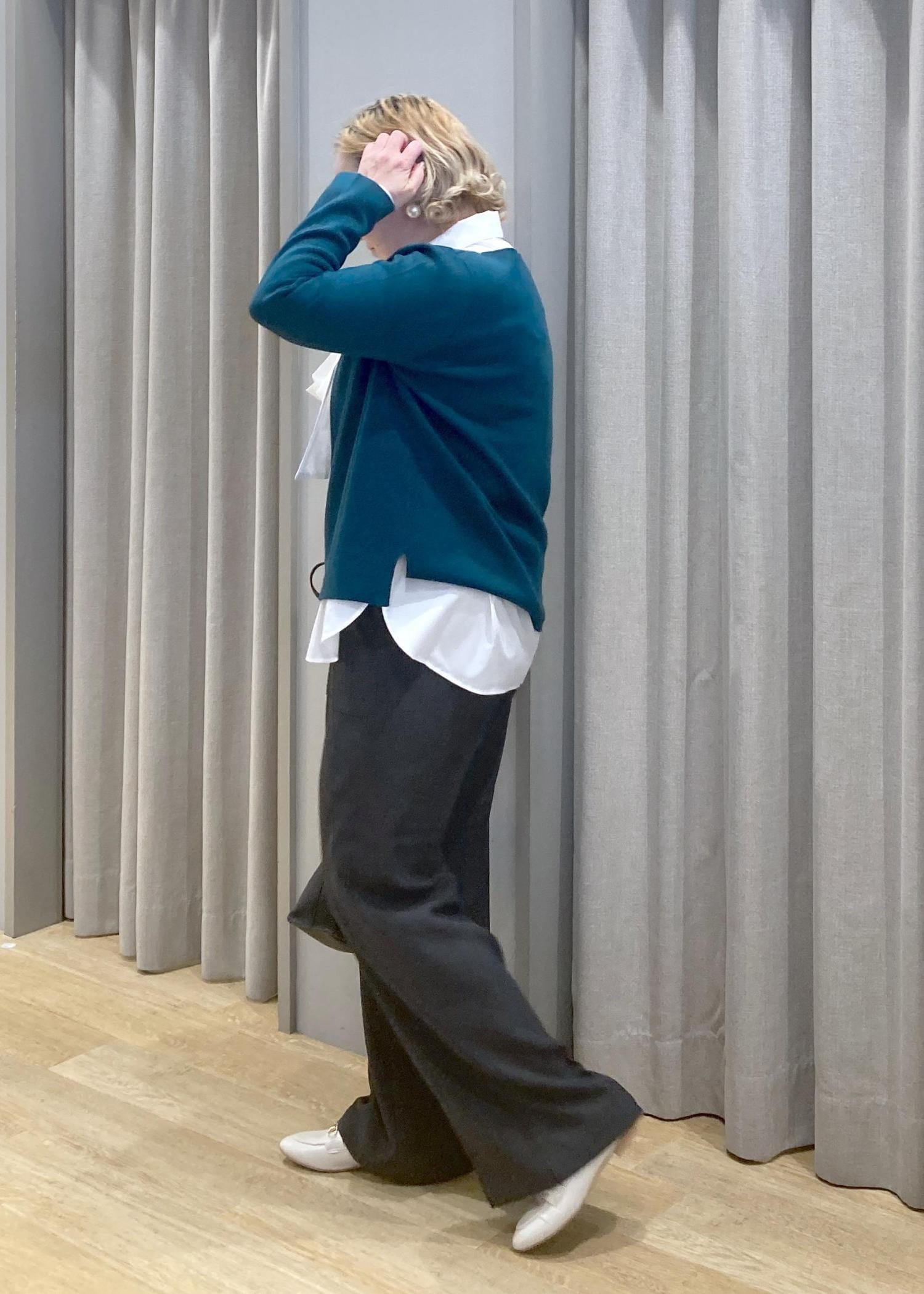 サイドに切り込みが入ってるので、オーバーで着てもすっきり見えします -