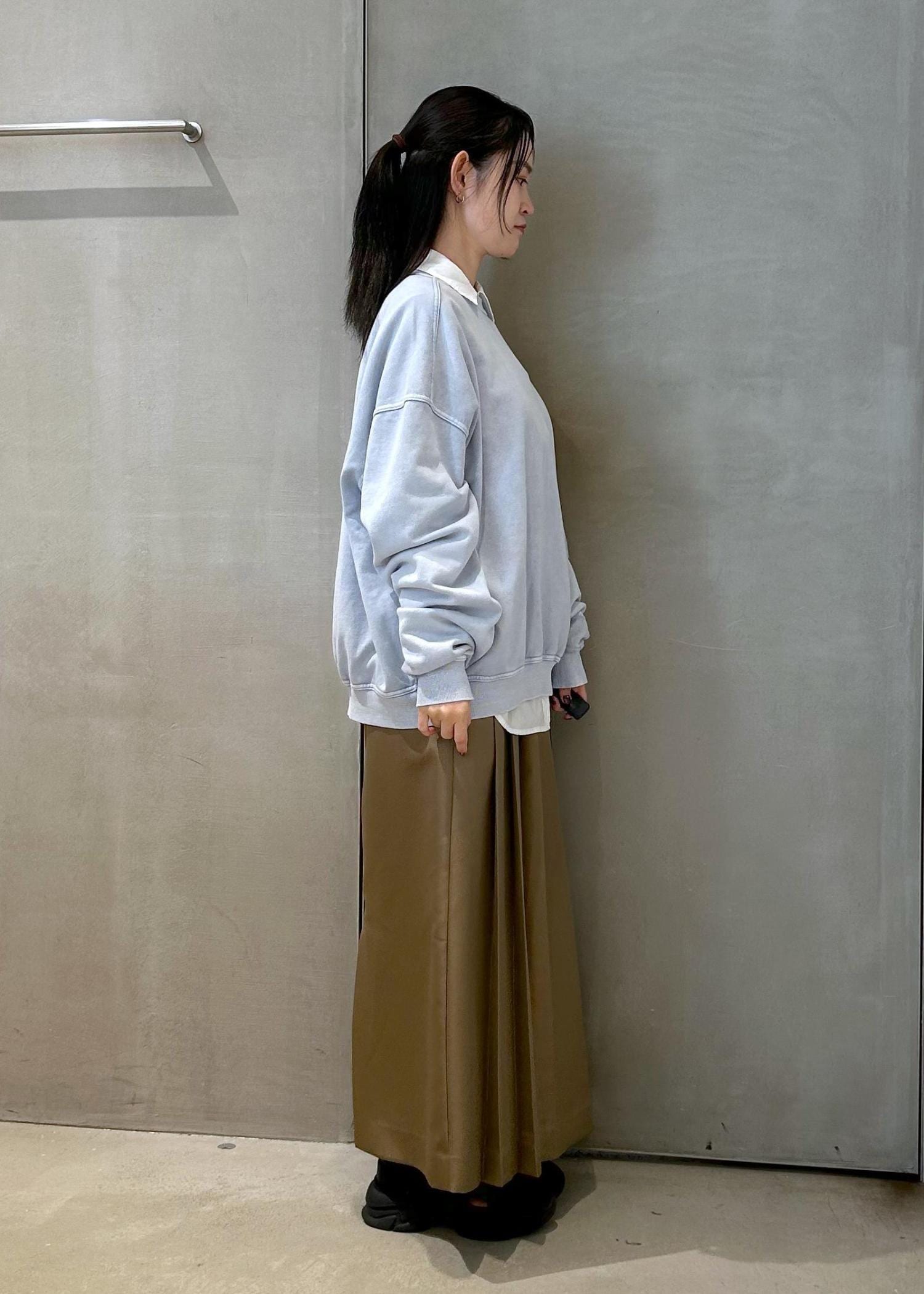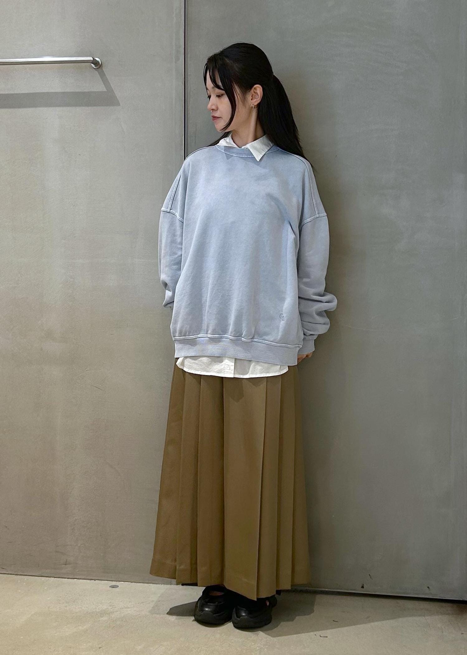 オーバーサイズのスウェットにインナーはシャツにして、