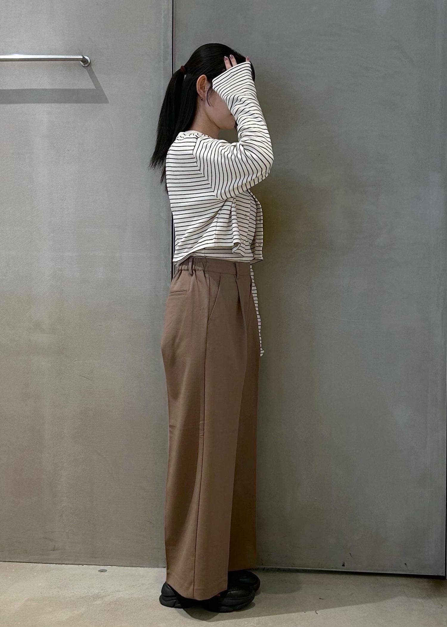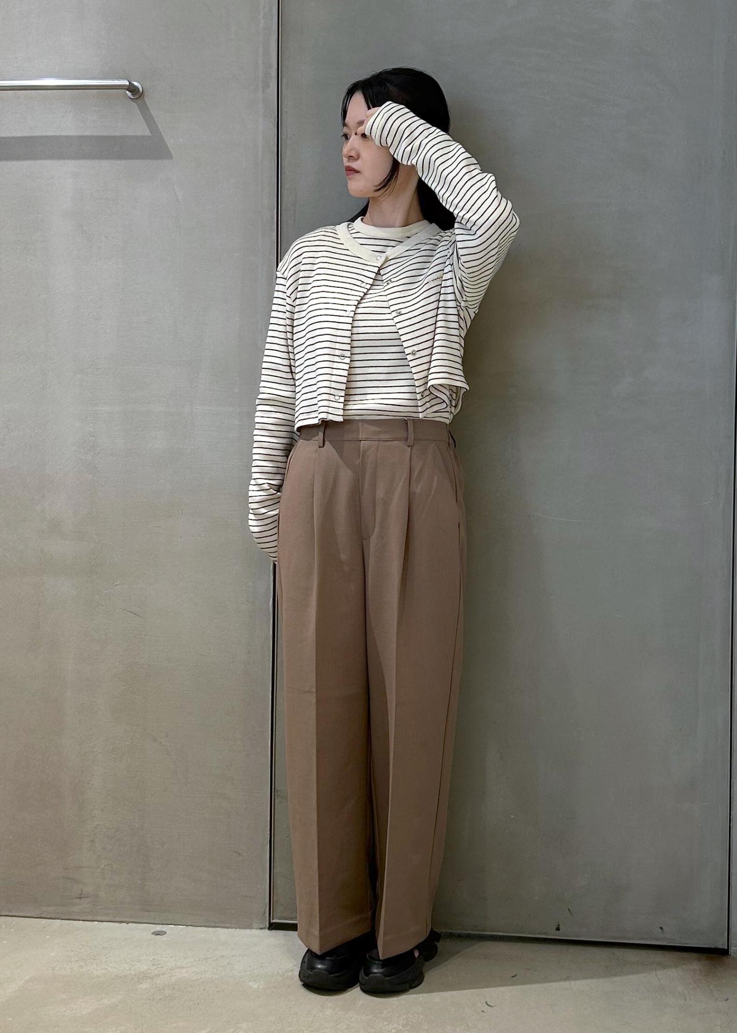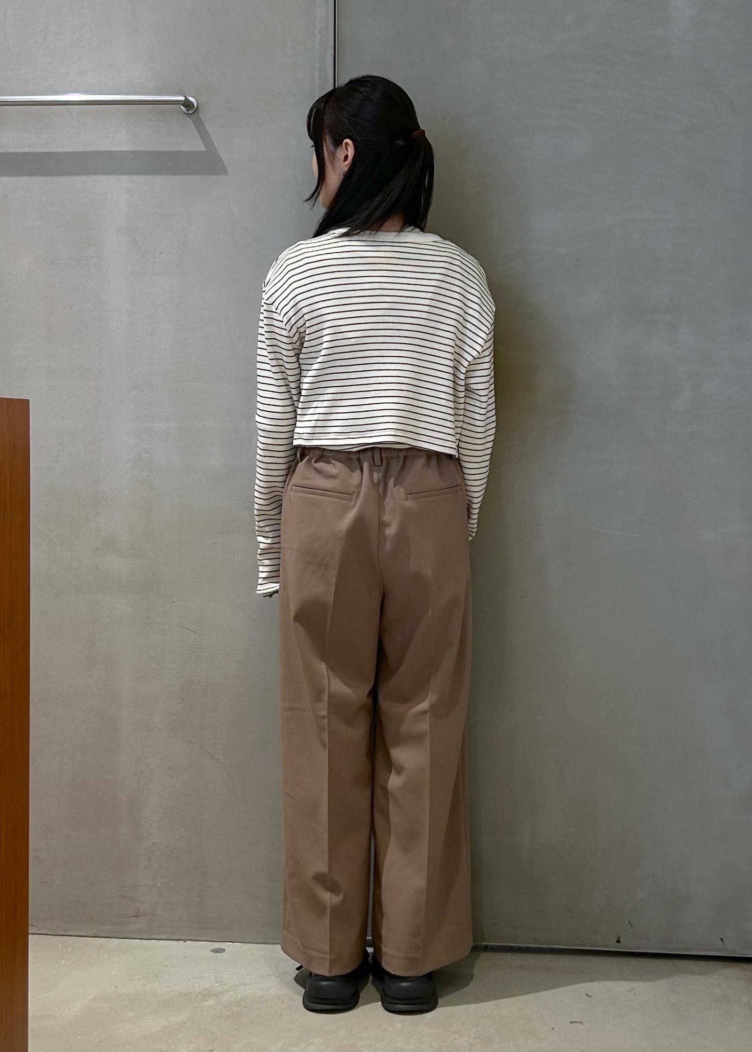 LE CERCLE par ropéタックワイドパンツ/セットアップ対応ベージュ / F¥10,890レビューシワになりにくいさらっとした生地感で、ウエストがゴムで更に紐も付いているので調整可能です!