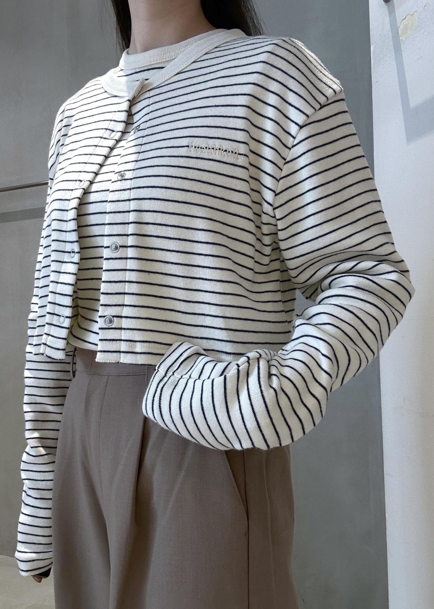 LE CERCLE par ropé【Healthknit/ヘルスニット】別注/Classic Fraise Crewneck Cardigan L/Sキナリ系 / F¥6,490レビュー(gum35490)と同じ素材感のショート丈で、生地感もしっかりしているのでキレイめでもカジュアルでも合わせて頂けます!