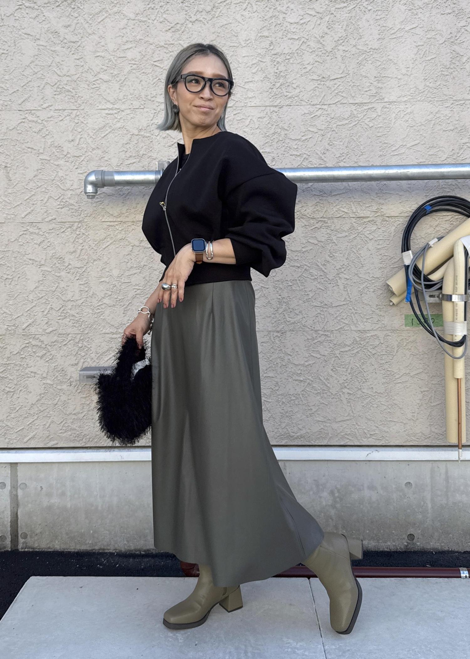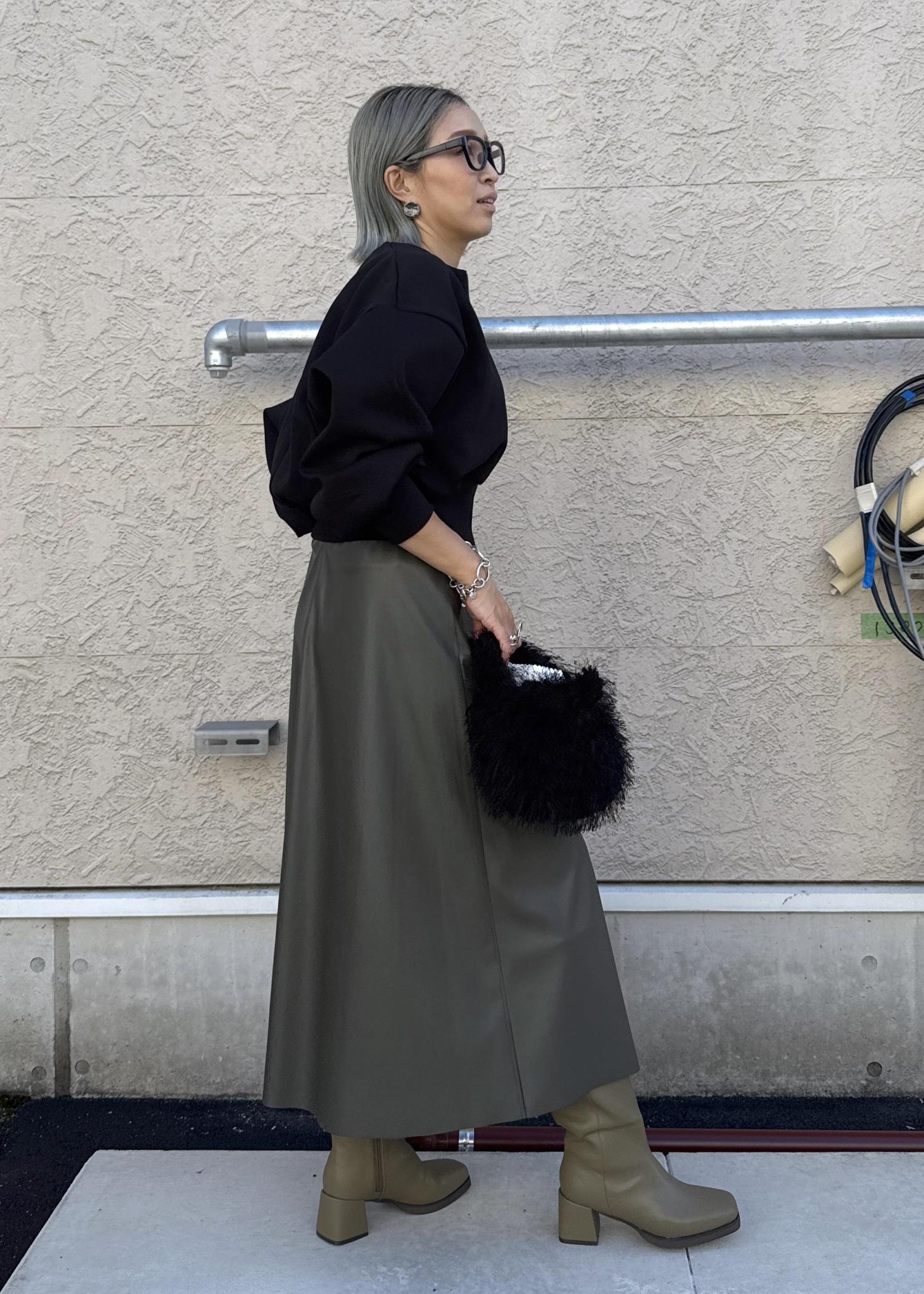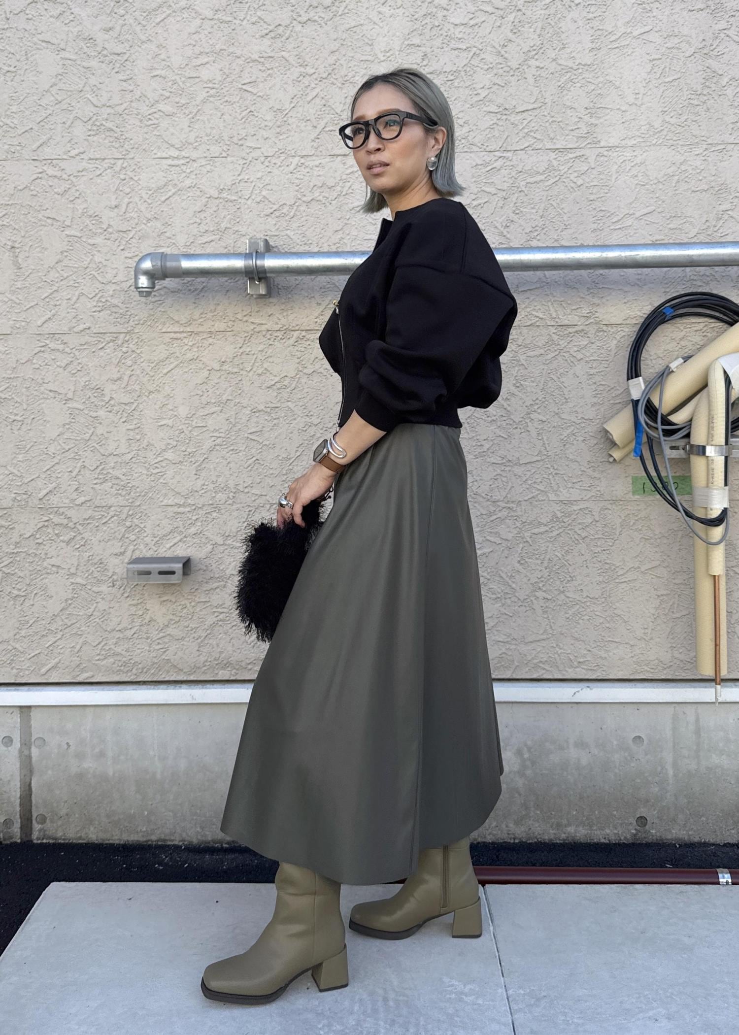 カーキとブラックでかっこいい大人のレザーコーデをしてみました!