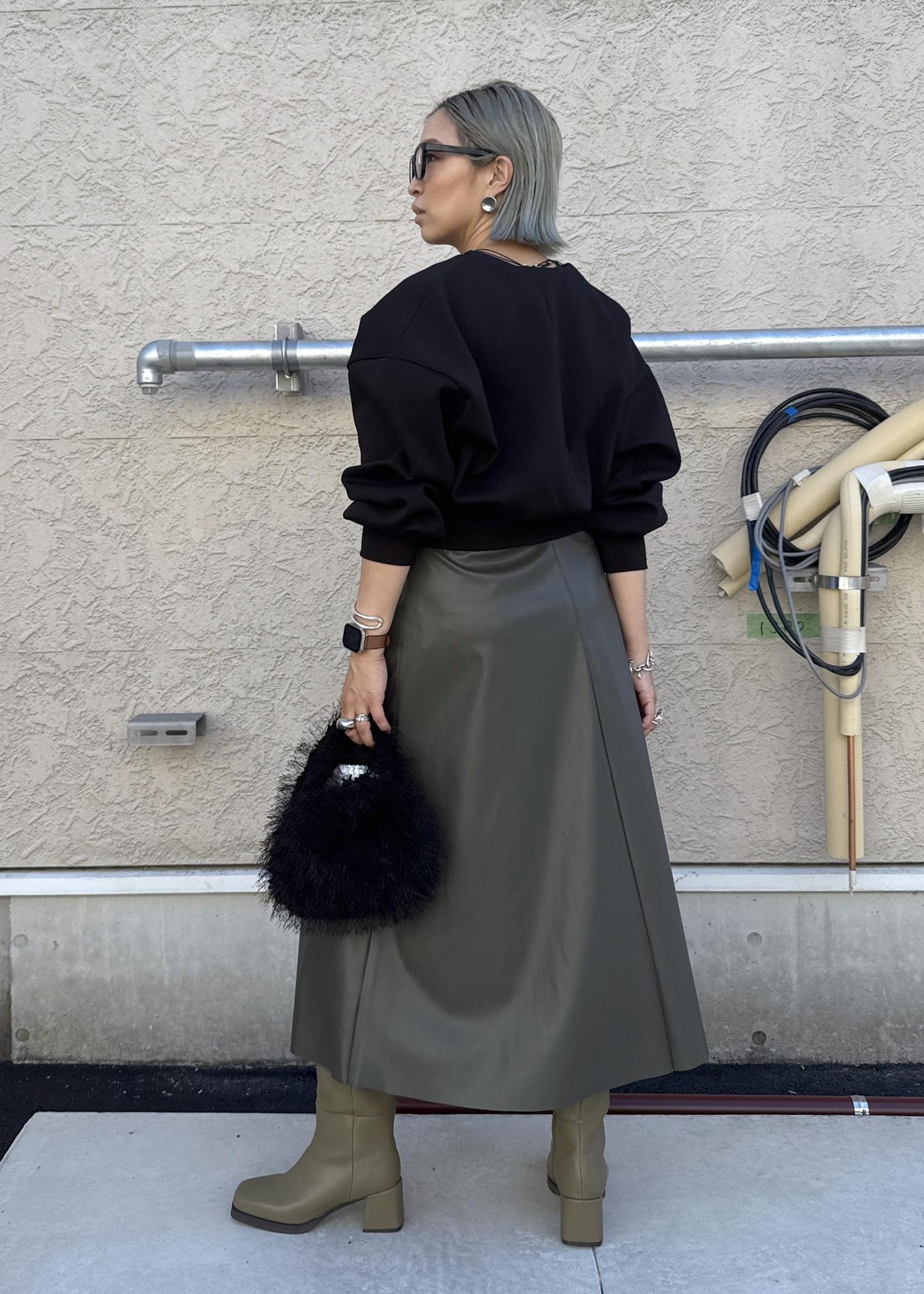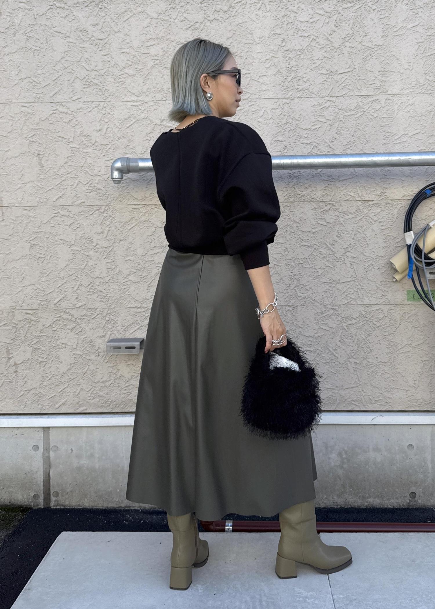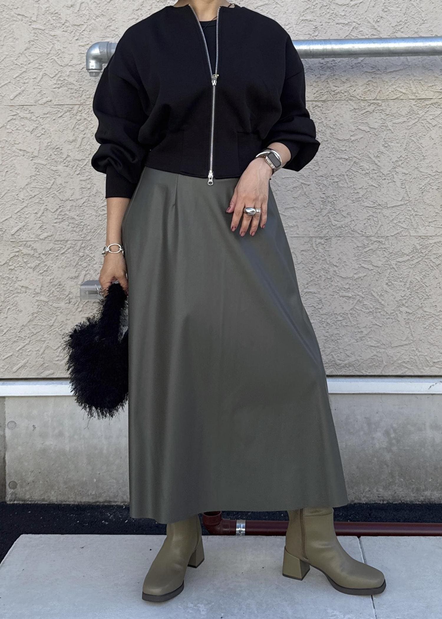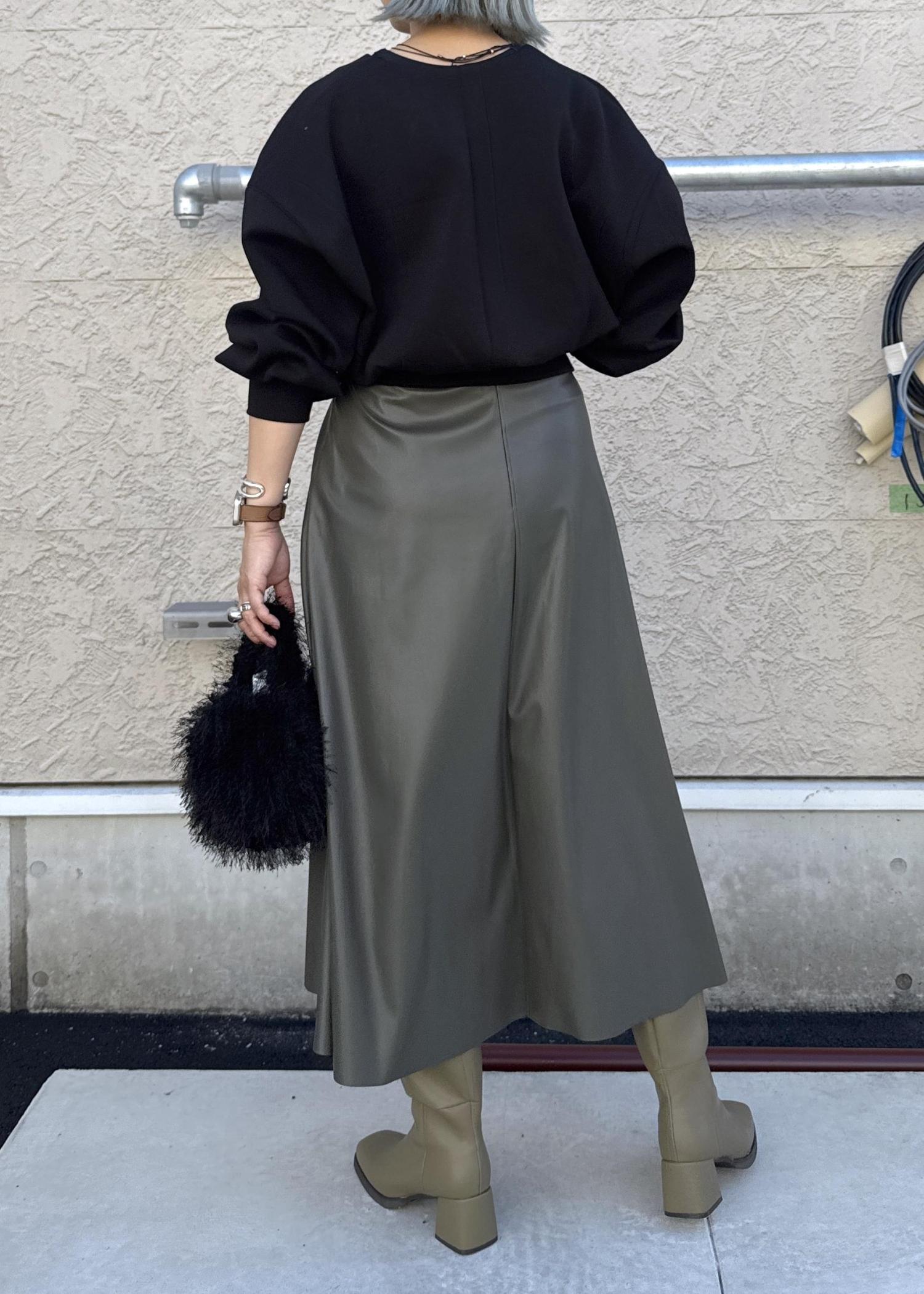 ROPÉ PICNICシンセティックレザーフレアロングスカートカーキ / S¥4,994レビュー背中部分がゴムになっているフェイクレザーマキシスカート。