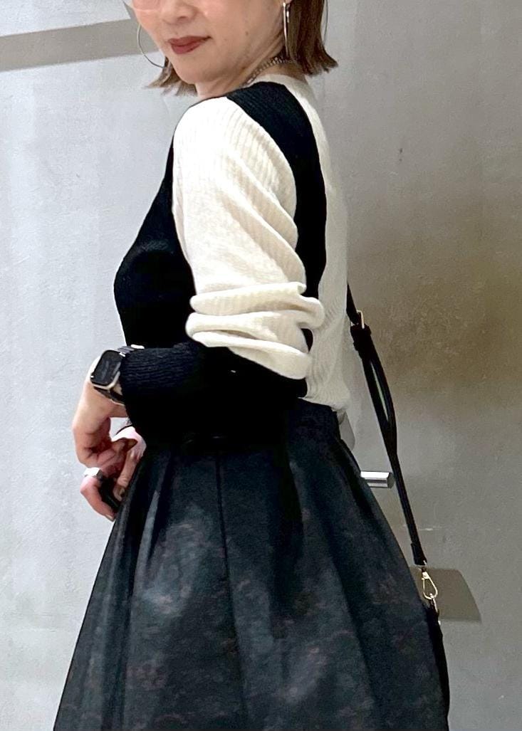 LE CERCLE par ropéアシメバイカラーニットライトグレー / F¥4,950レビューチクチクしないラメが華やかな印象です。バイカラーは一枚でもメインになるので、色違いで揃えたくなるほど。