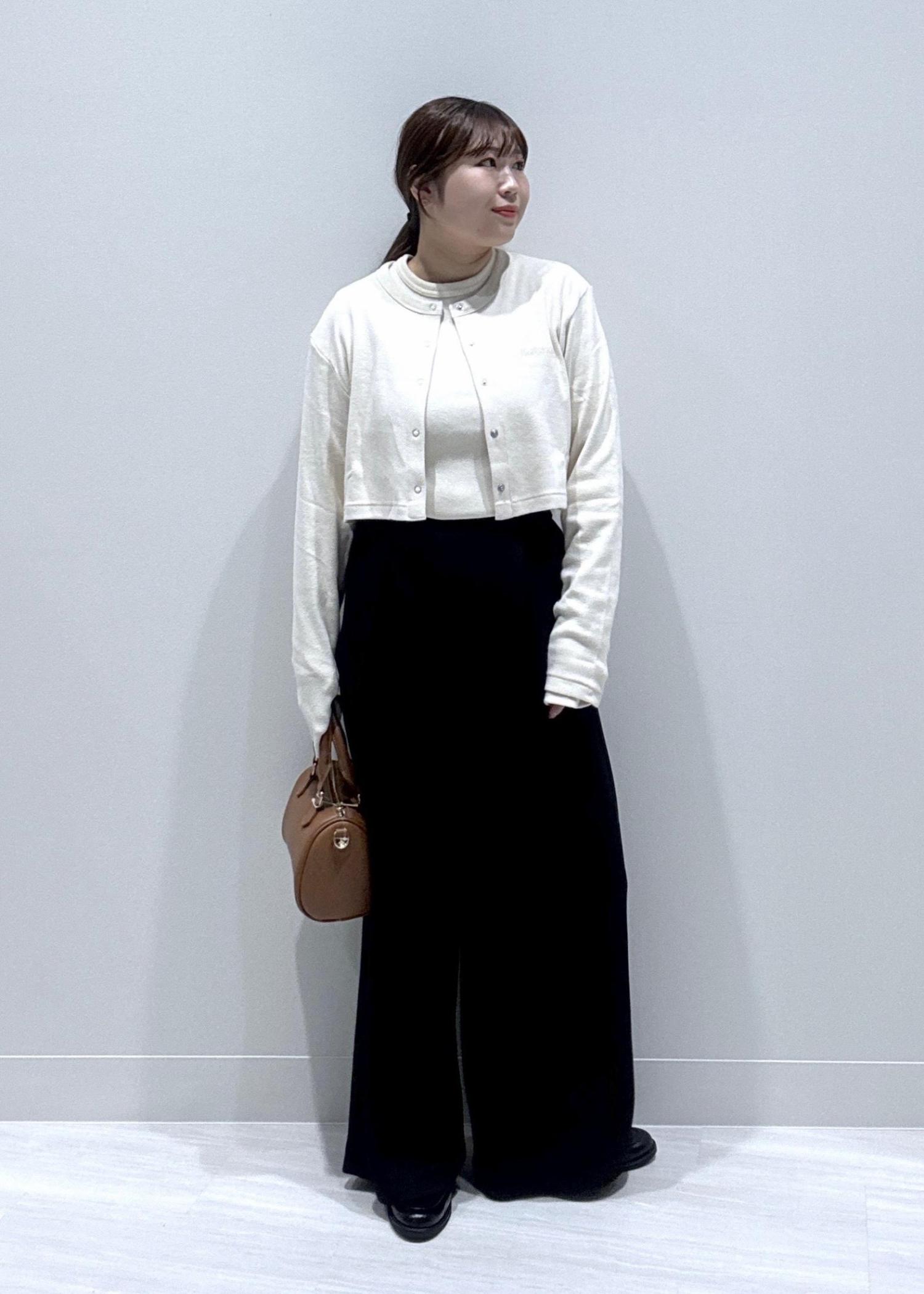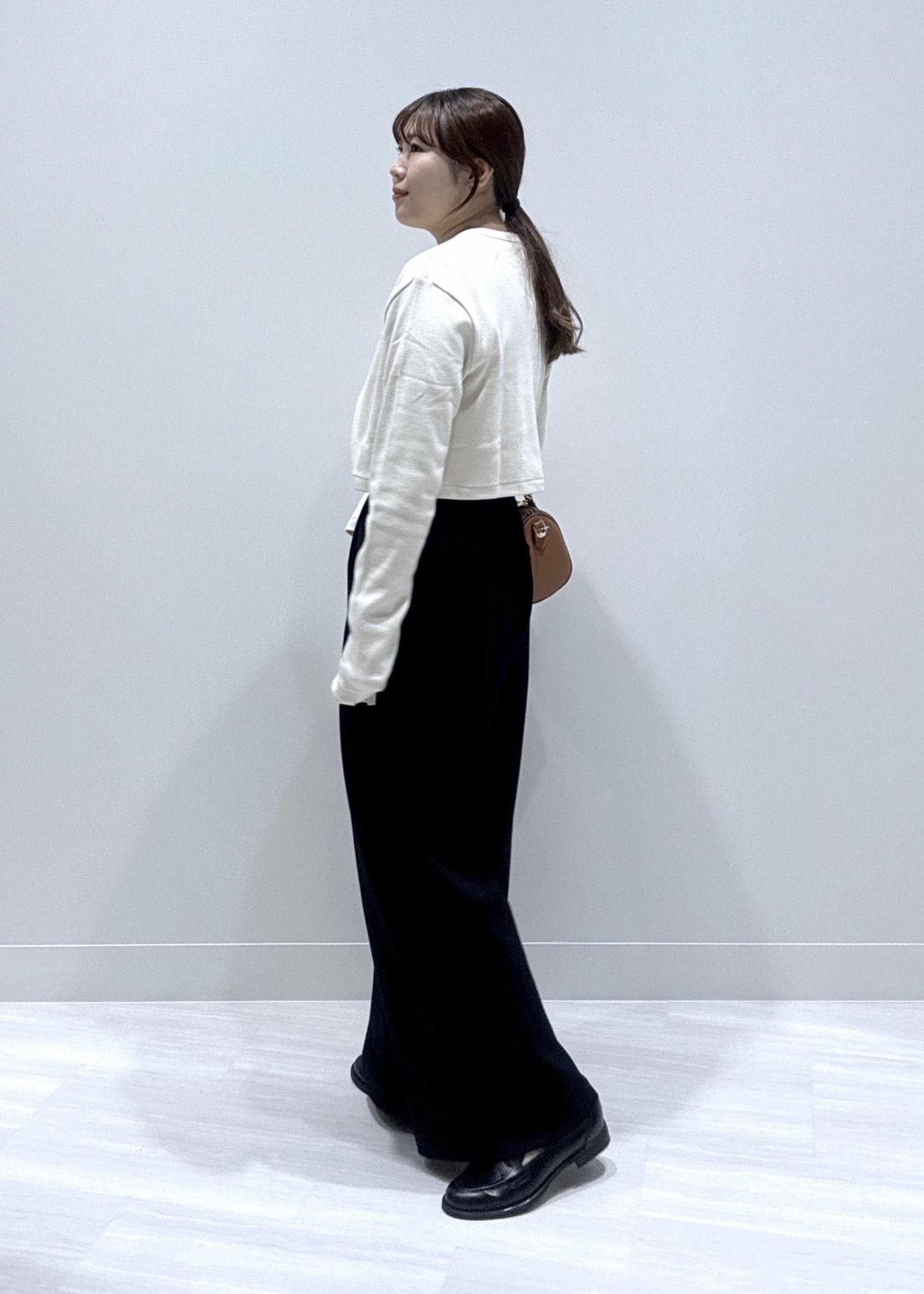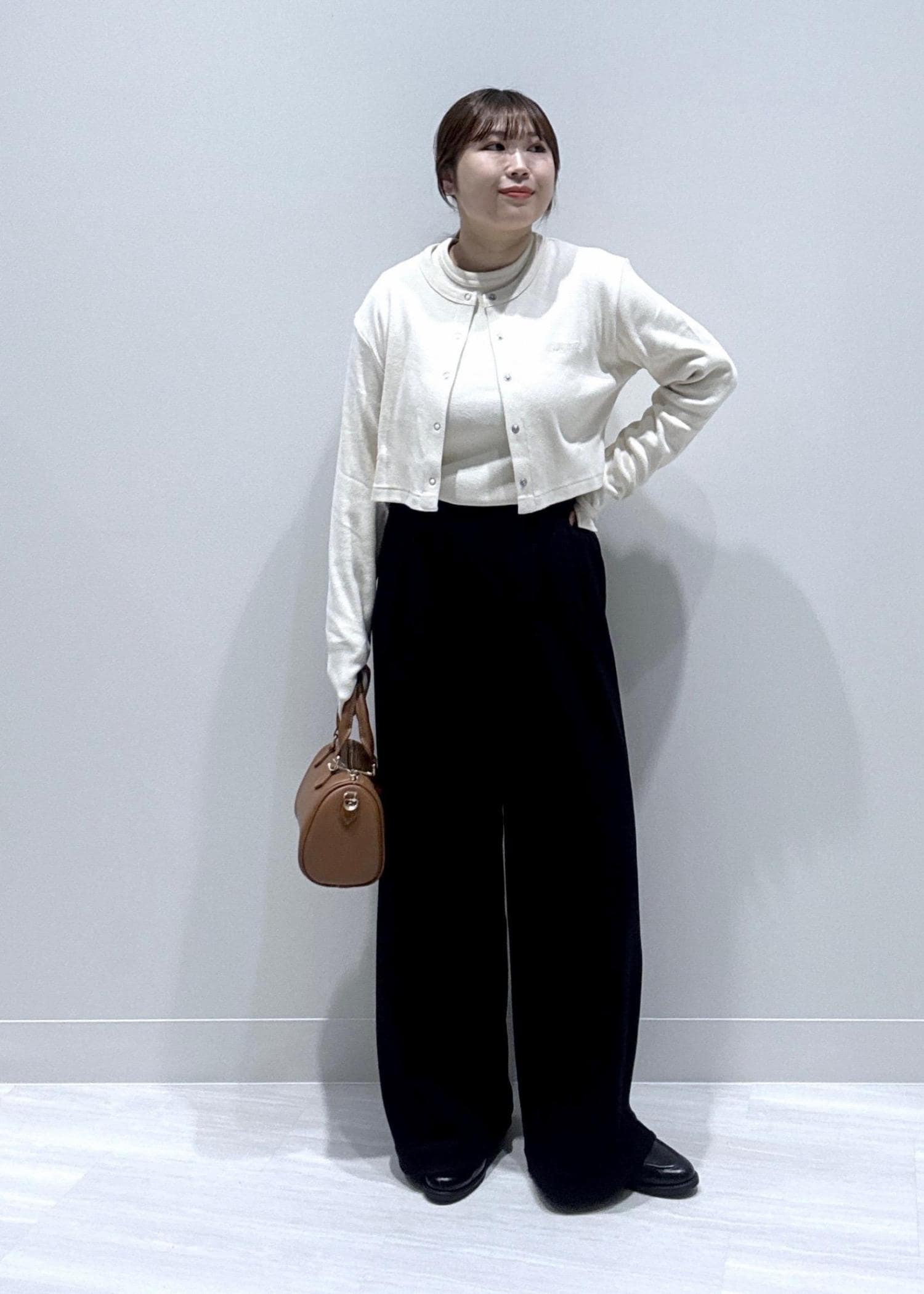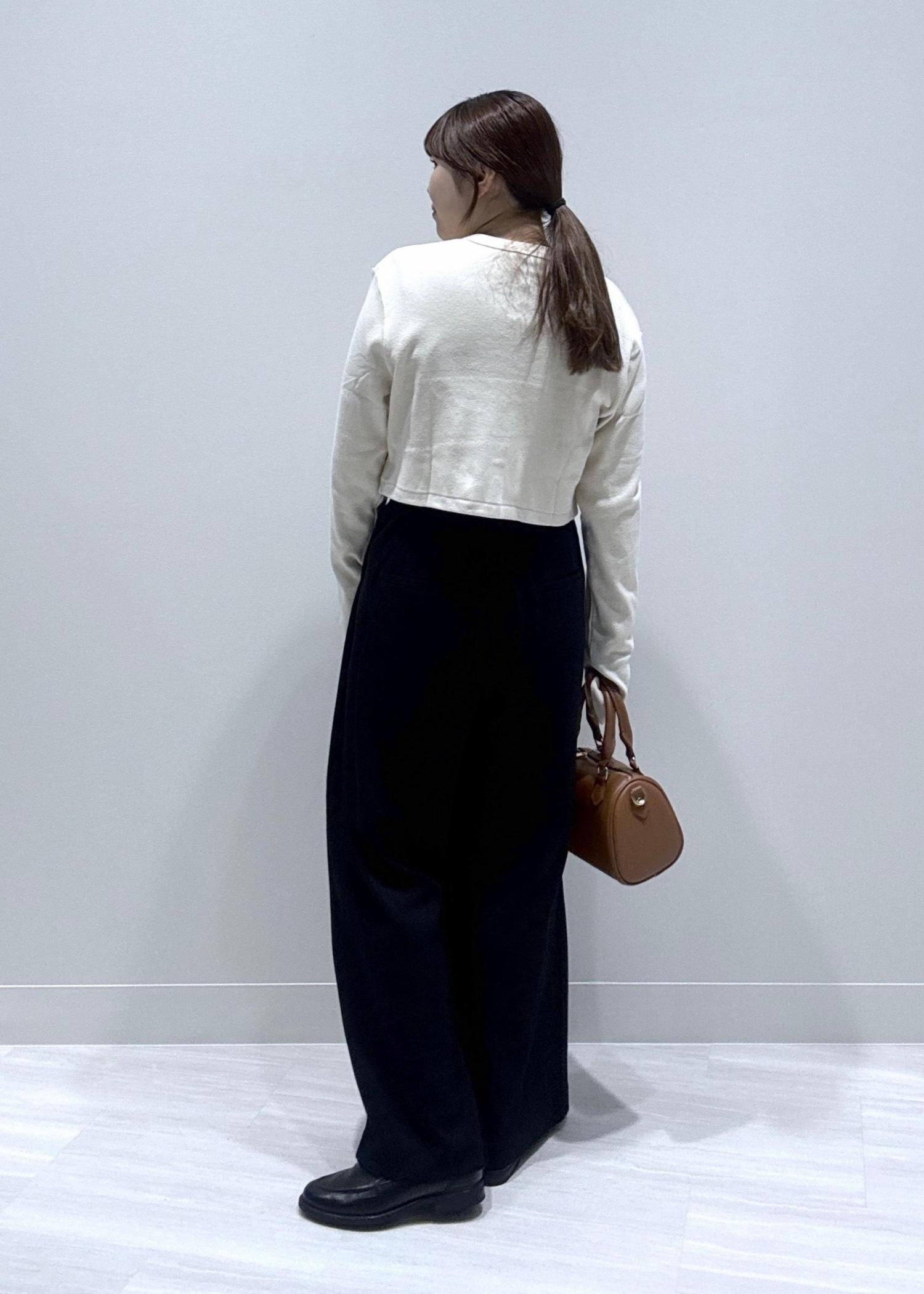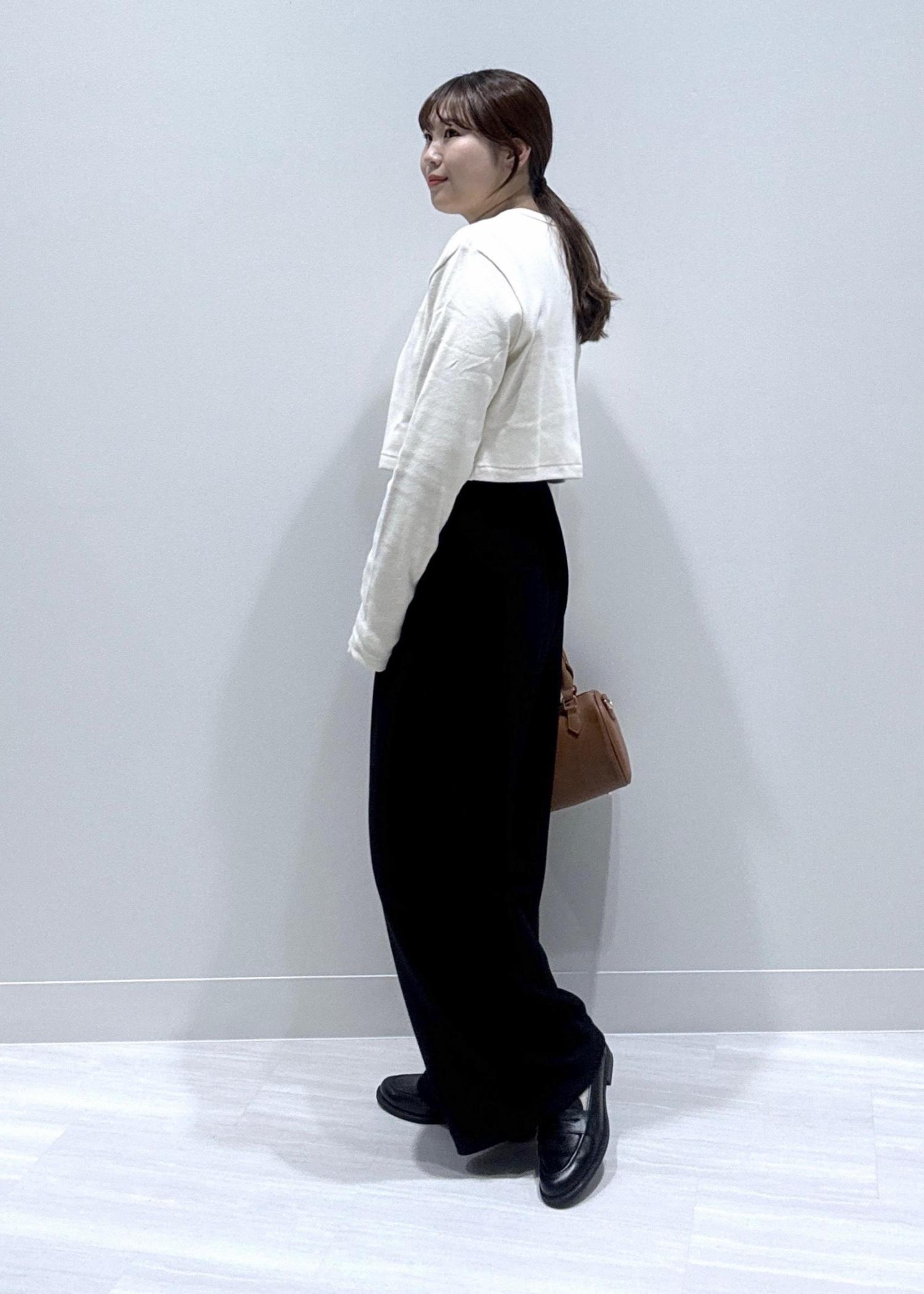 ドレープ感もあって高みえ抜群なフォルムワイドパンツと併せてフェミニンキレイめコーデに
