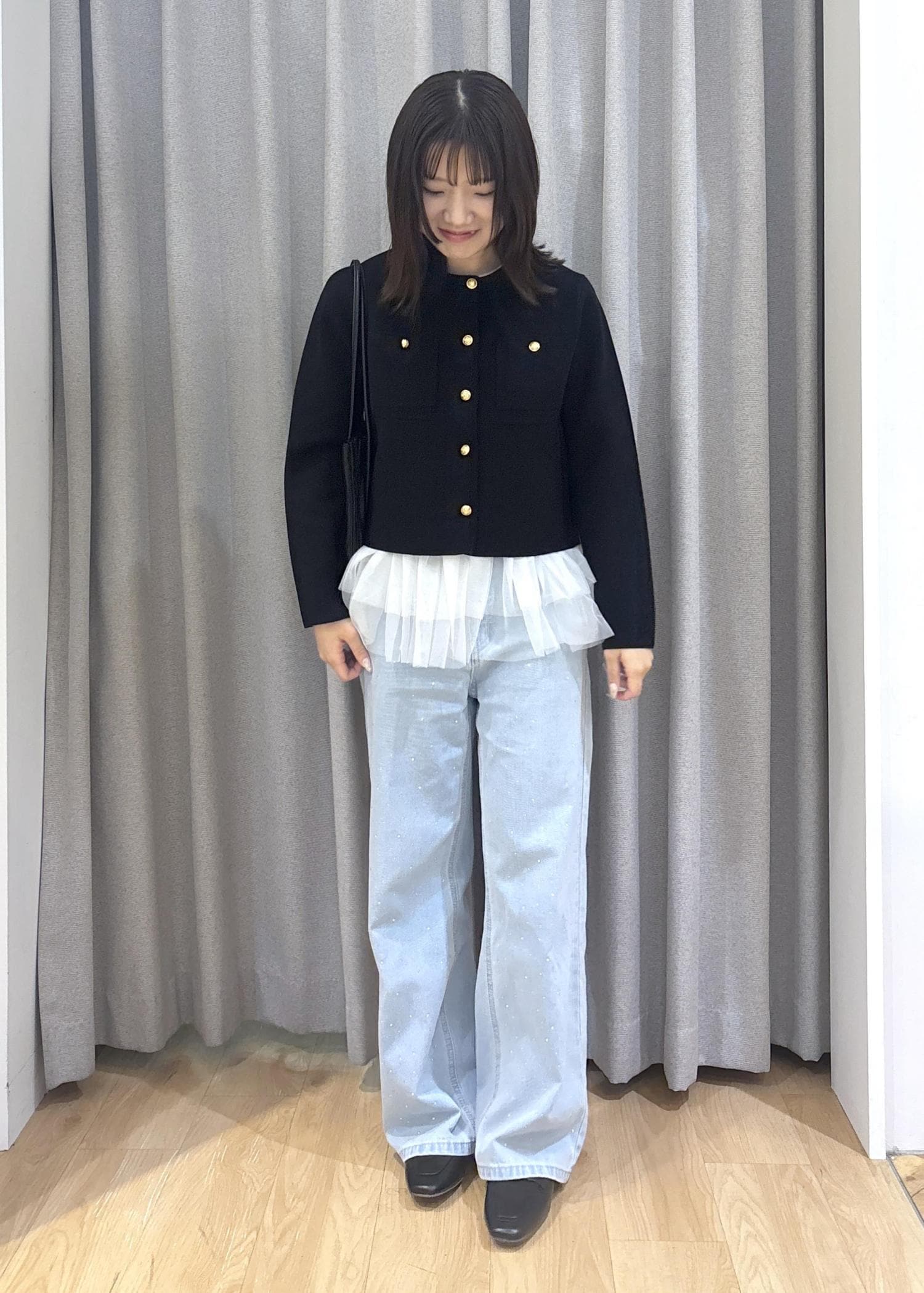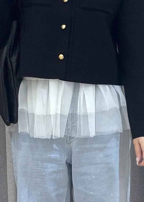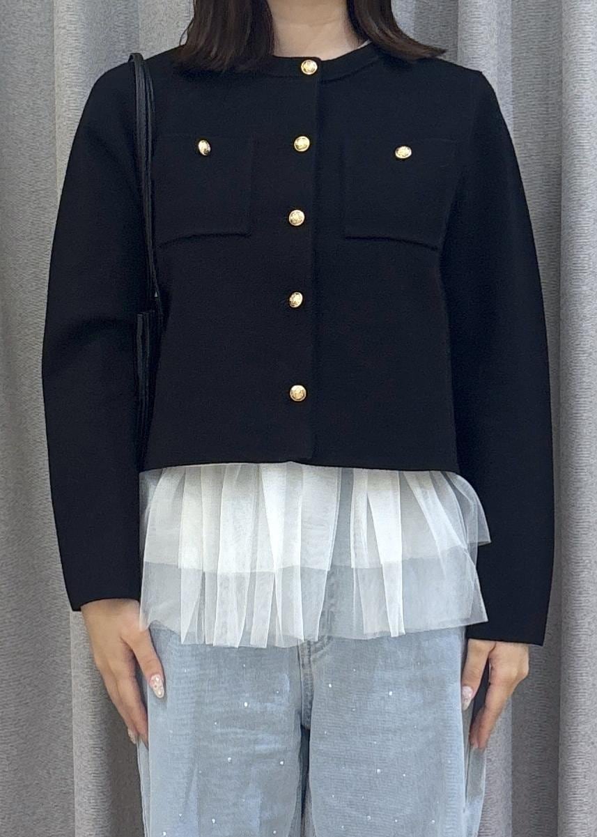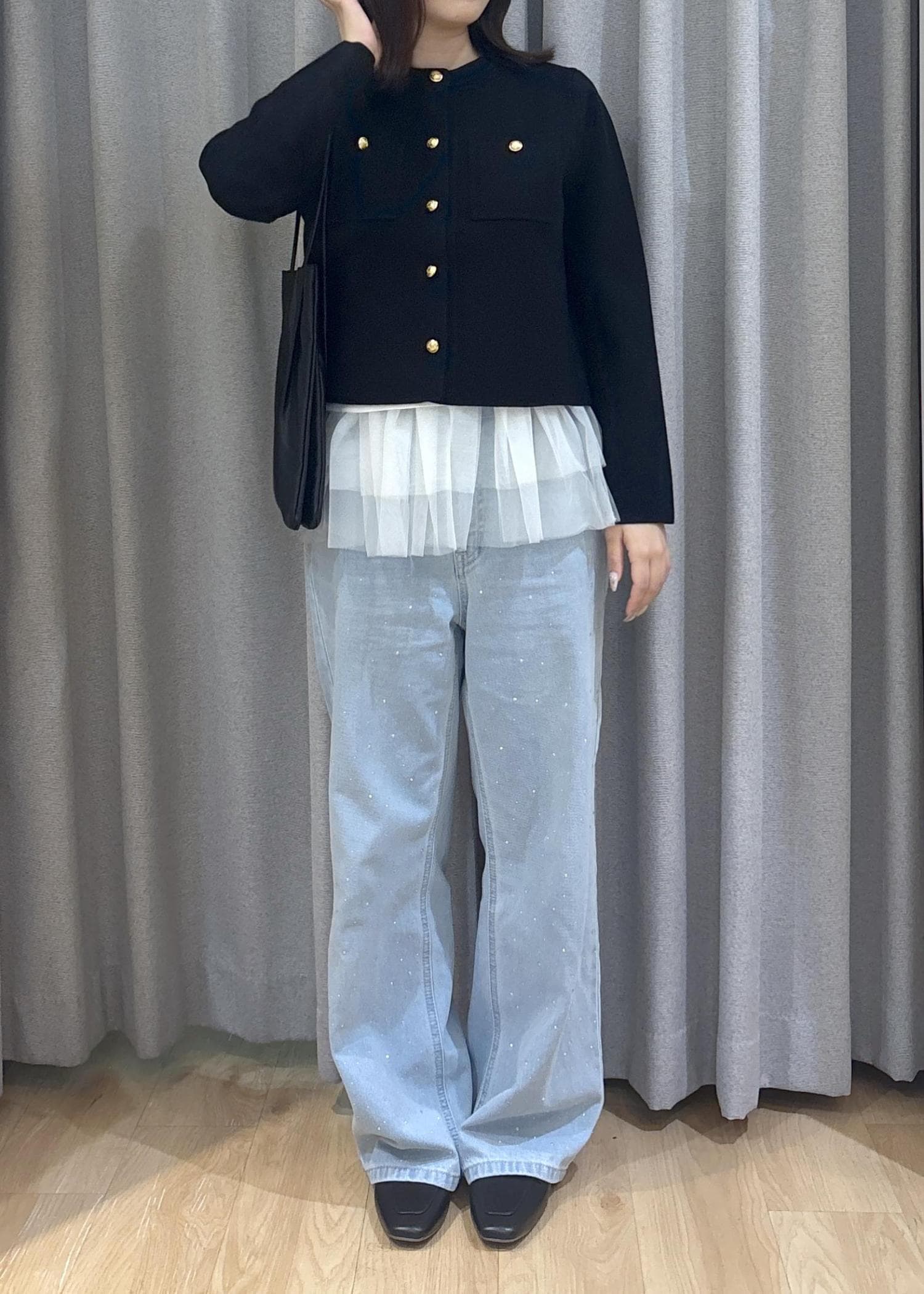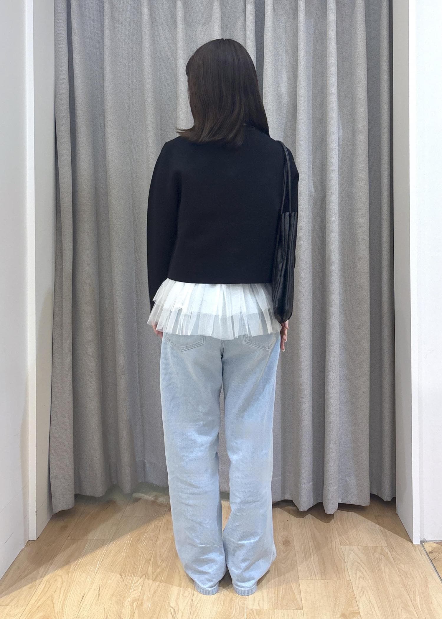 1枚着でもかわいいカーディガンにレイヤードでチュールを見せることで今年らしい着こなしになります⟡.*