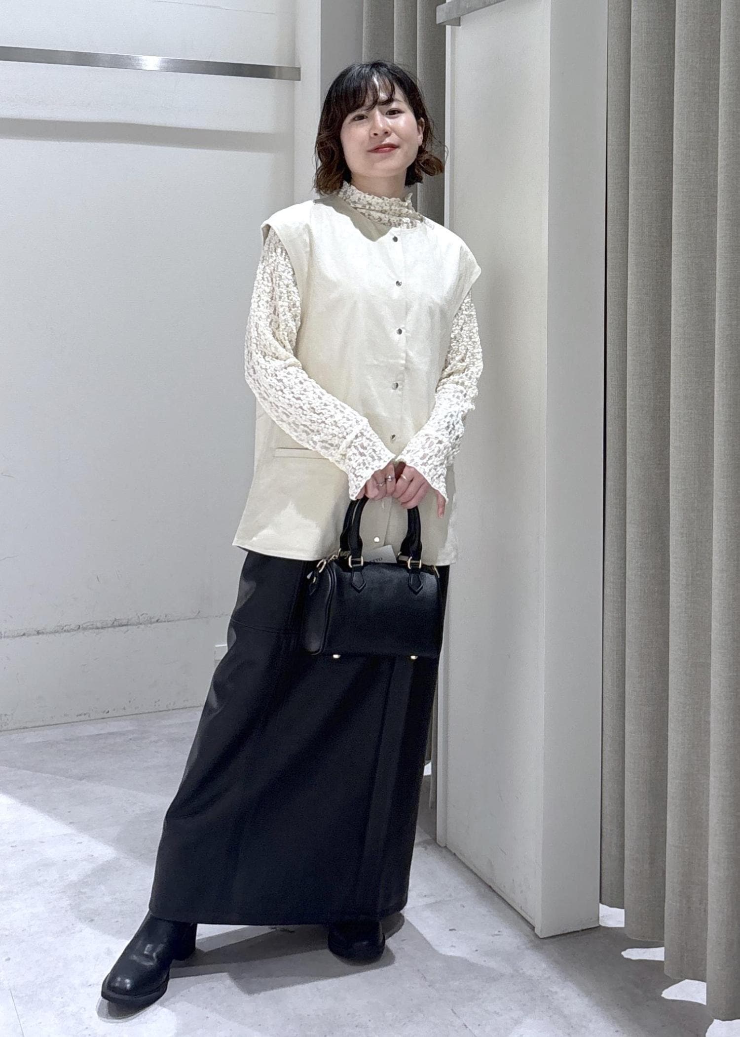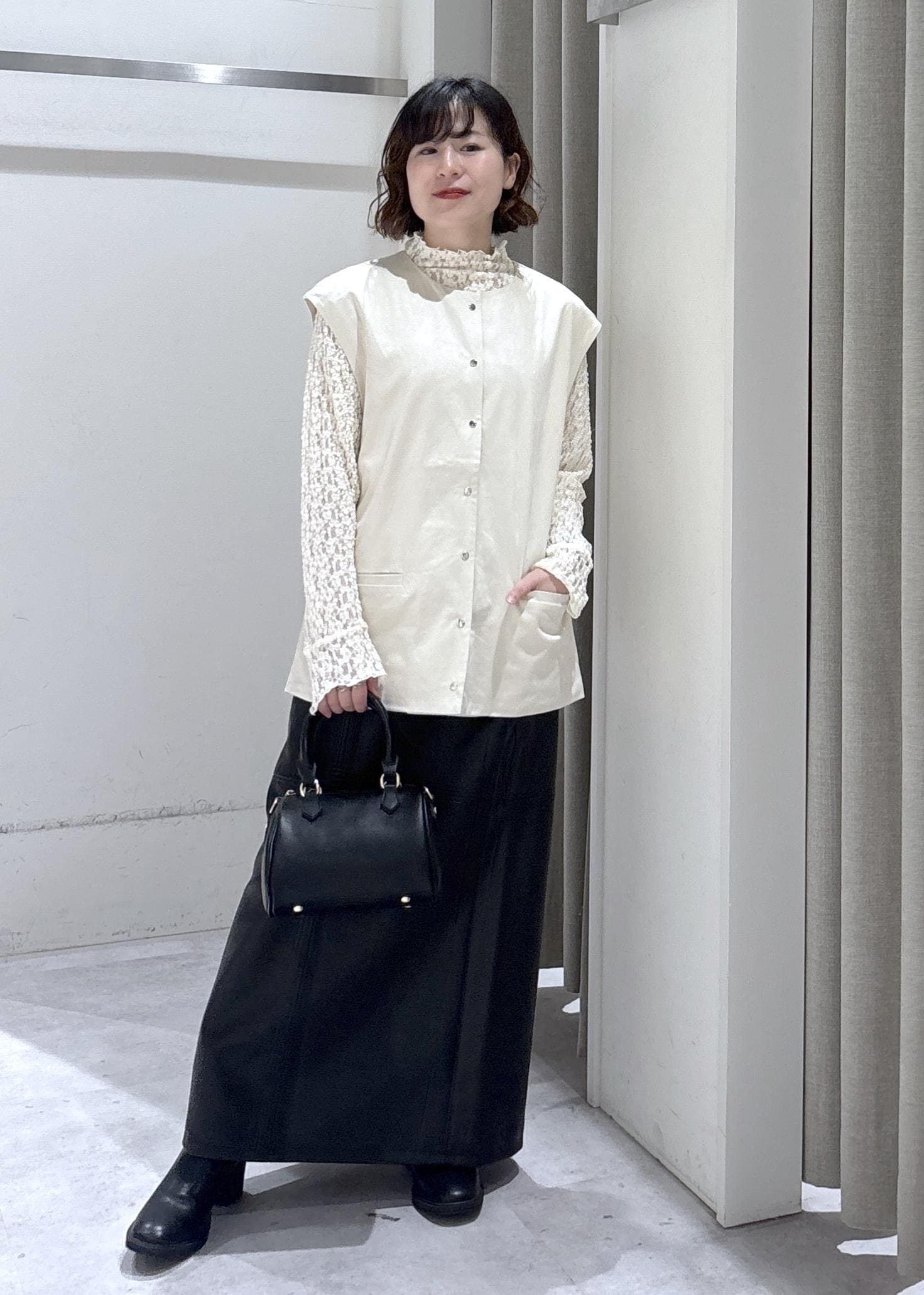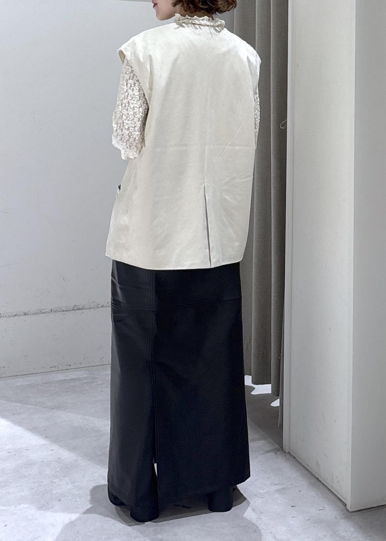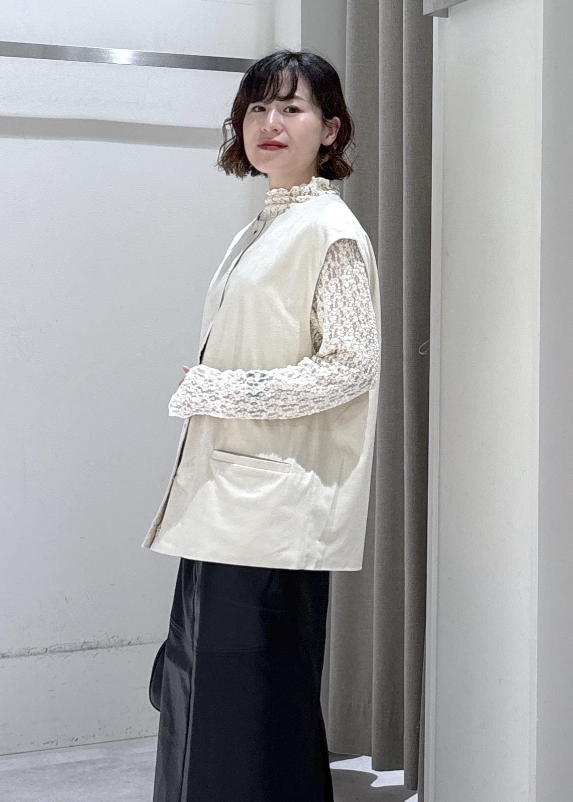 LE CERCLE par ropéフェイクスウェードライクベストオフホワイト / F¥3,036レビューゆったりめのサイズ感ですが、クタッと柔らかい生地で身体のラインを拾い過ぎません