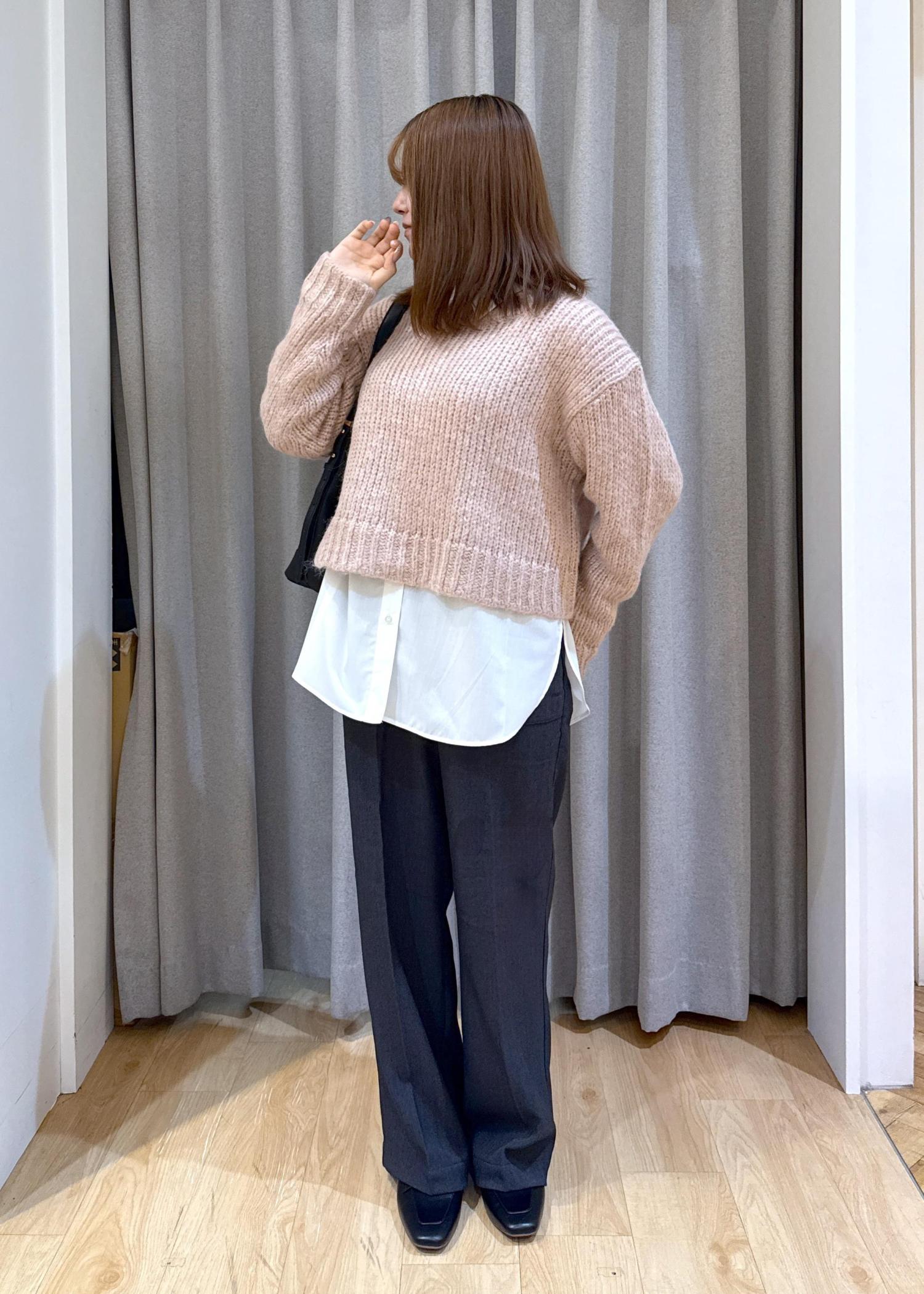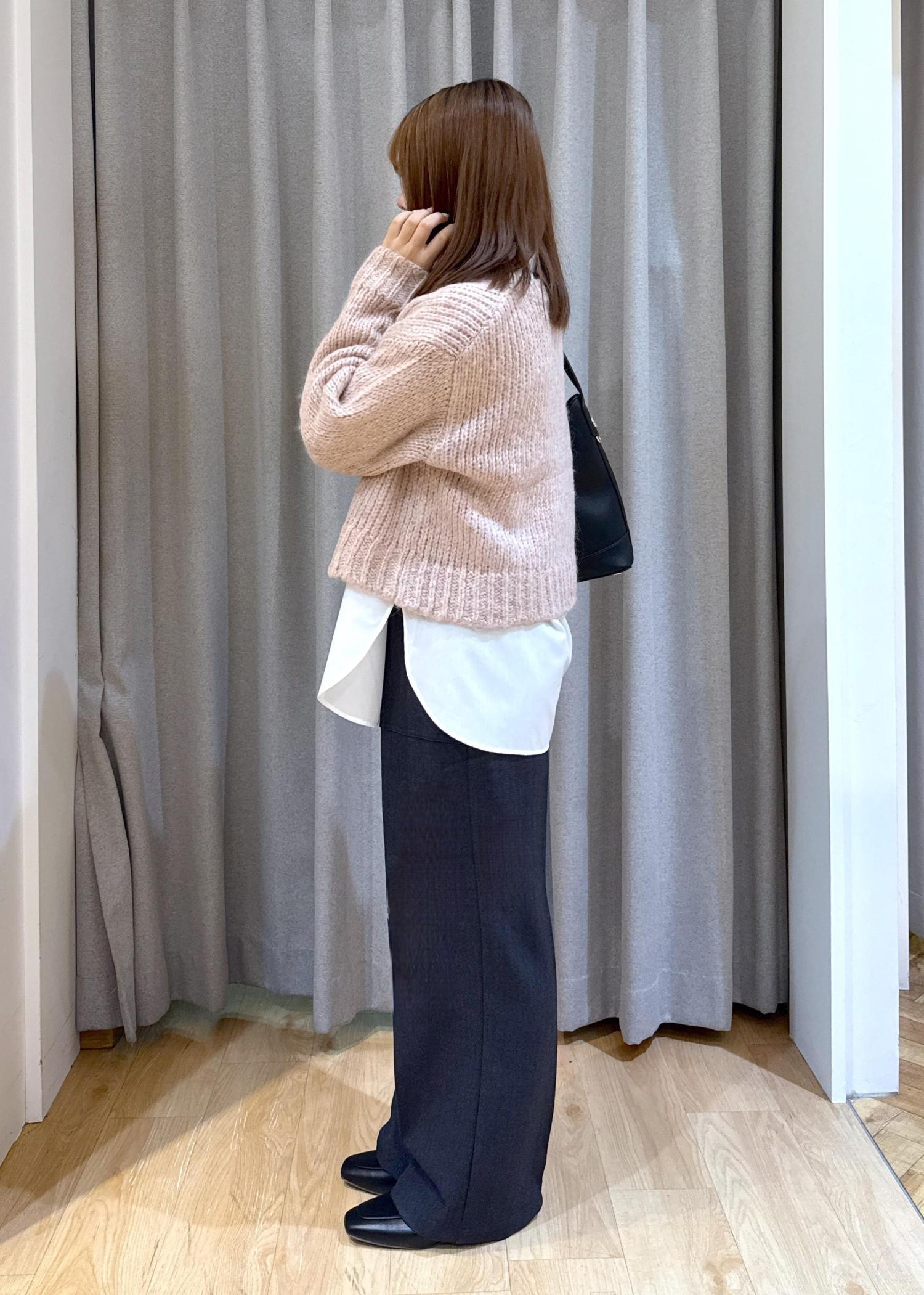 淡いピンクで可愛らしさを出しつつ白色シャツできちんと感をプラスしてやわらかい雰囲気の女性をイメージしました!