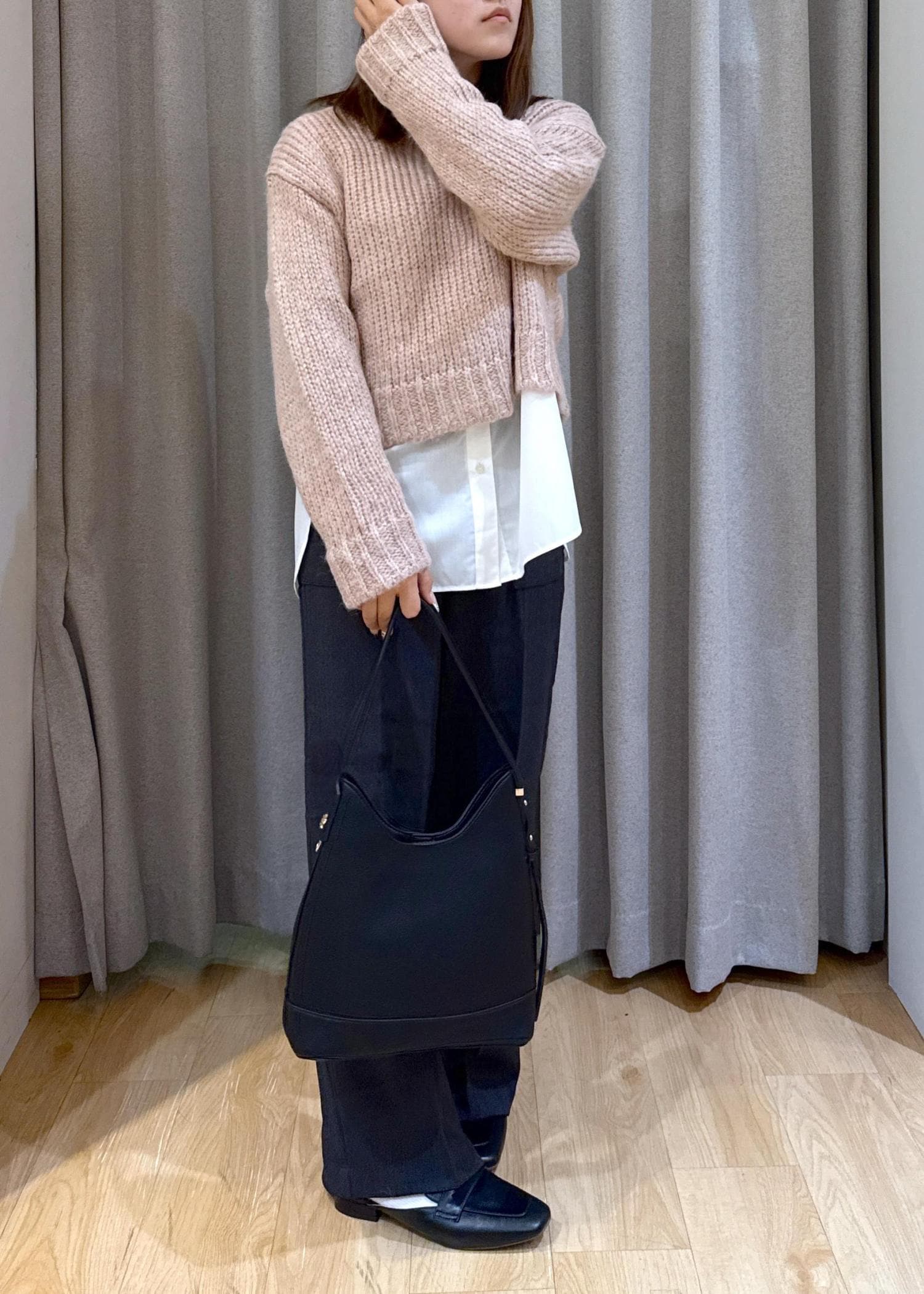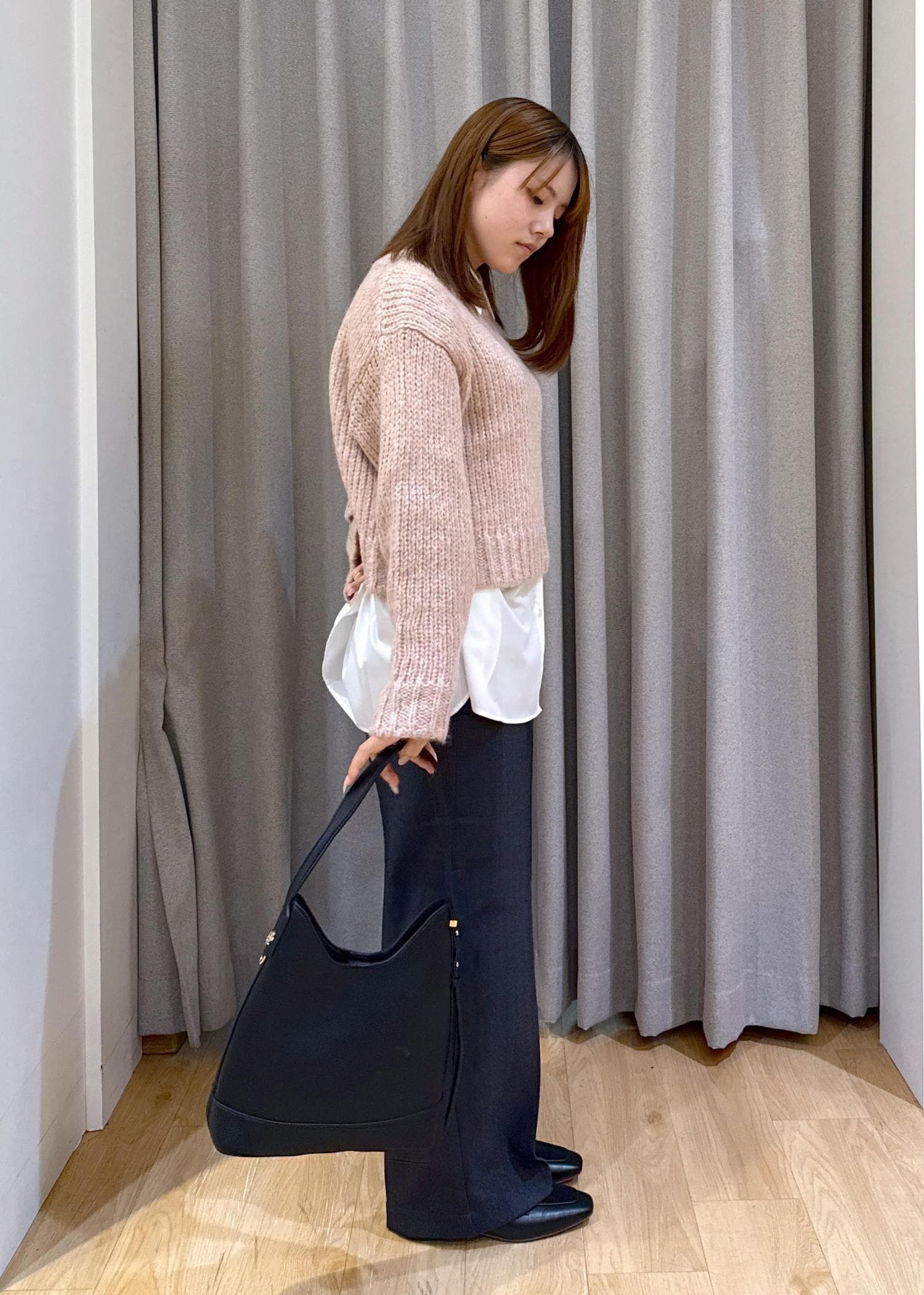 黒色のバッグと靴で締めているので甘すぎず着用ができます!