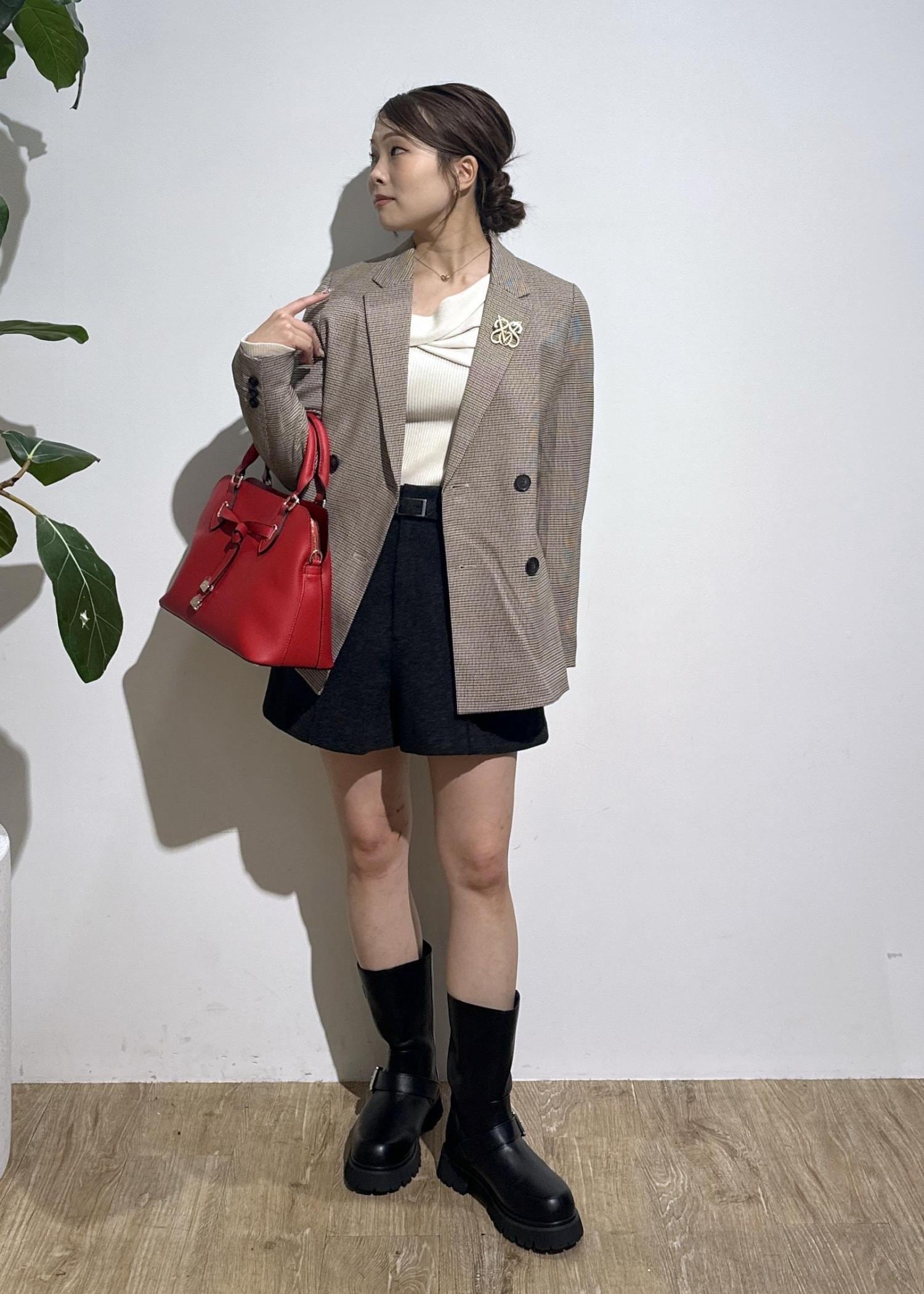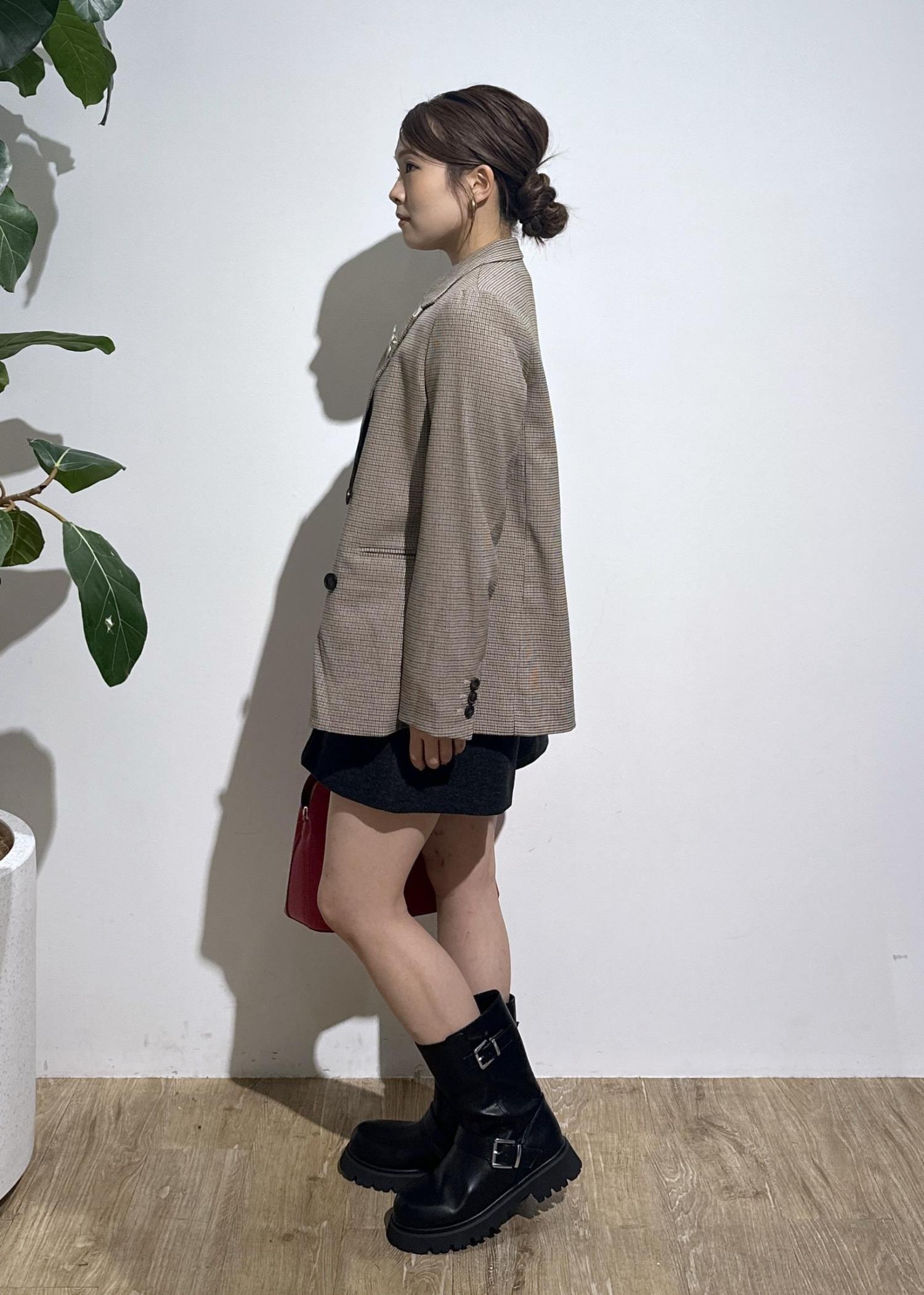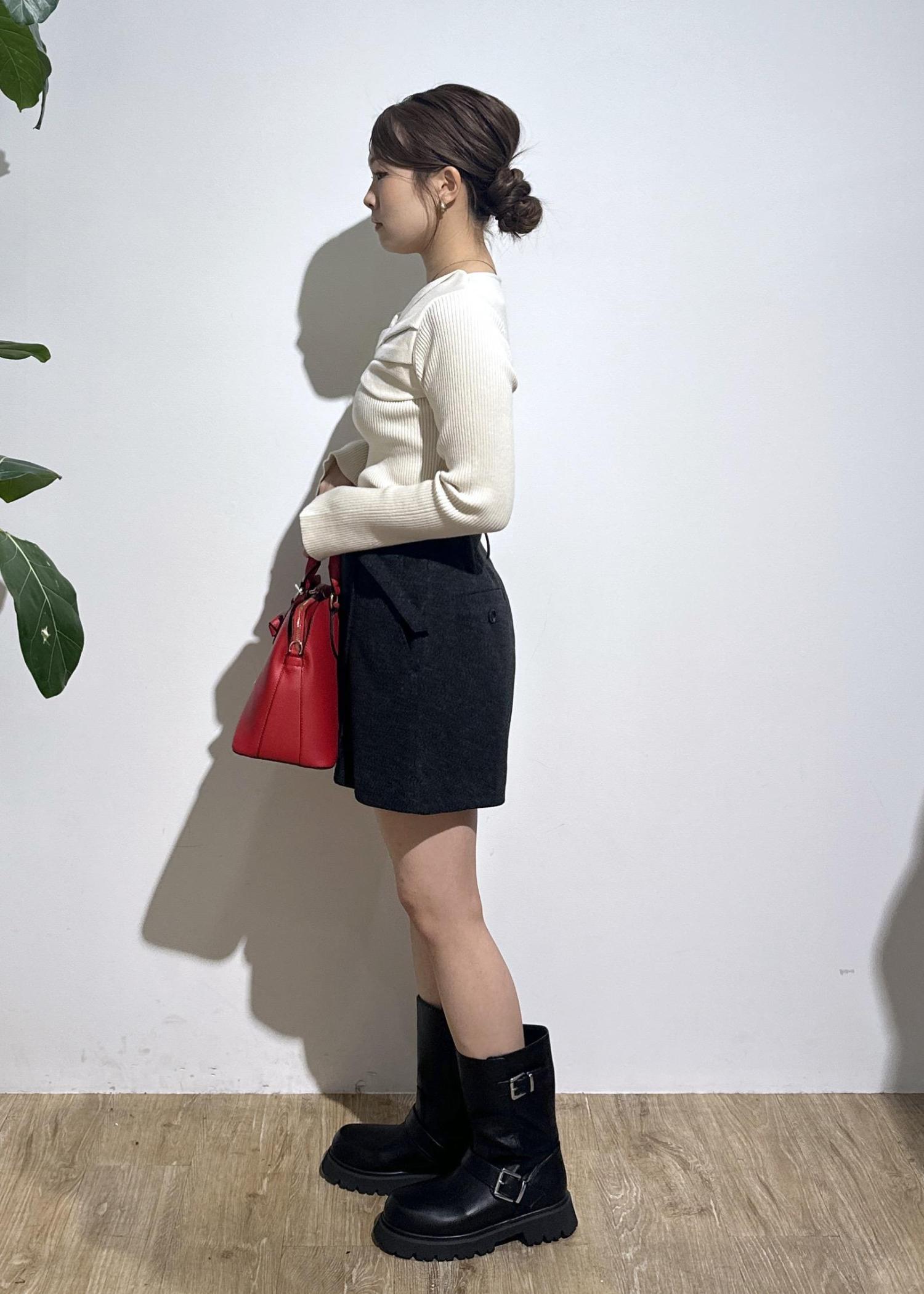 中にニットや厚手の物を着用してもごわつきにくいです。 -