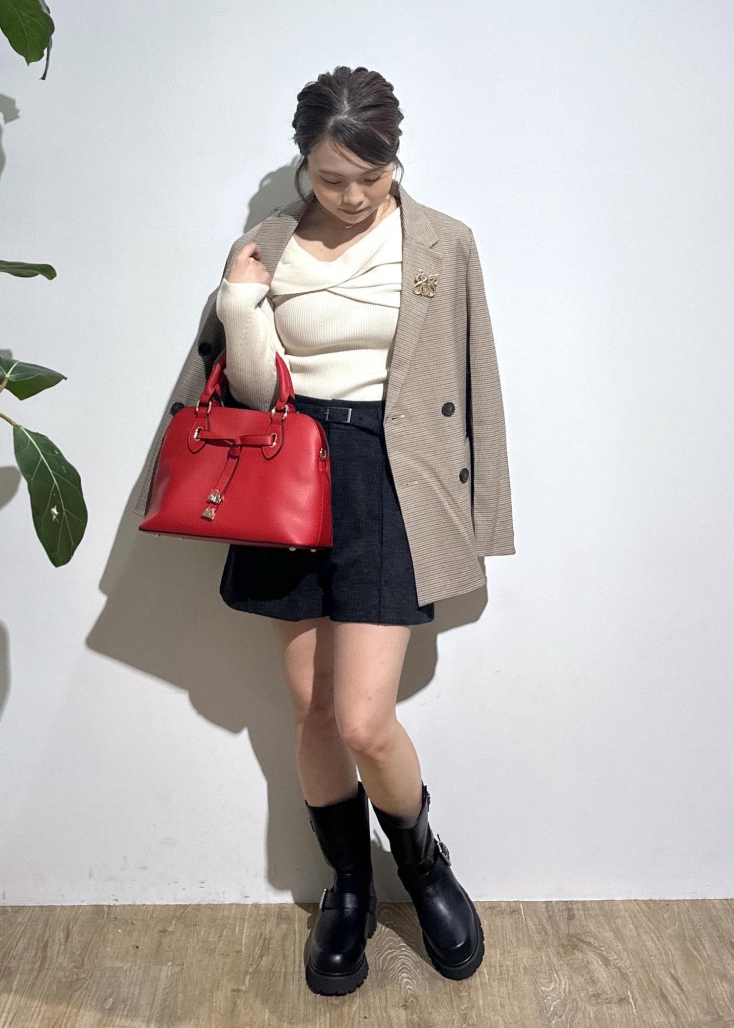 VISフロントタイ ブガッティ型ボストンバッグ/2WAYレッド / F¥7,909レビューカジュアルコーデ、キレイめコーデにも相性抜群です!