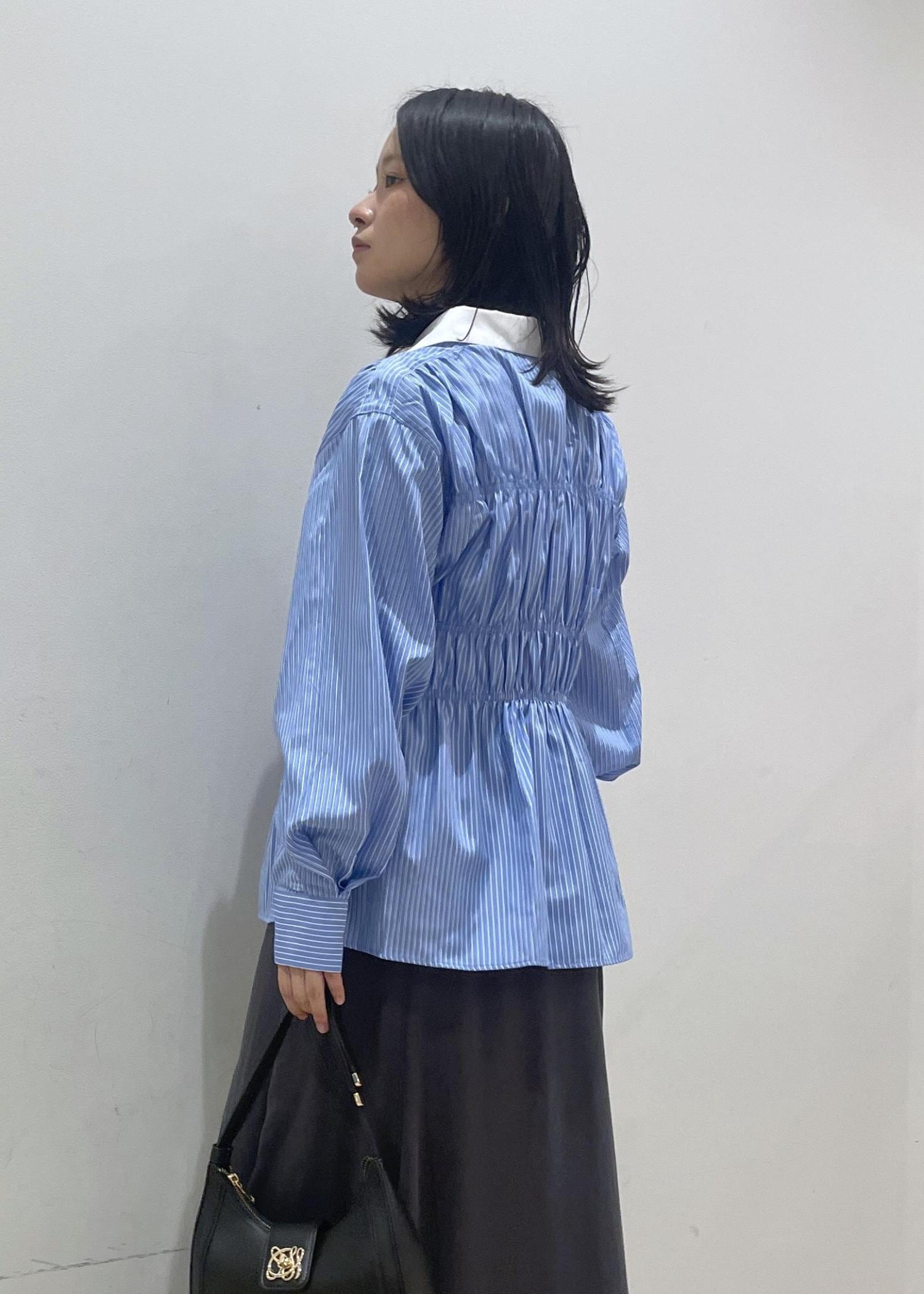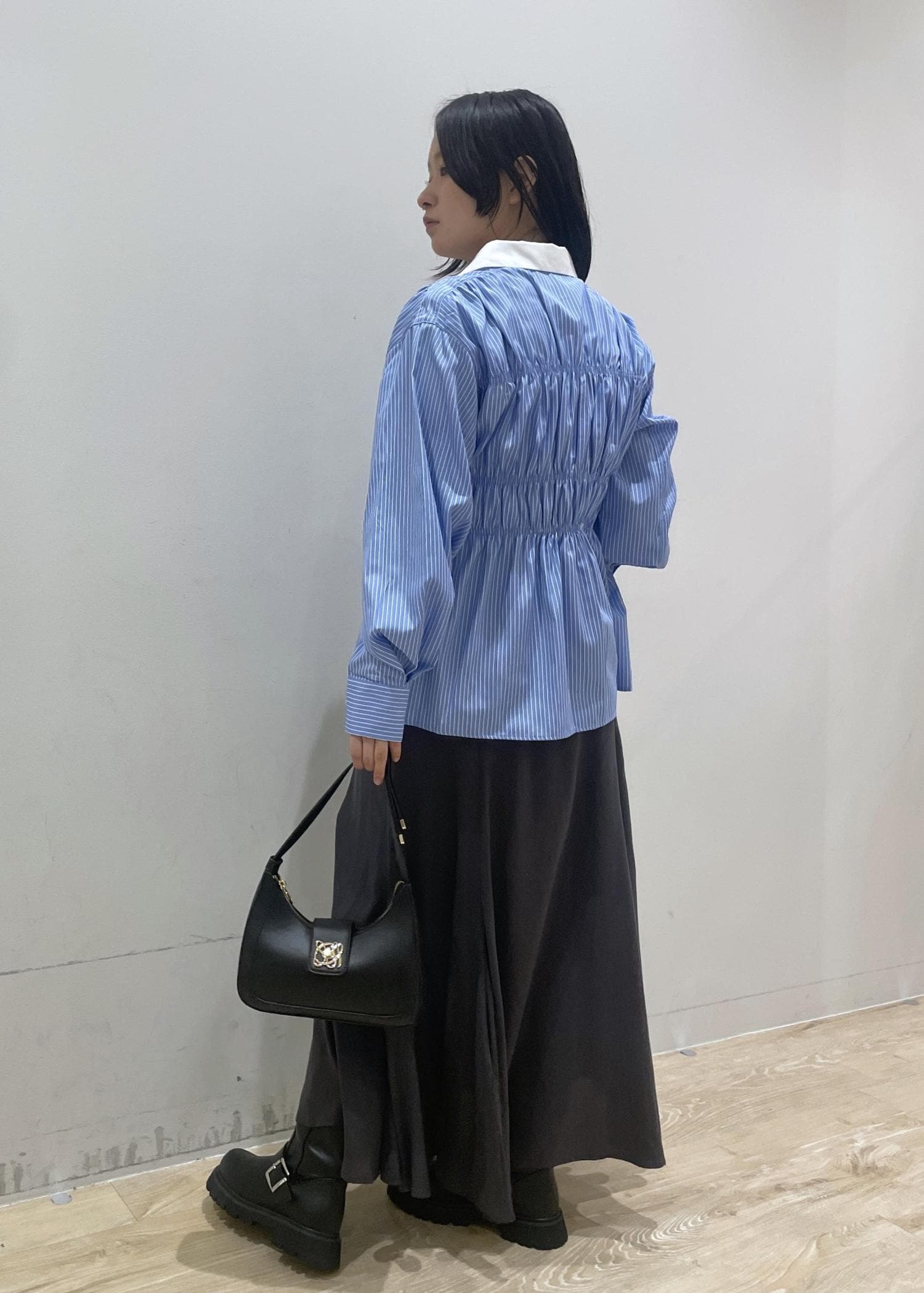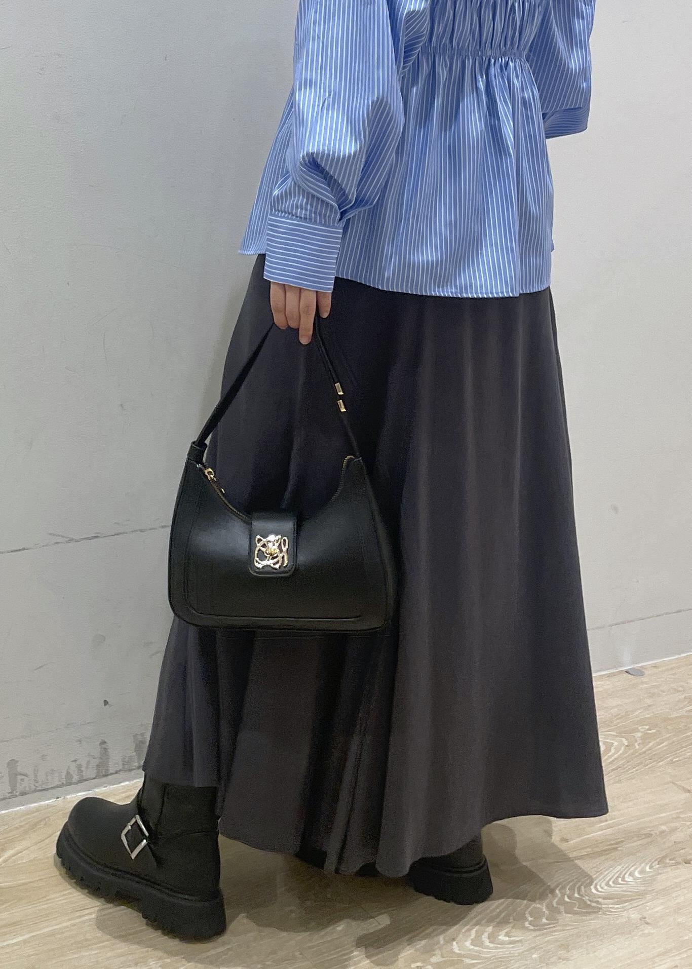 下半身のフレアスカートの落ち感と、上のシャツのボリューム感が相性抜群です!!