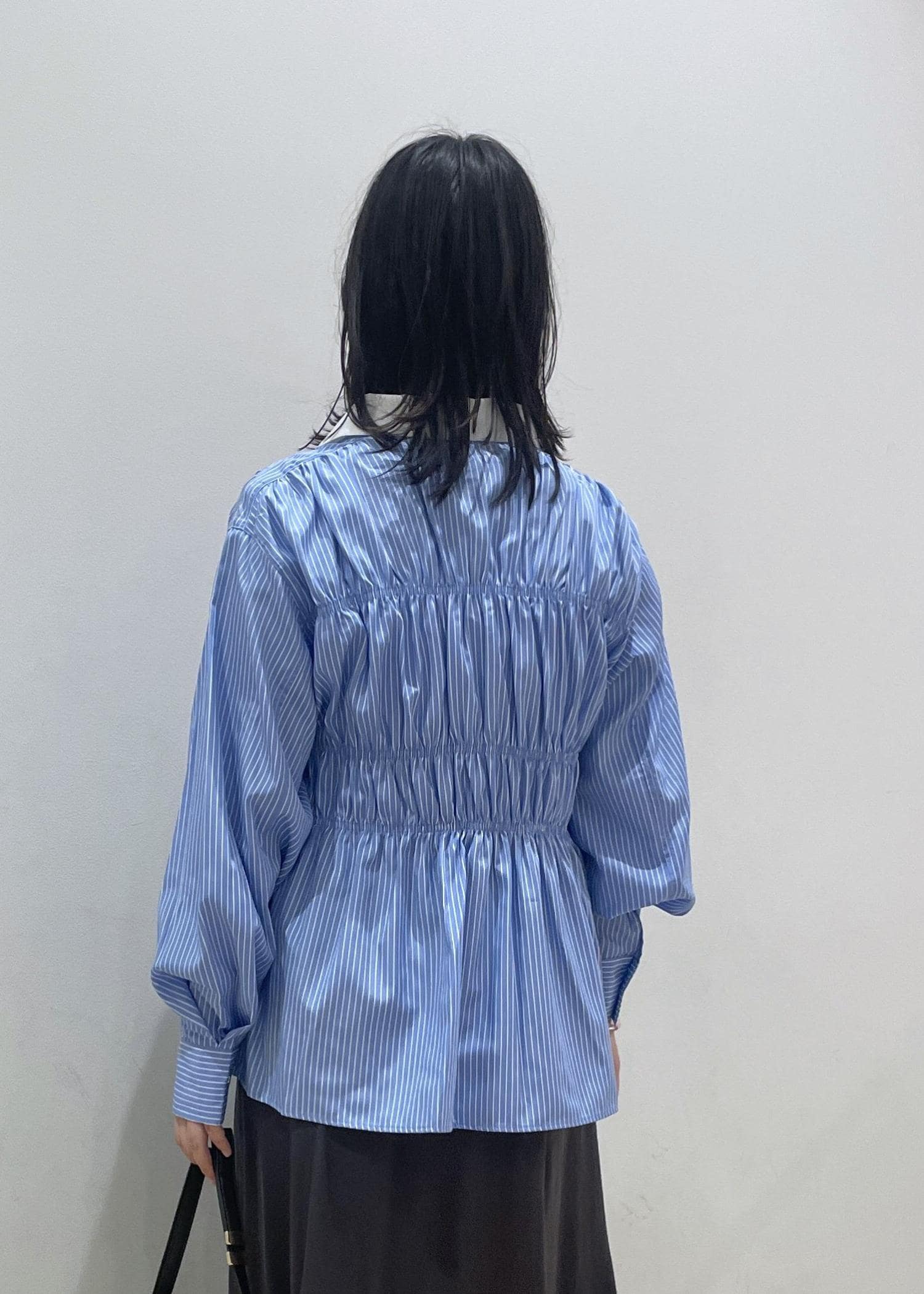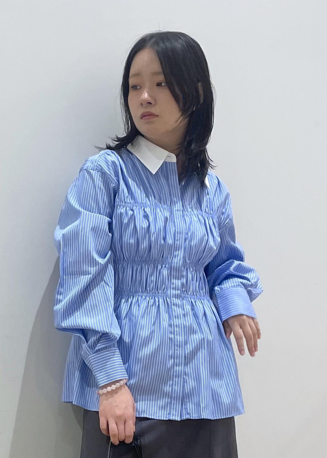 VISシャーリングデザインシャツブルー系 / F¥5,489レビュー明るいカラーで顔まわりがパッと華やかになります!!