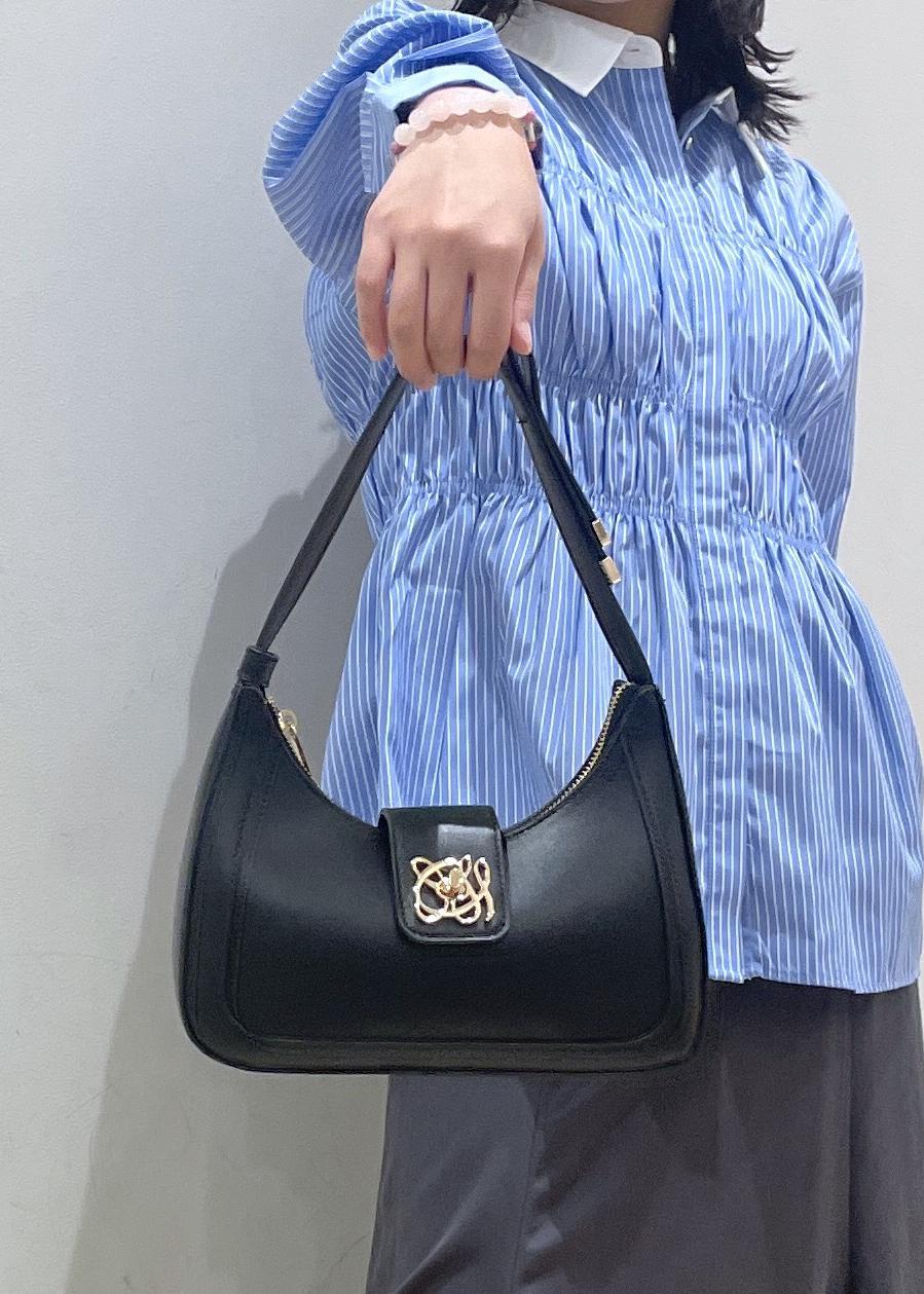 VIS【新色追加】【180℃美人見え】ハンドルリボンワンショルダーバッグブラック / F¥5,929レビューコンパクトなのに金具が効いていて、全体を引き締めてくれます!!