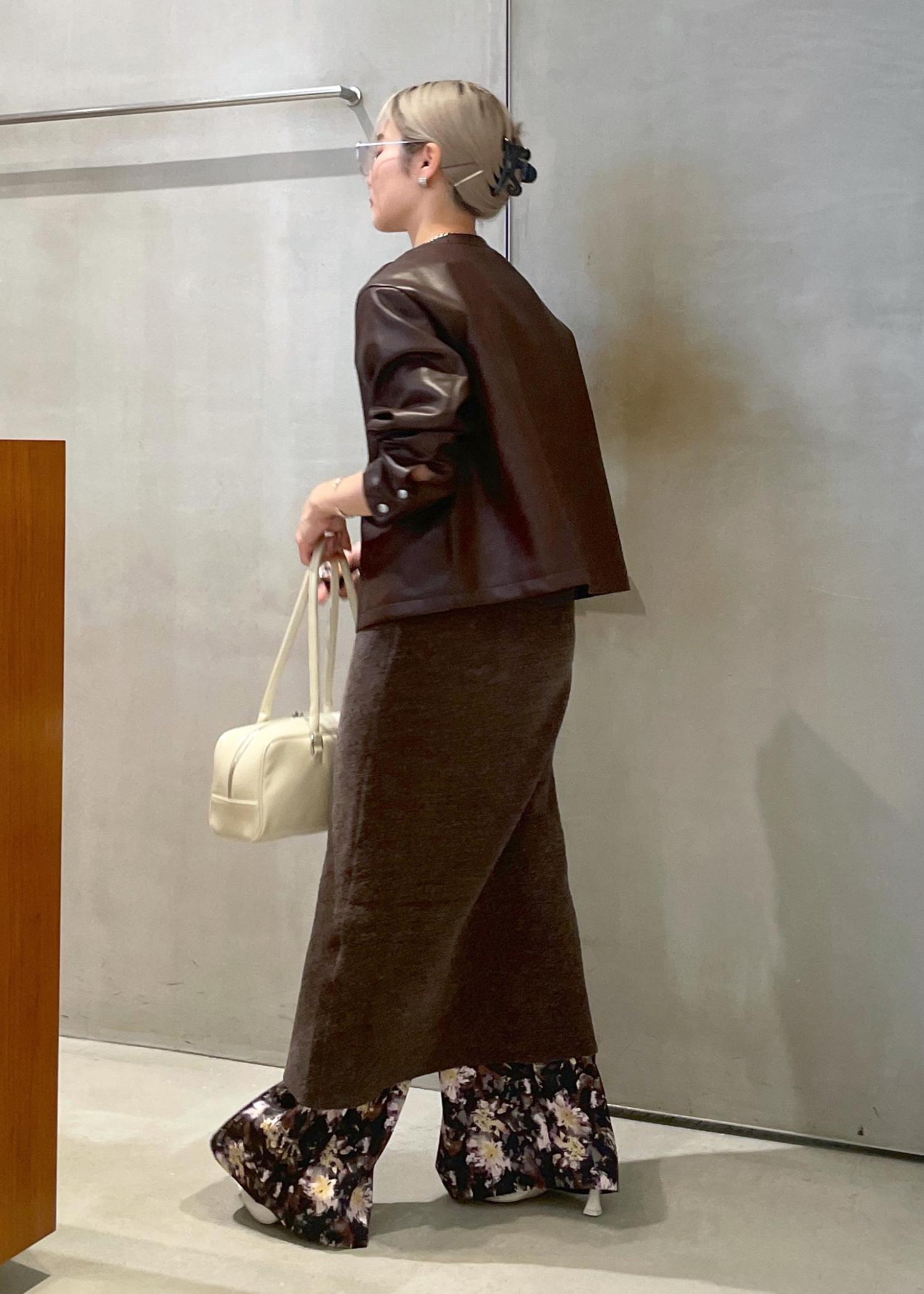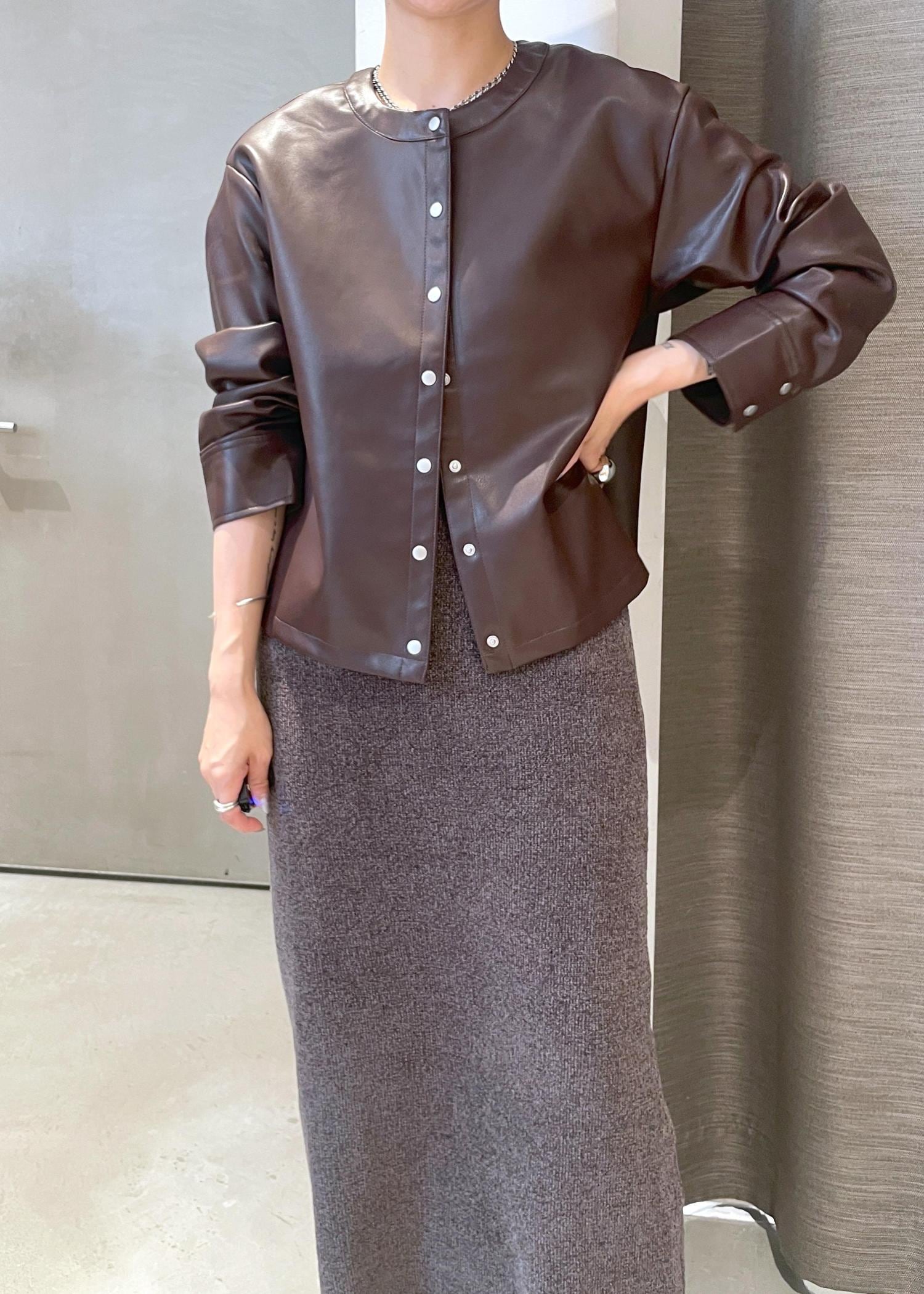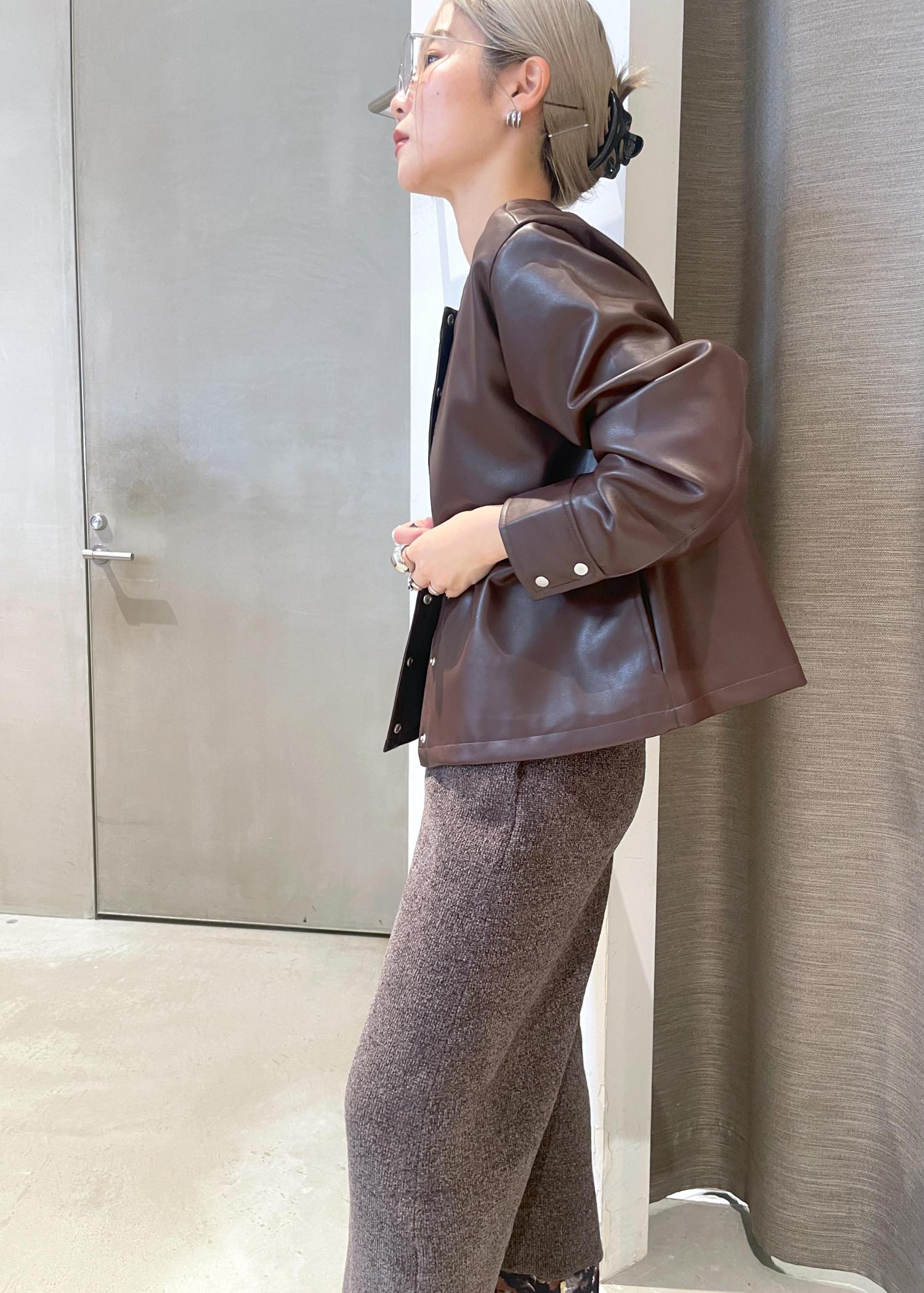 LE CERCLE par ropéシンセティックレザーブルゾン/セットアップ対応ダークブラウン / F¥8,470レビュー十分中に着込む事ができるややルーズなサイズ感のレザージャケット。柔らかく重みがない仕様。ショート丈がコーディネートのバランスが取りやすくなります。