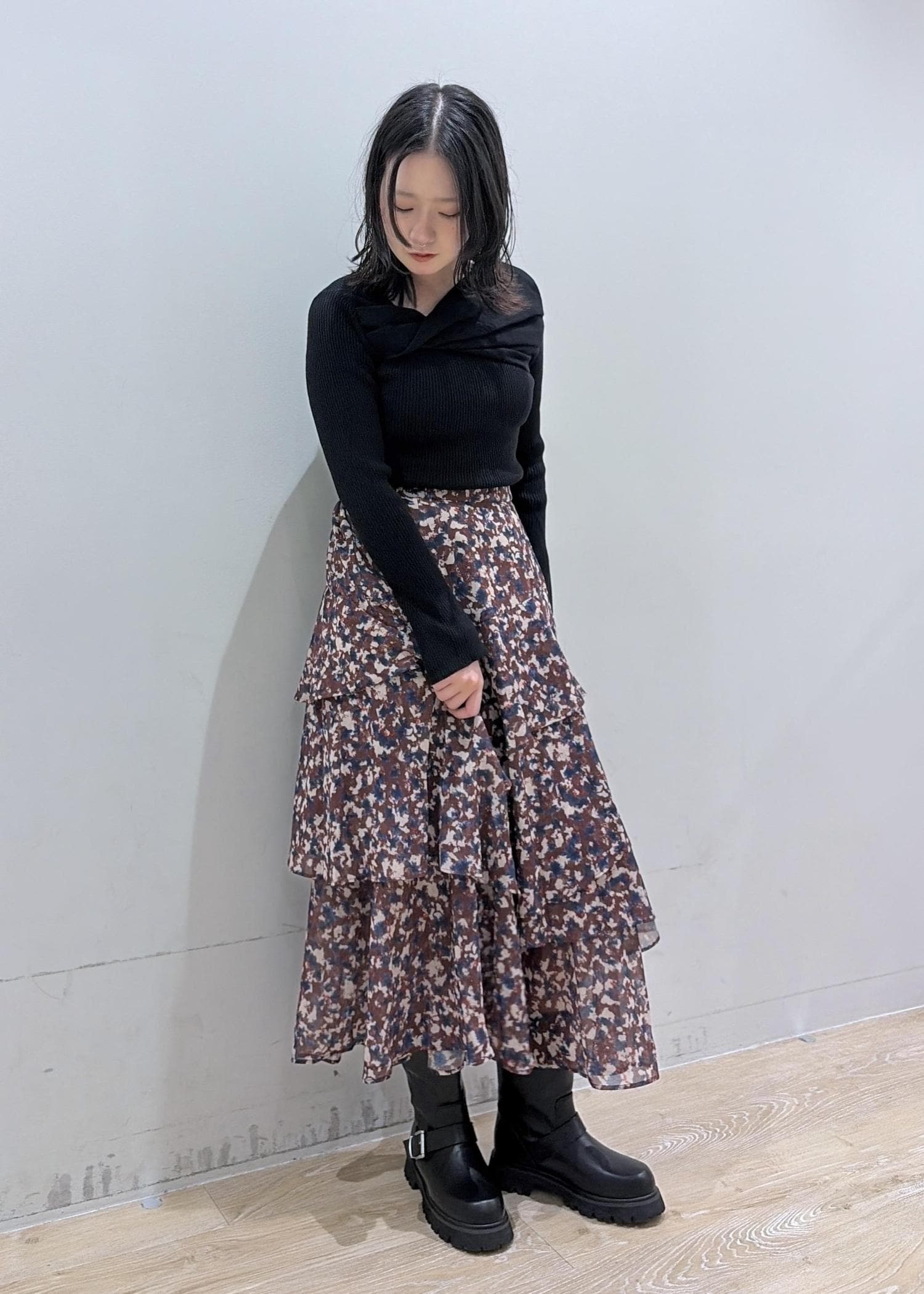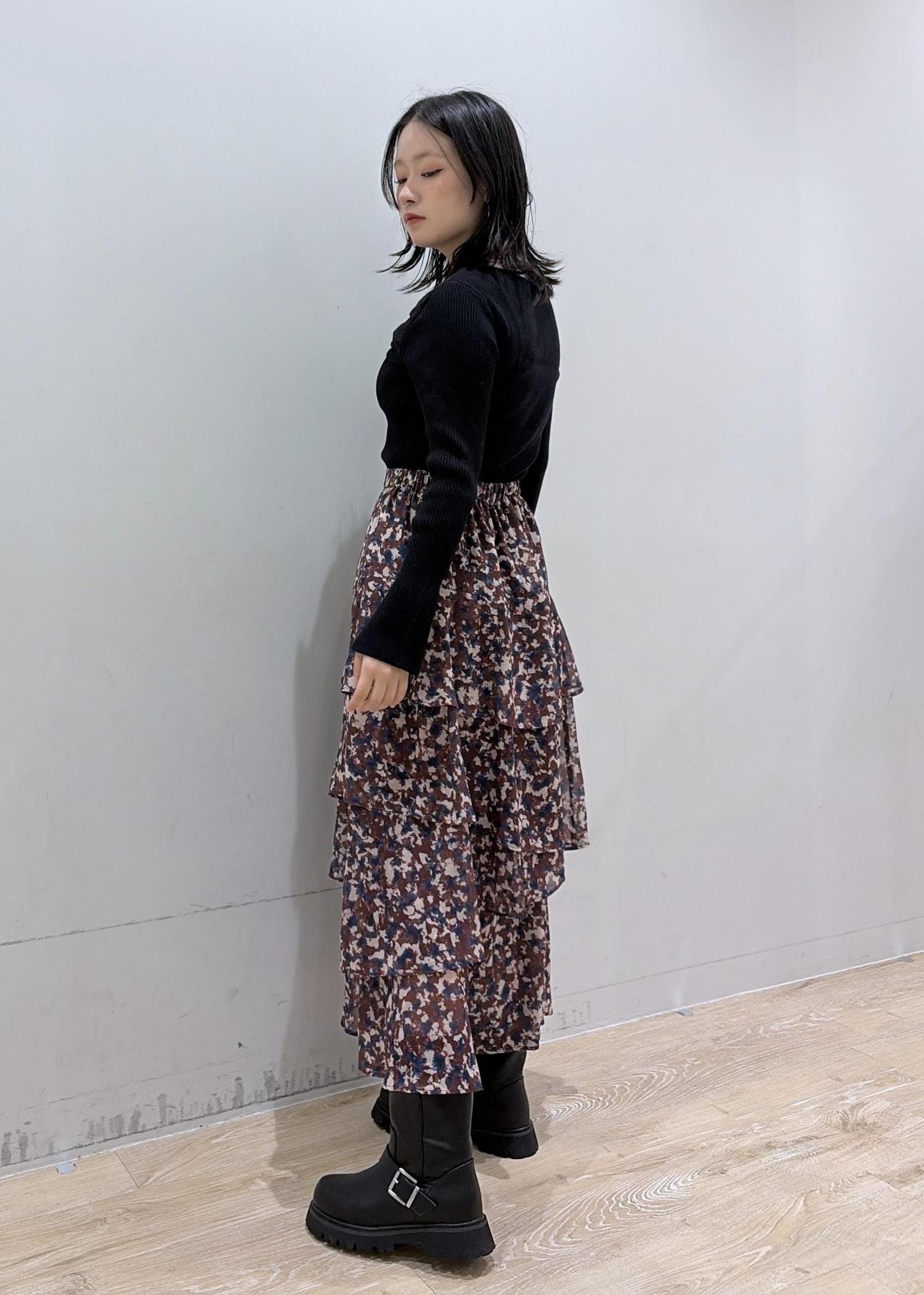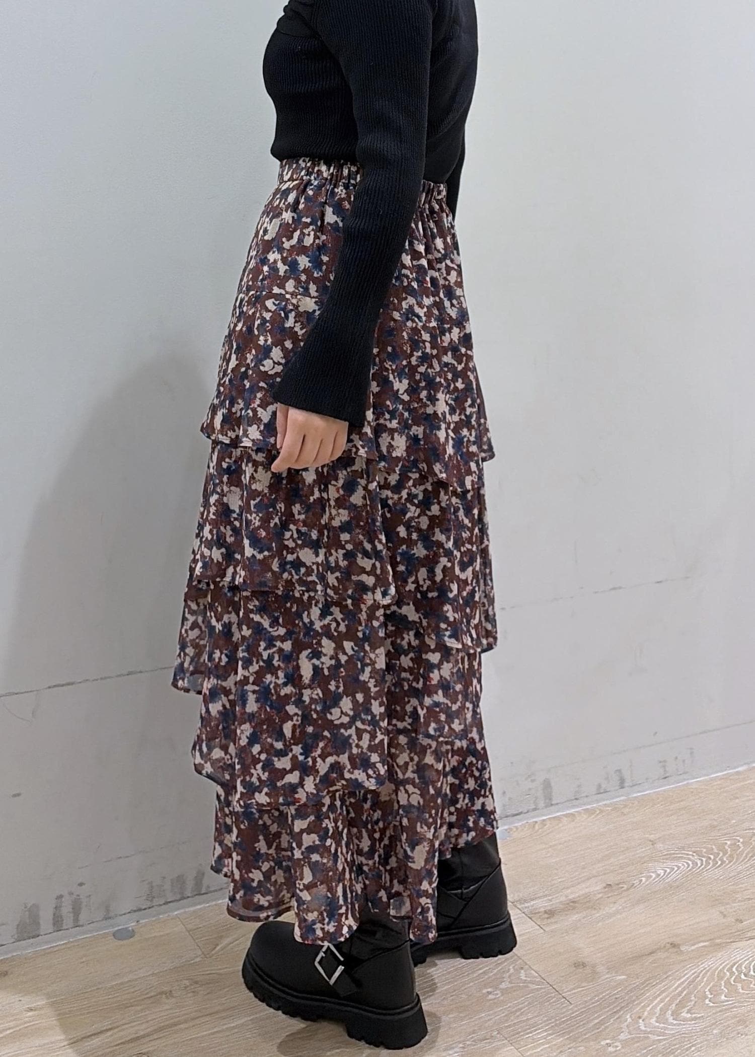 VIS花柄アソート楊柳ティアードスカートブラウン系 / F¥4,613レビュー動くたびに揺れるティアードデザインが華やかな印象にしてくれます!