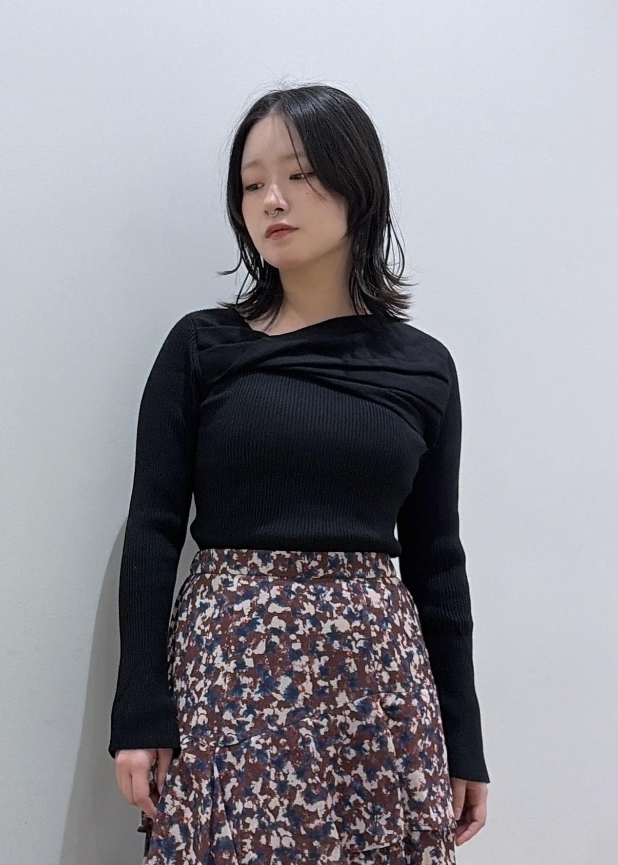 VISアシメねじれデザインリブニットブラック / F¥5,489レビューコンパクトなシルエットでスタイルアップ効果抜群です!!