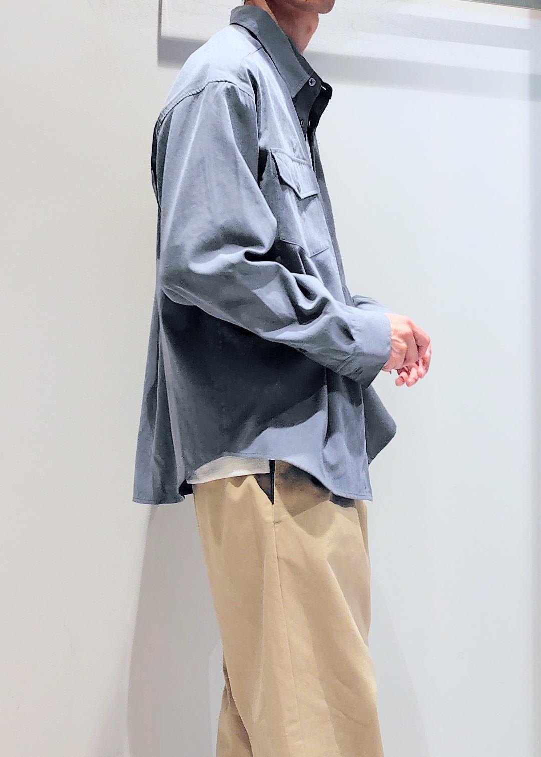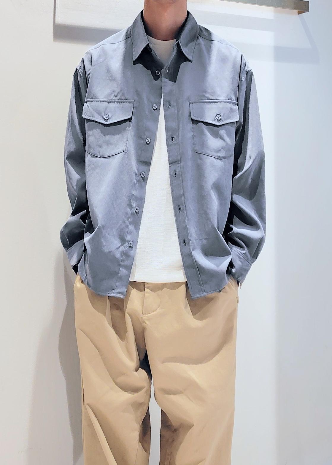 微起毛加工されたピーチスキン素材で秋らしい印象。軽い素材感なのでロングシーズン着用可能です。