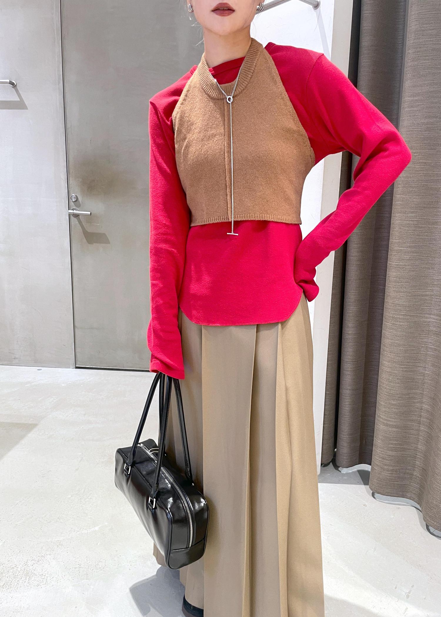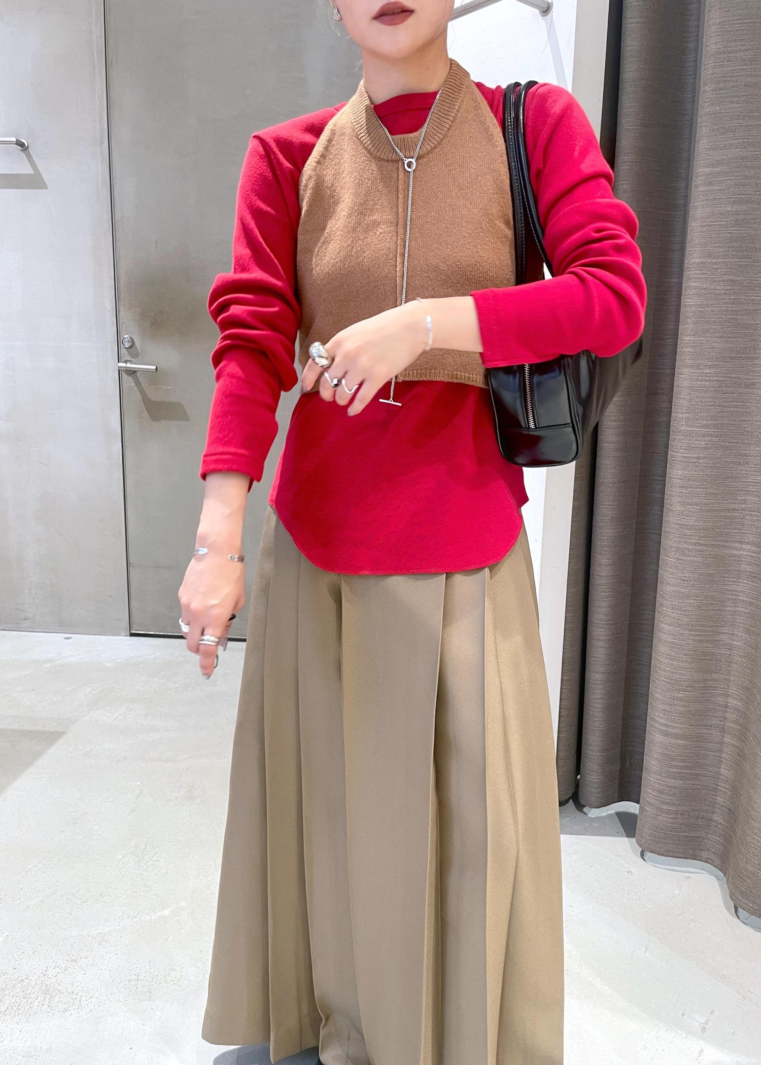 レッド系のカラーは、青みがあるカラーで深みがある為、肌色に馴染みやすく特にブルベにおすすめな色合いです。袖丈、裾丈はやや長くコンパクトな見た目でもルーズ感もあり窮屈に感じません。 -