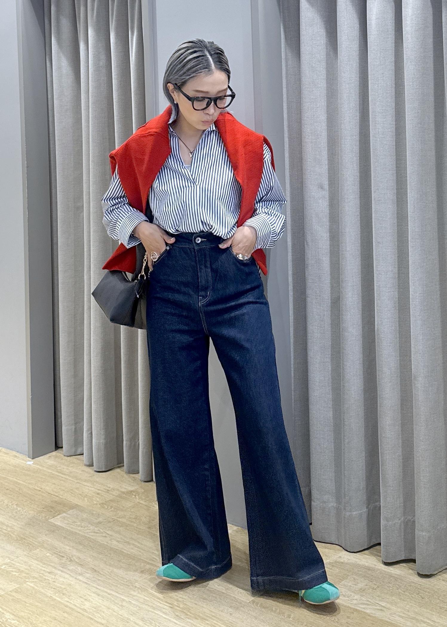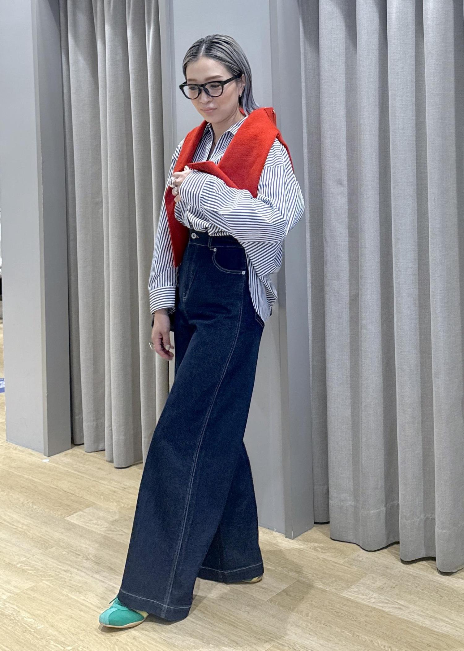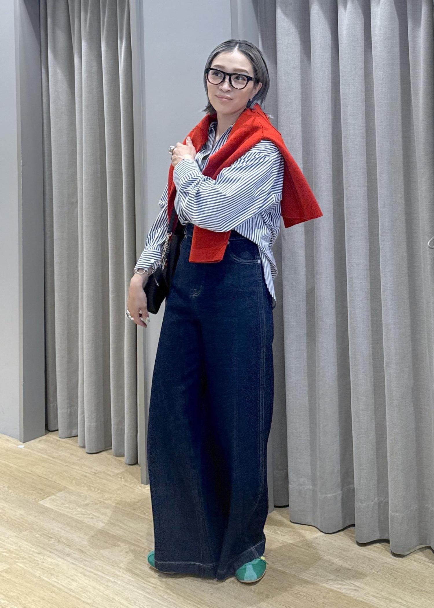 ぽっこりお腹を塞いでくれるバギーパンツ型のデニム。