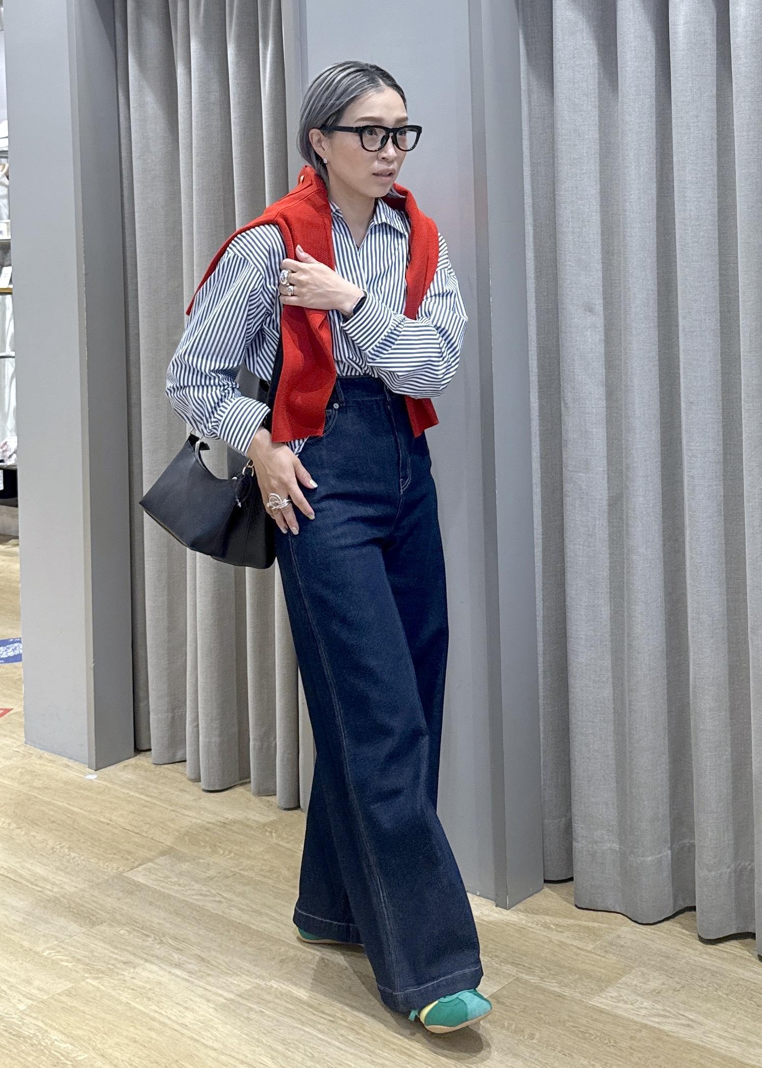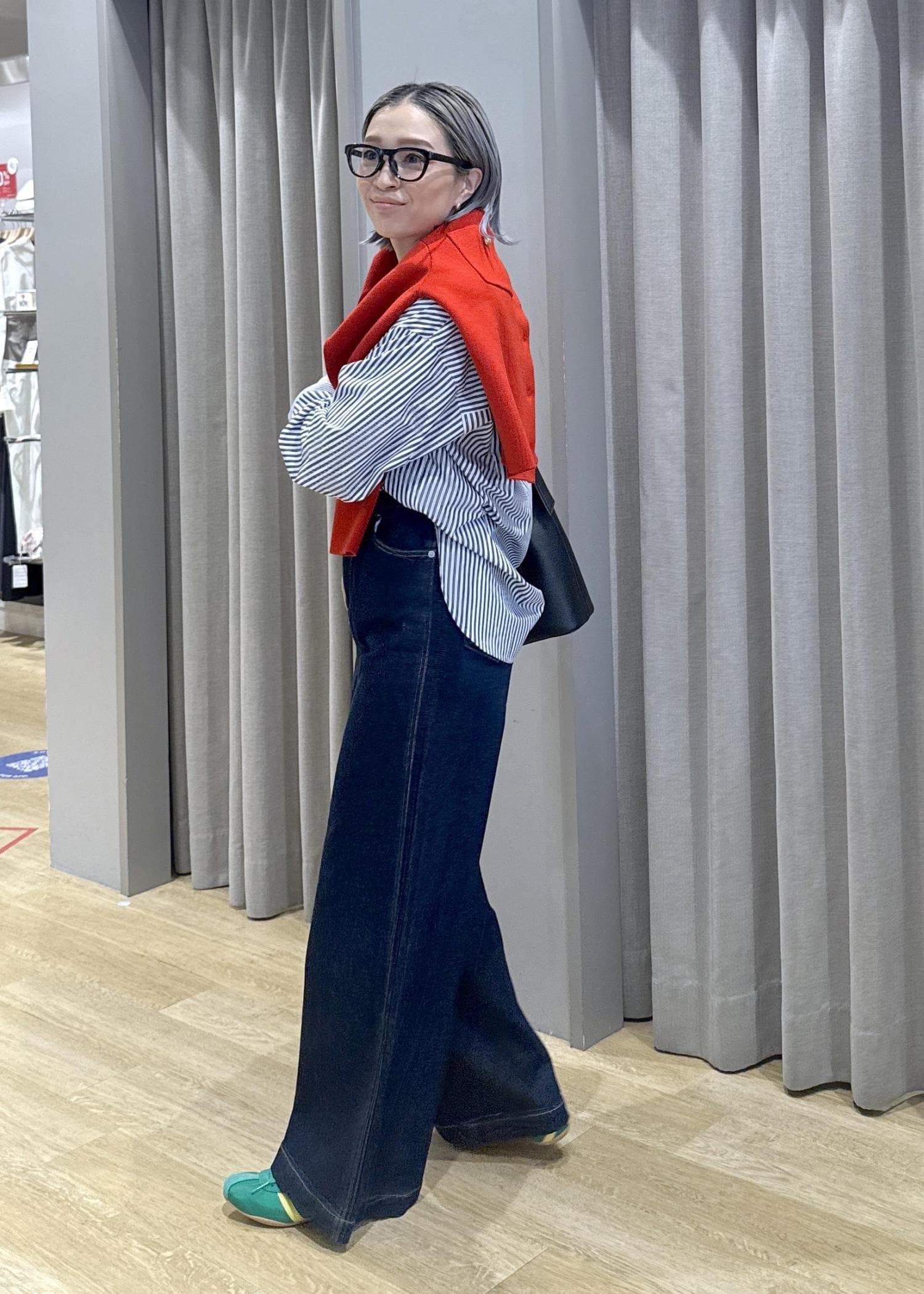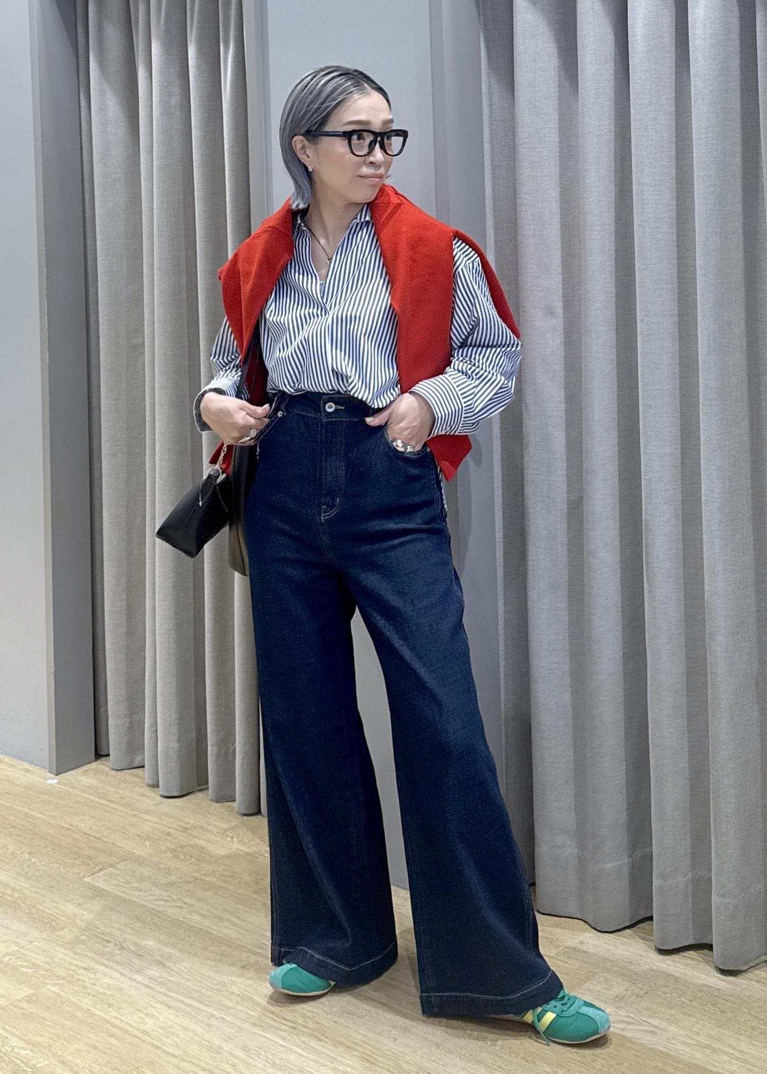 ぽっこりお腹を塞いでくれるバギーパンツ型のデニム。