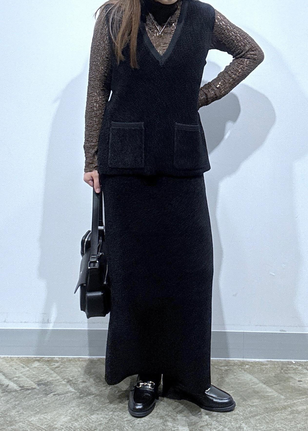 LE CERCLE par ropé【セットアップ対応】モール糸ダブルフェイスIラインスカートブラック / F¥7,590レビューモール糸ベストとセットアップで着れるタイトスカート