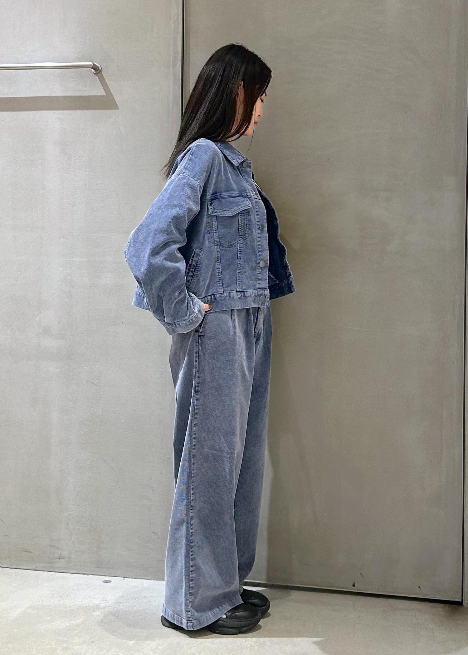 LE CERCLE par ropé製品染めコーデュロイパンツ/セットアップ対応ブルー系 / F¥6,534レビューコーデュロイの素材感で太すぎないワイドパンツで、161cmベルトなしで丁度いい丈感でした!
