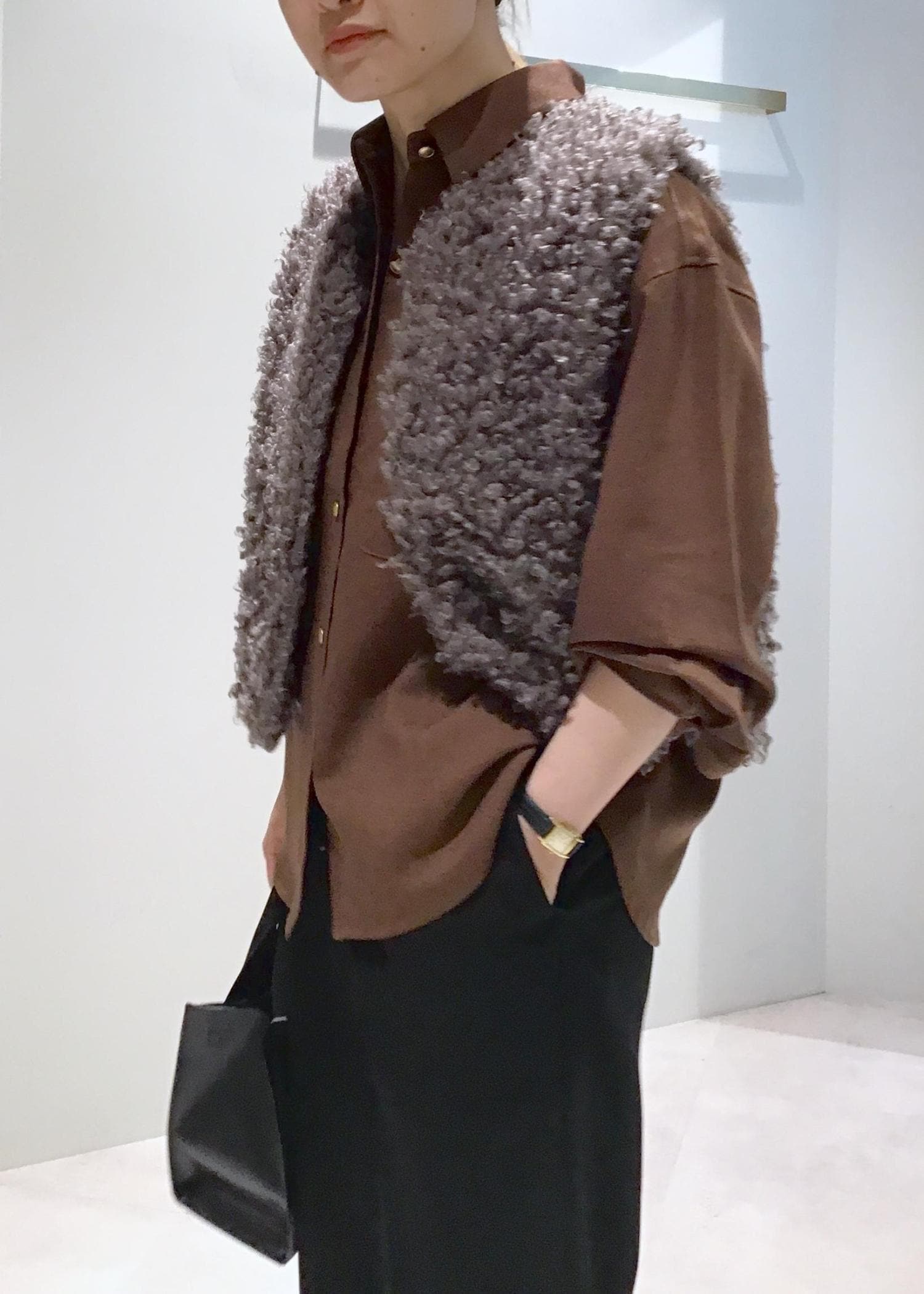 LE CERCLE par ropéプードルボアベストキャメル / F¥10,890レビューボリュームの出過ぎないボアベストで、すっきりと着用できます。