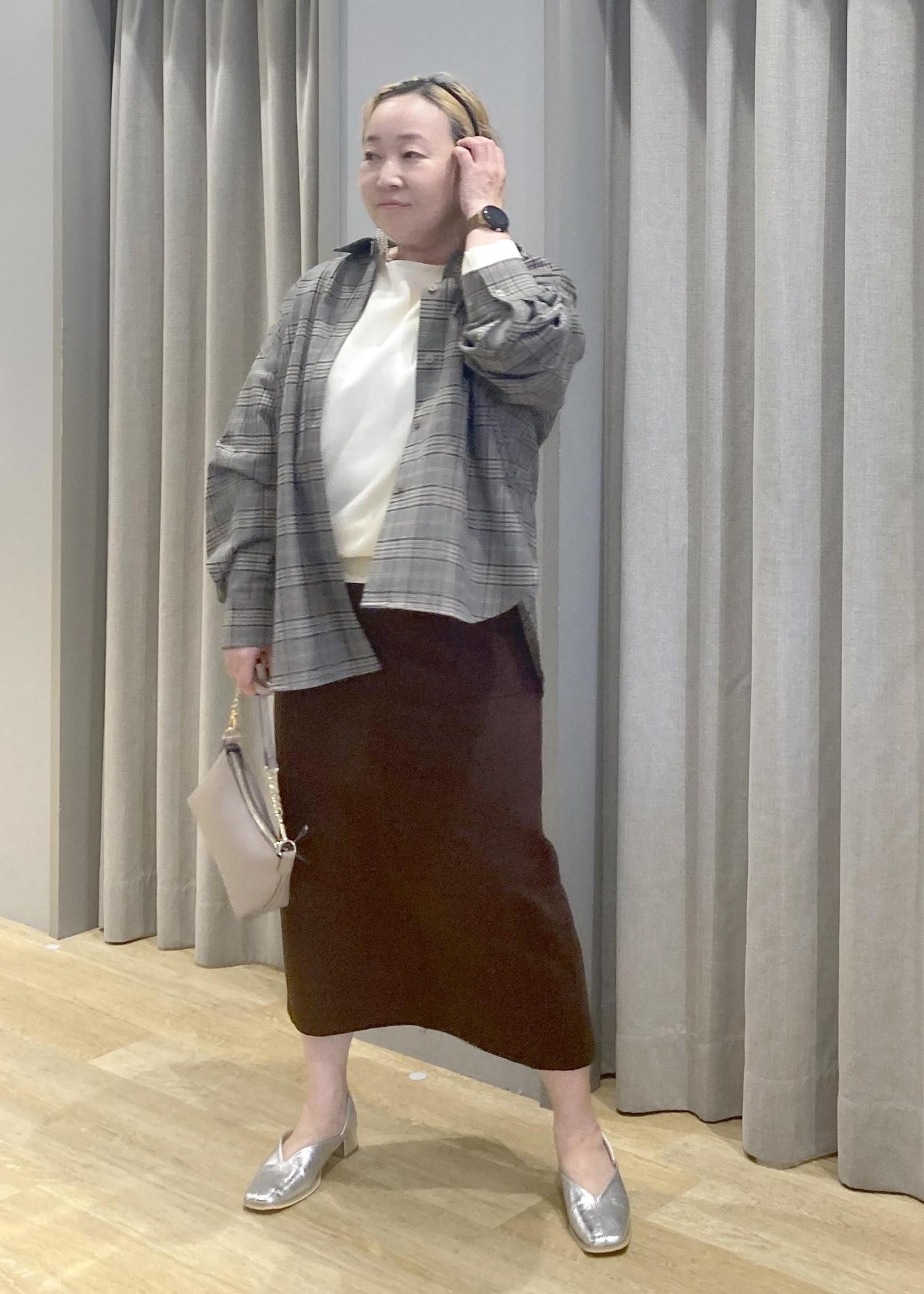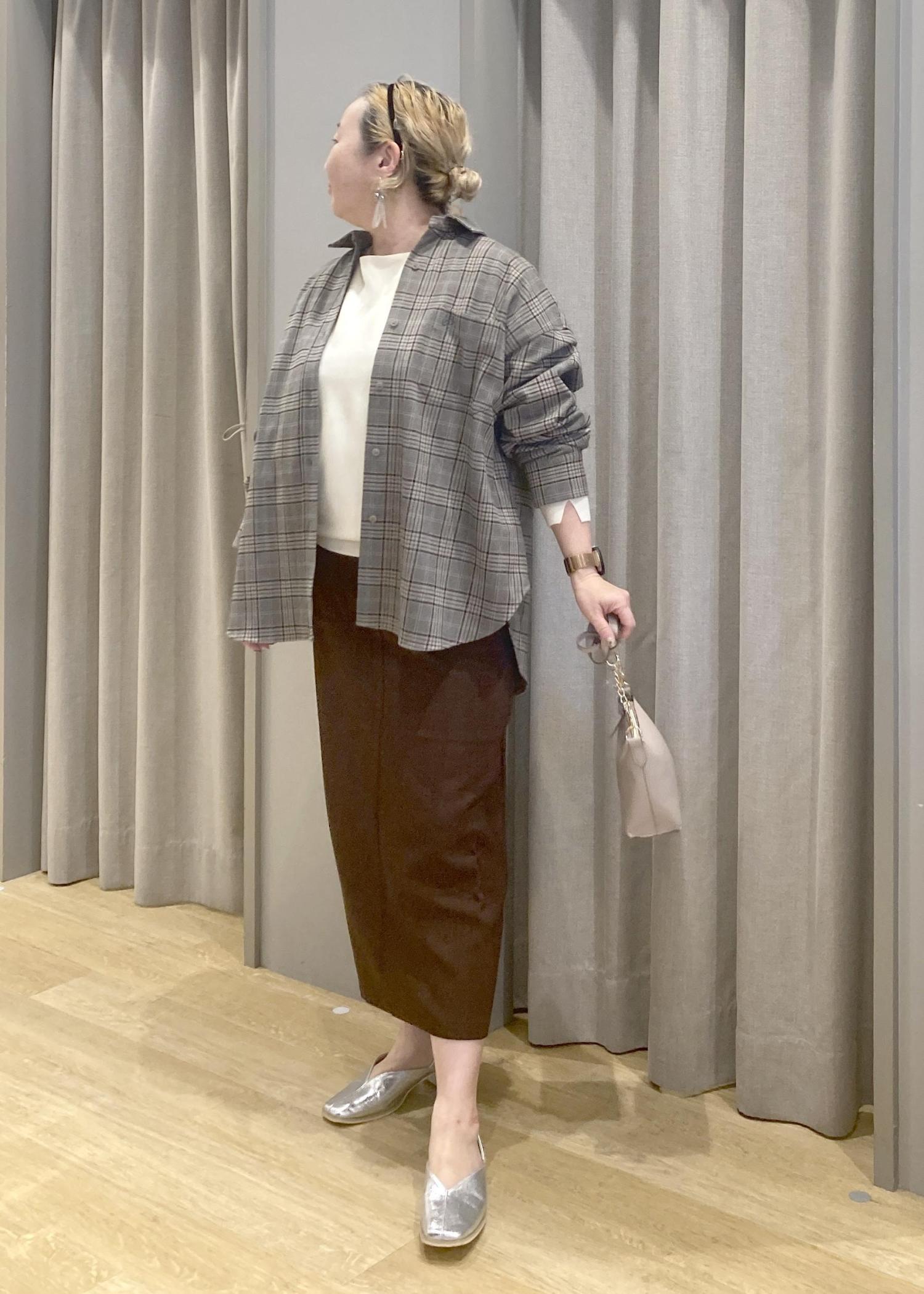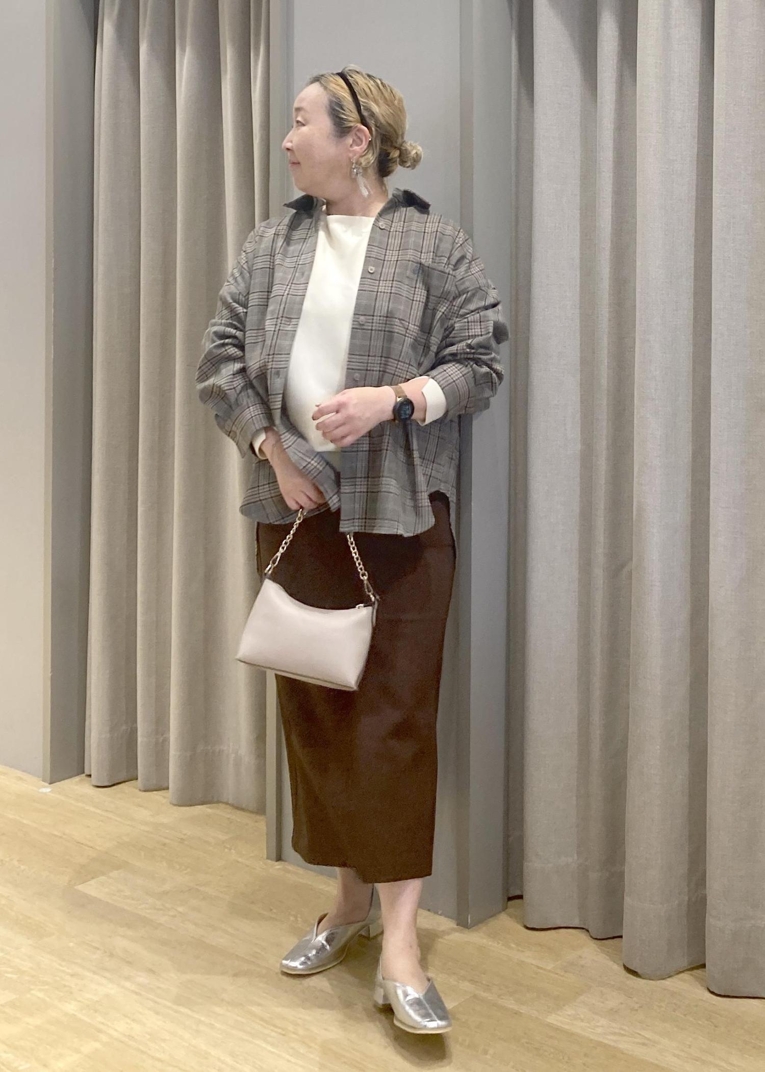 チェックシャツを取り入れたいけど、カジュアルが、得意じゃない方におすすめのスタイリングです。
