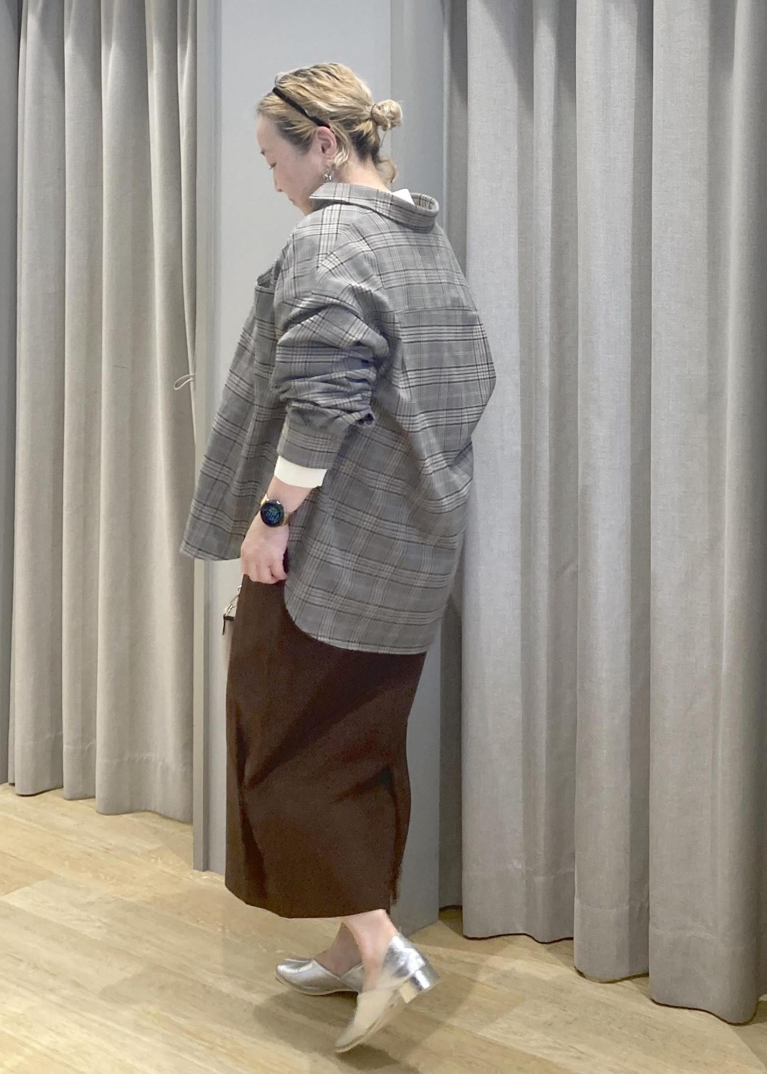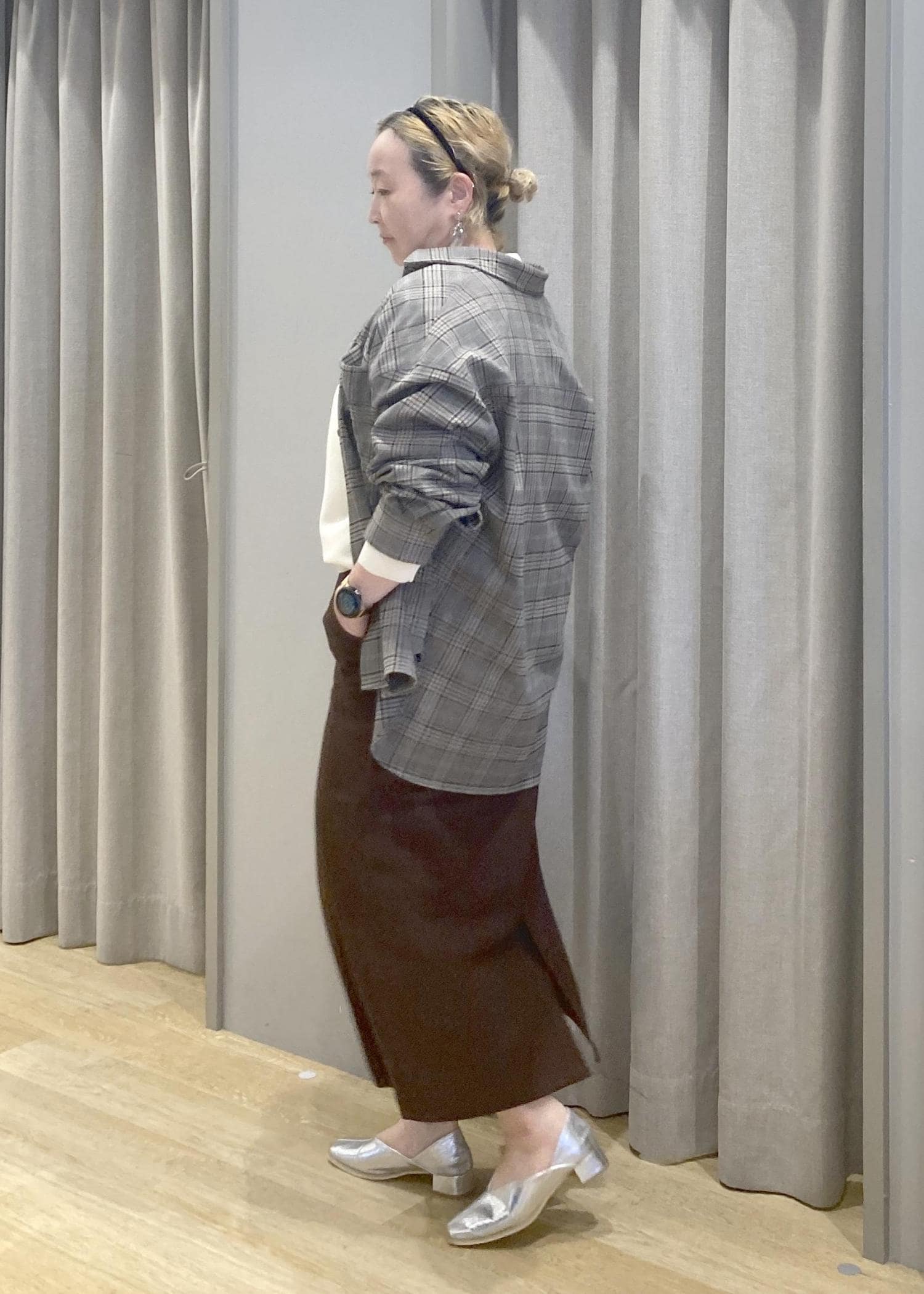 シャツを脱げば綺麗めな印象のスタイリングにルーズなチェックシャツを羽織として合わせて見ました。