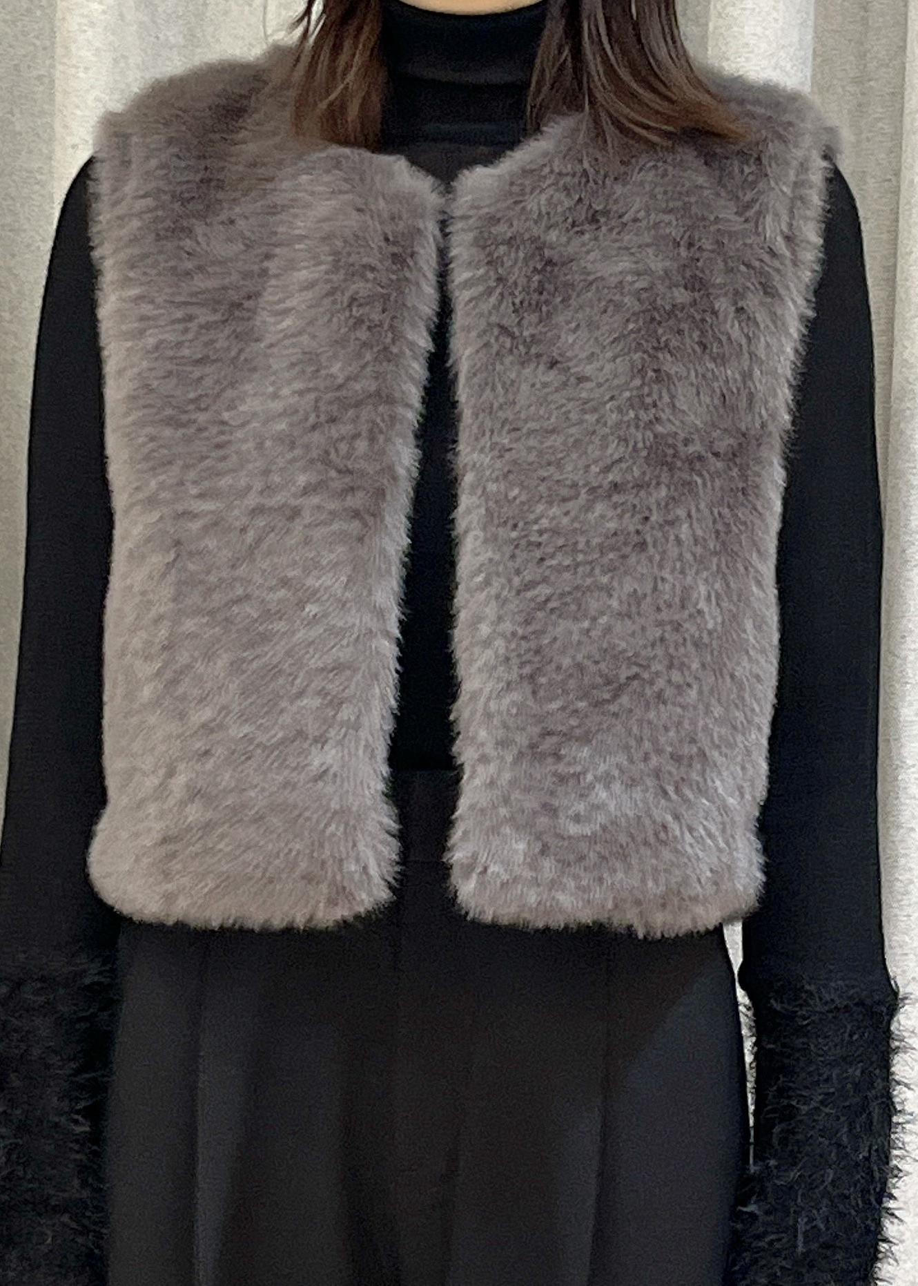 VISアソートファーショートベストグレー系 / F¥8,899レビュー軽い着心地で肩が凝らず、ストレスフリーに着られます。ボリュームのある見た目なのに、実際はとても軽やかでデイリー使いにも最適です。