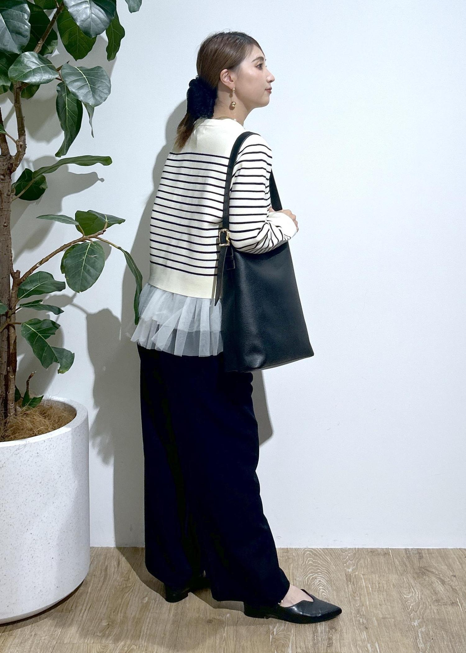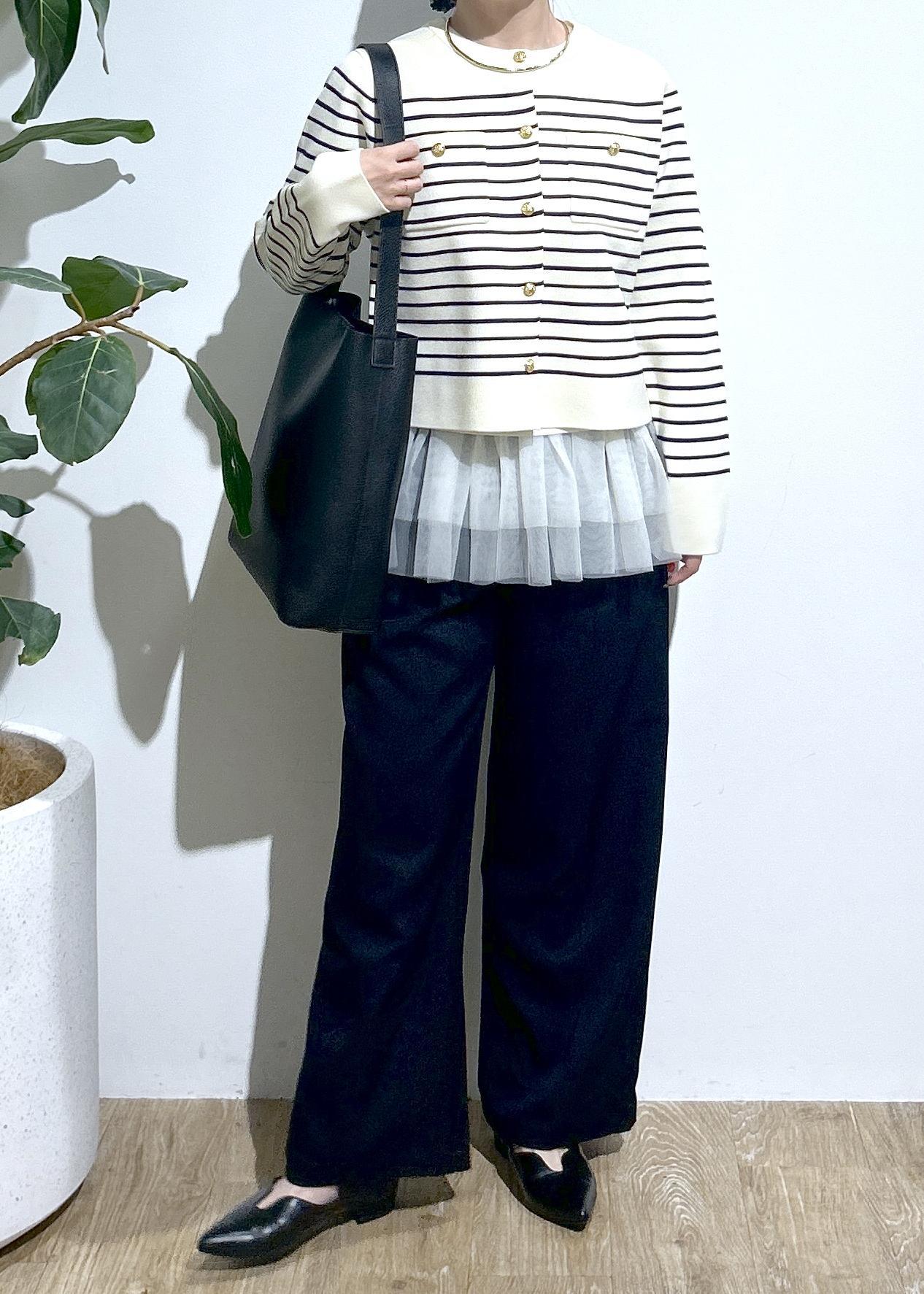 着丈が少し長めに作られているのでカーディガンやニット、スウェットのインナーとして下から見せるとお洒落です。チュールで気になる腰回りが素敵にカバーできますよ♡ -